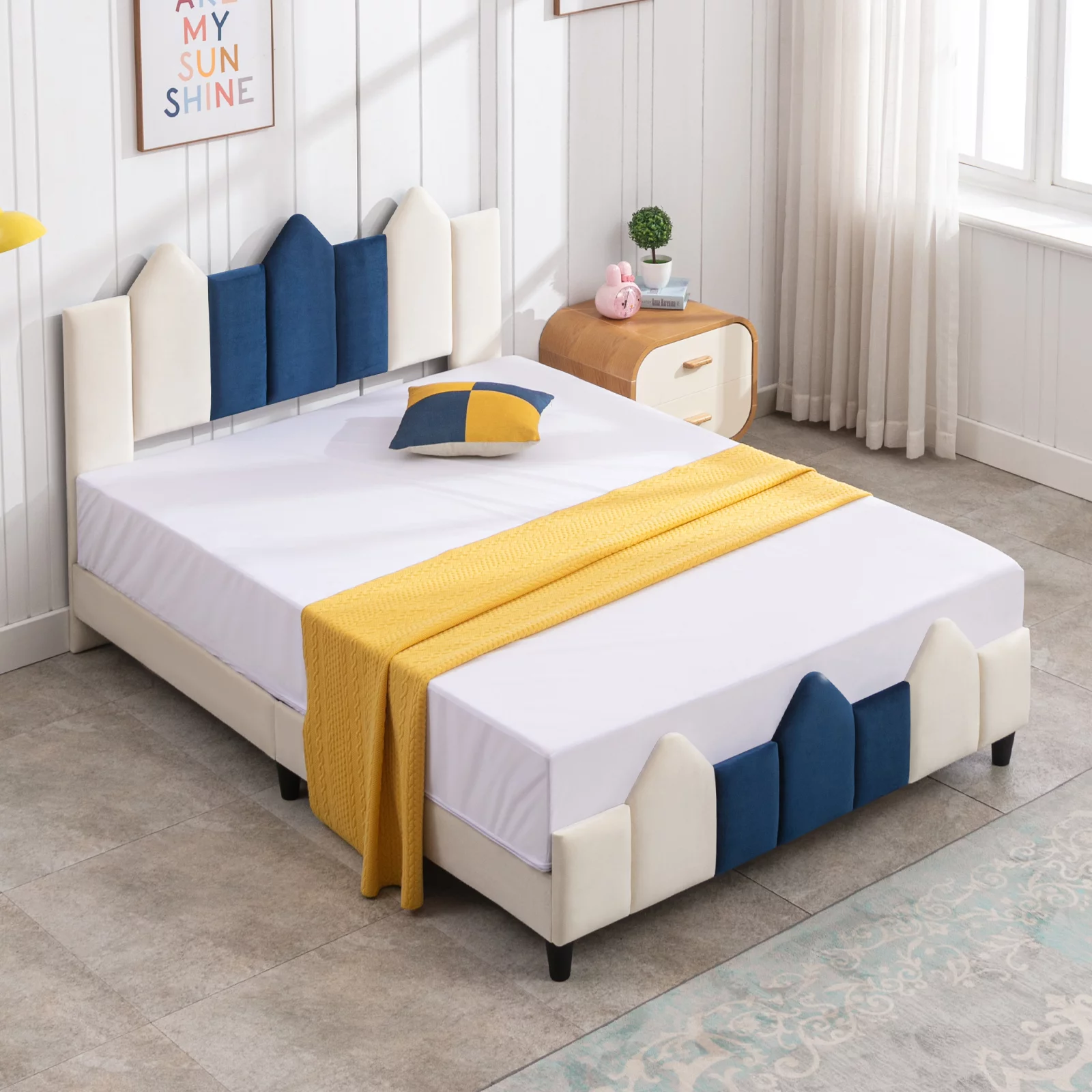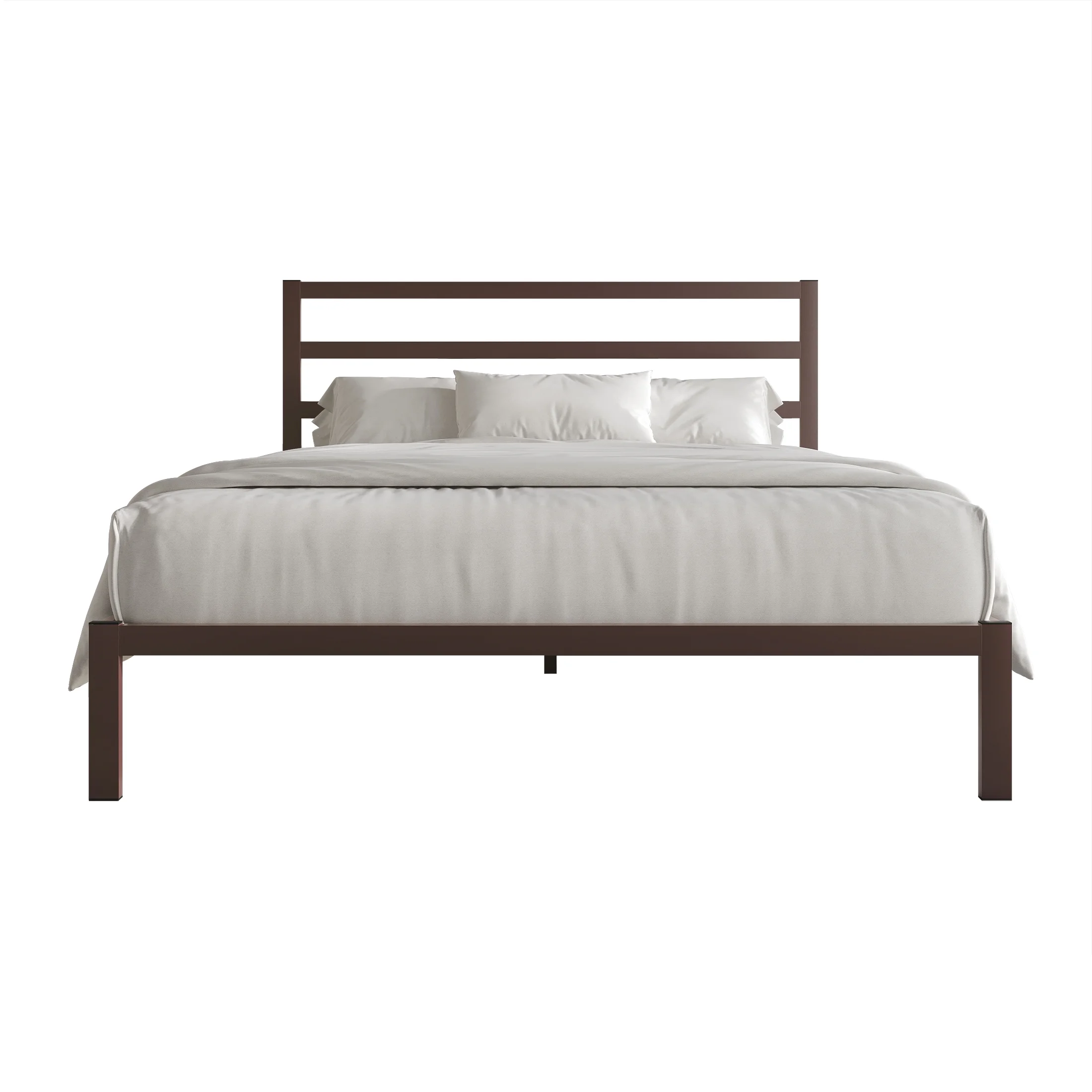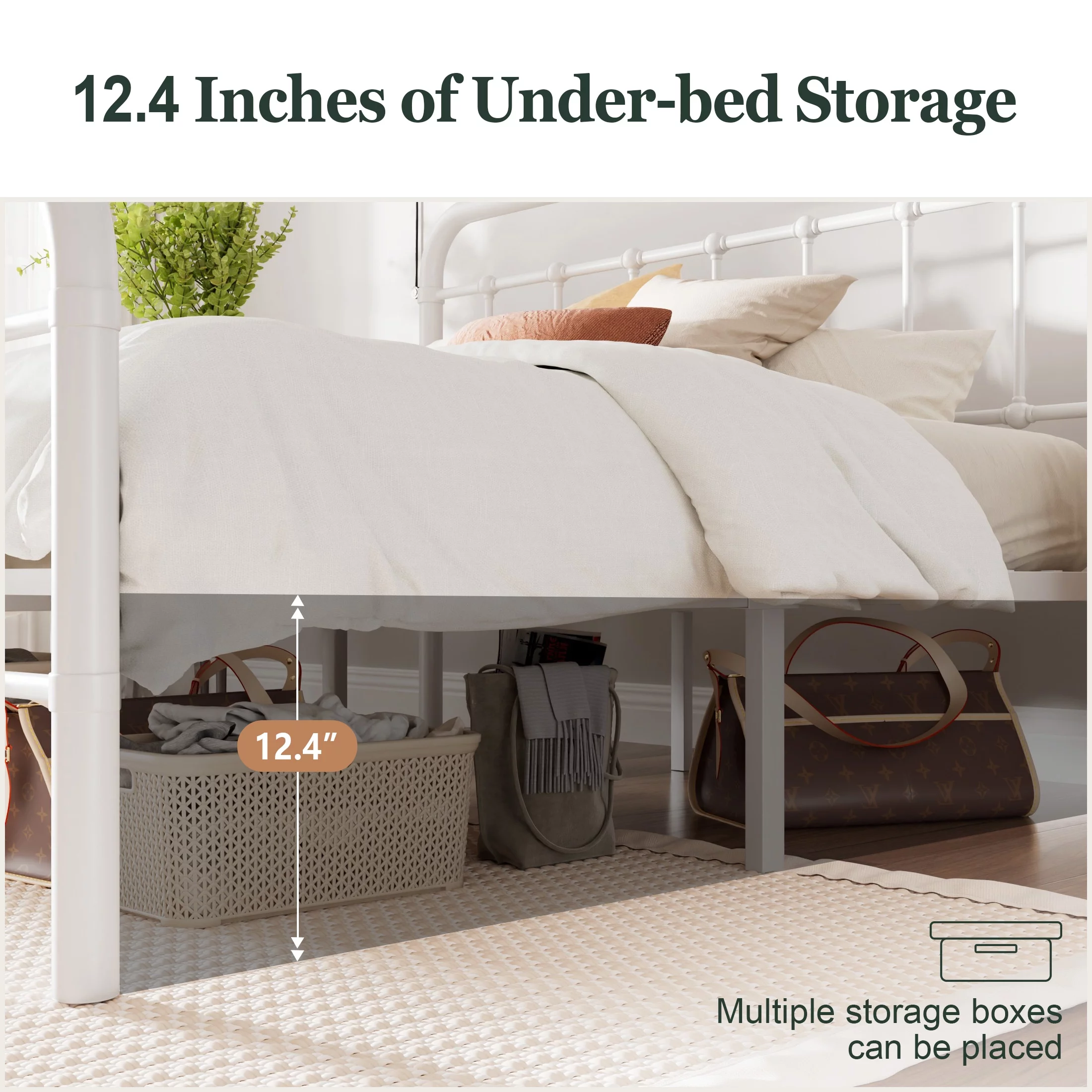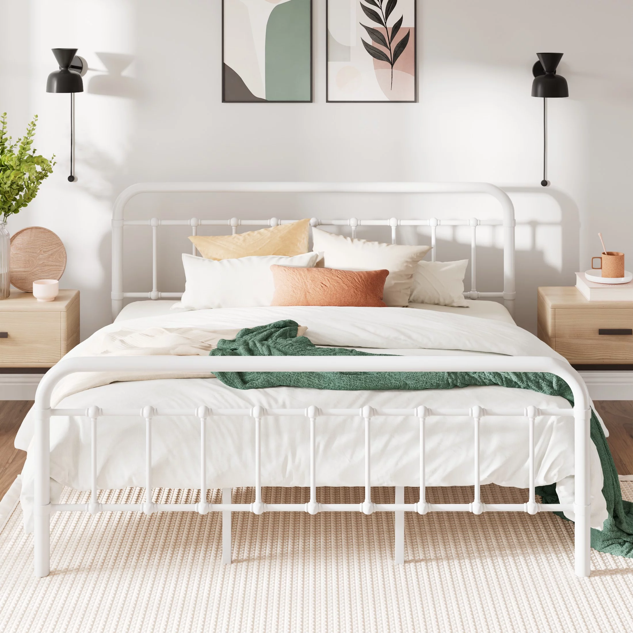 Amolife King Size Metal Platform Bed Frame with Vintage Headboard&Footboard, White