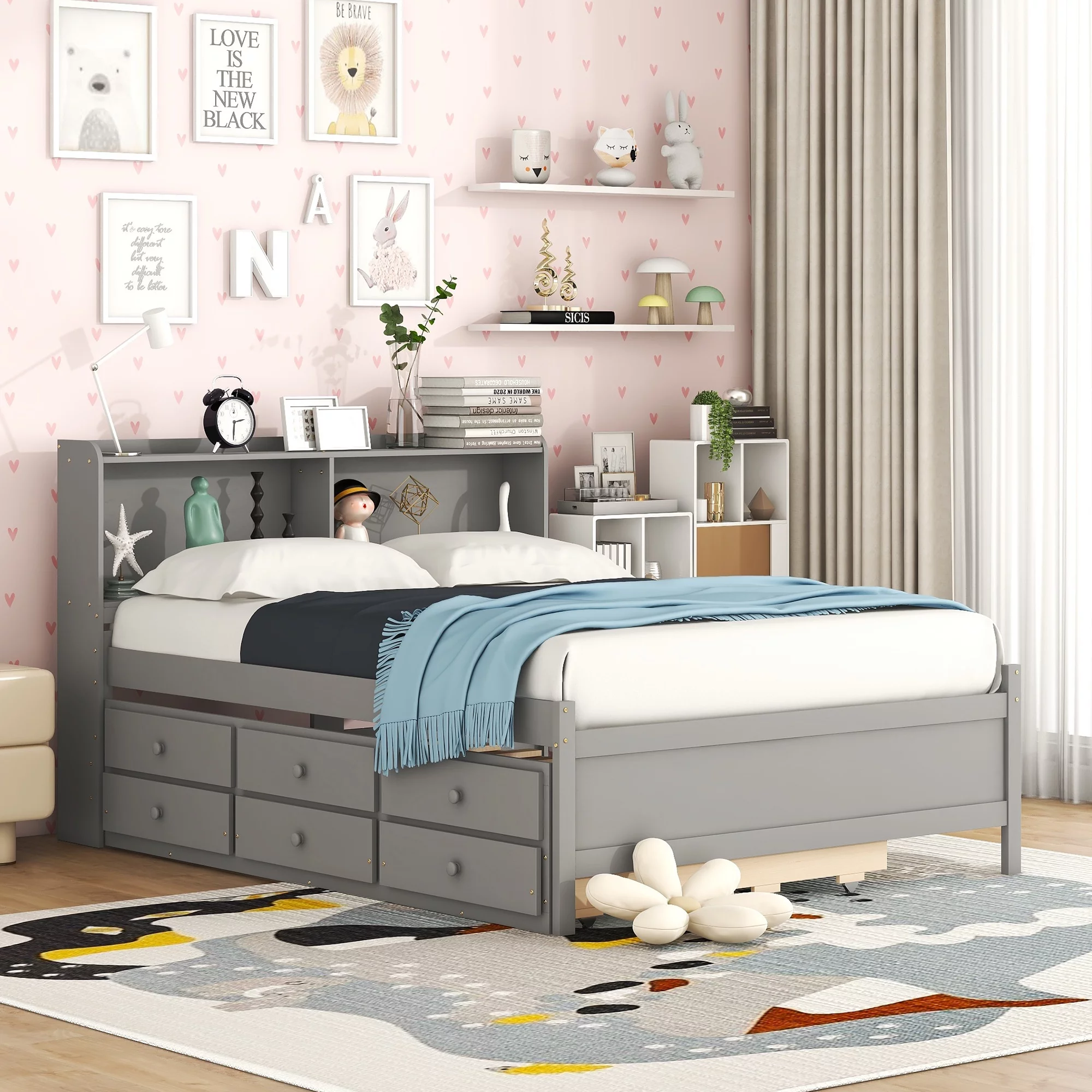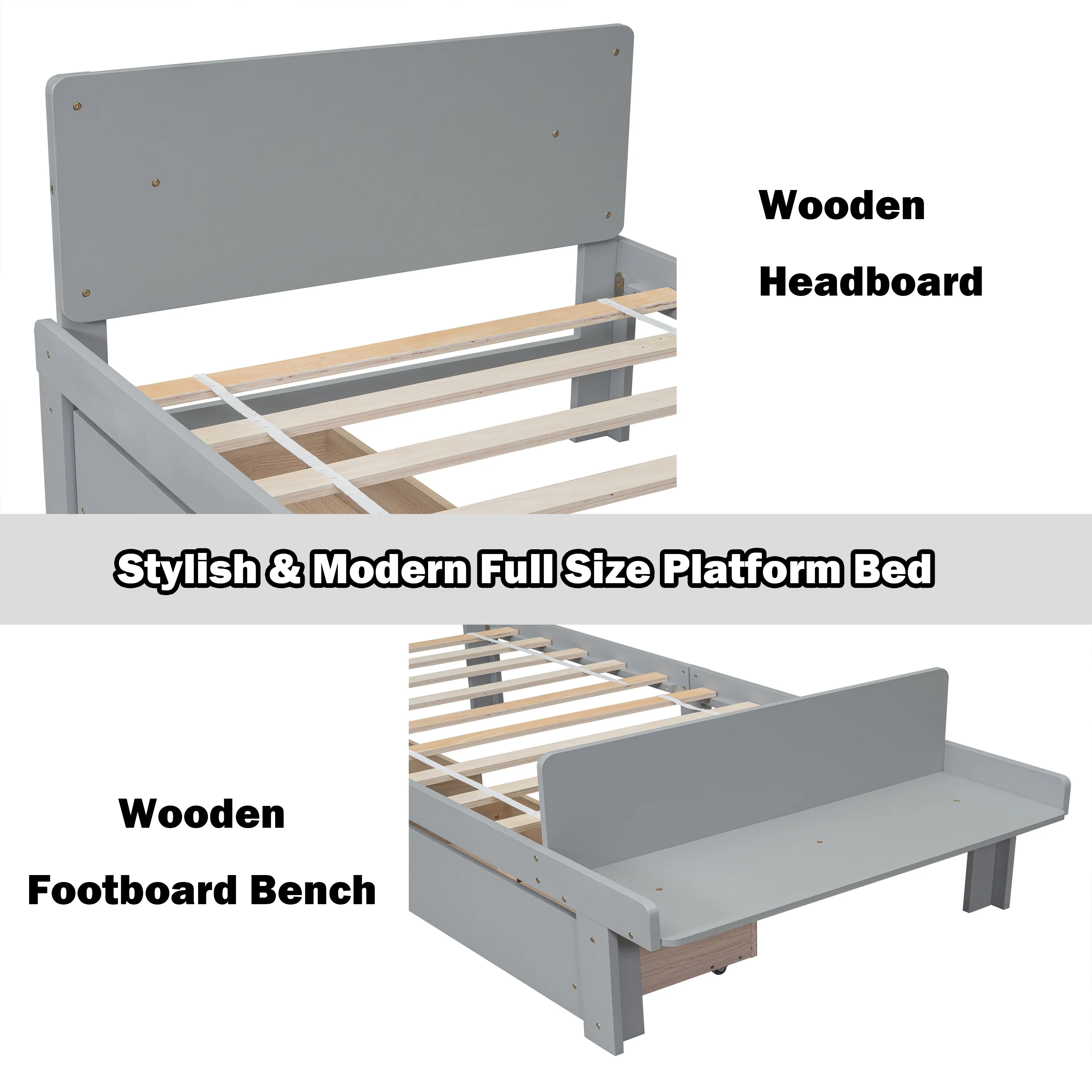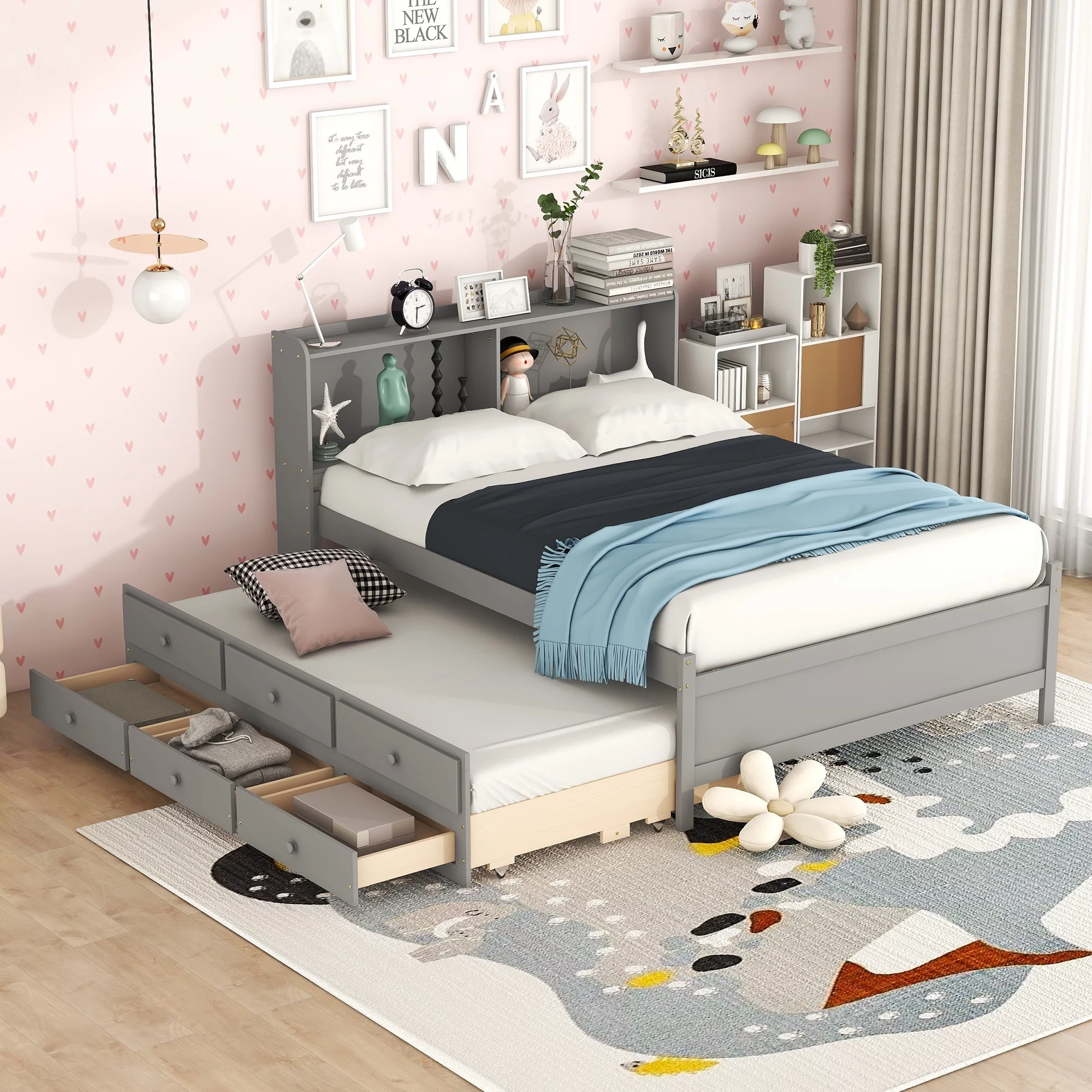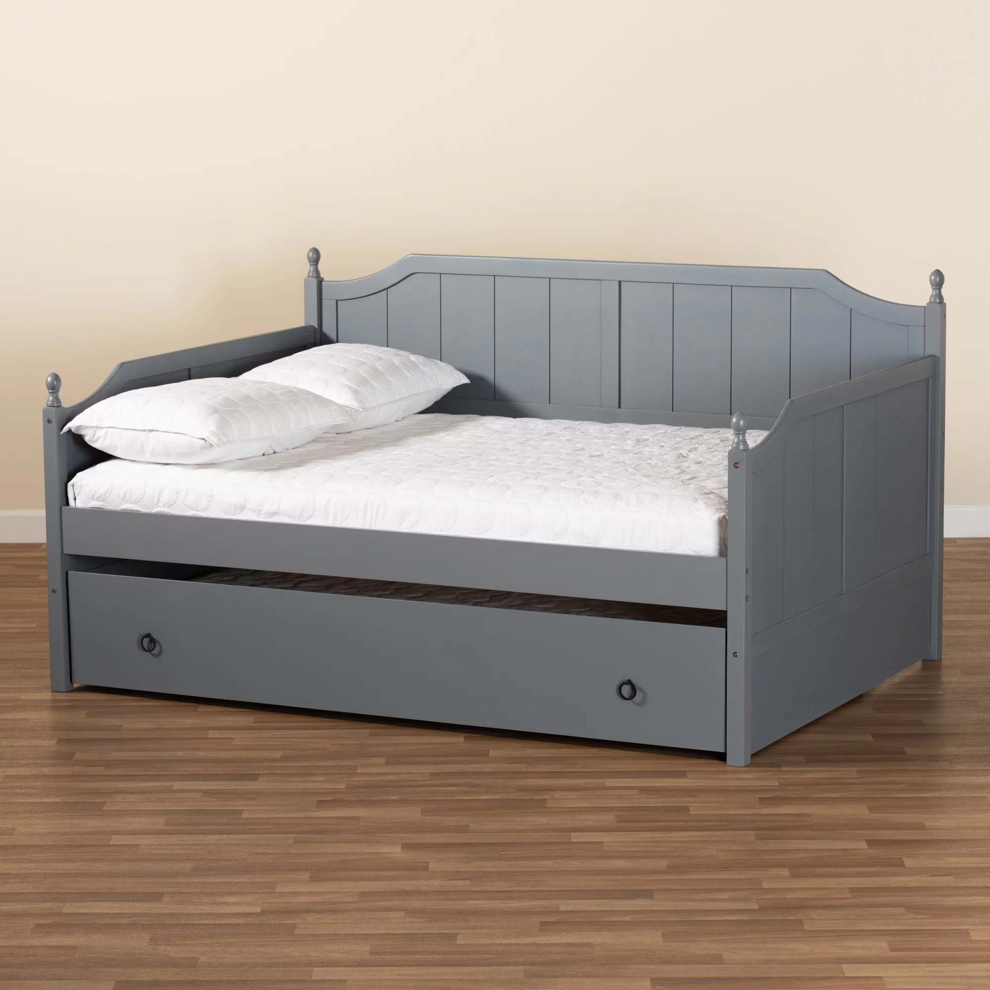 Baxton Studio Millie Modern Engineered Wood with Trundle Daybed, Full, Grey