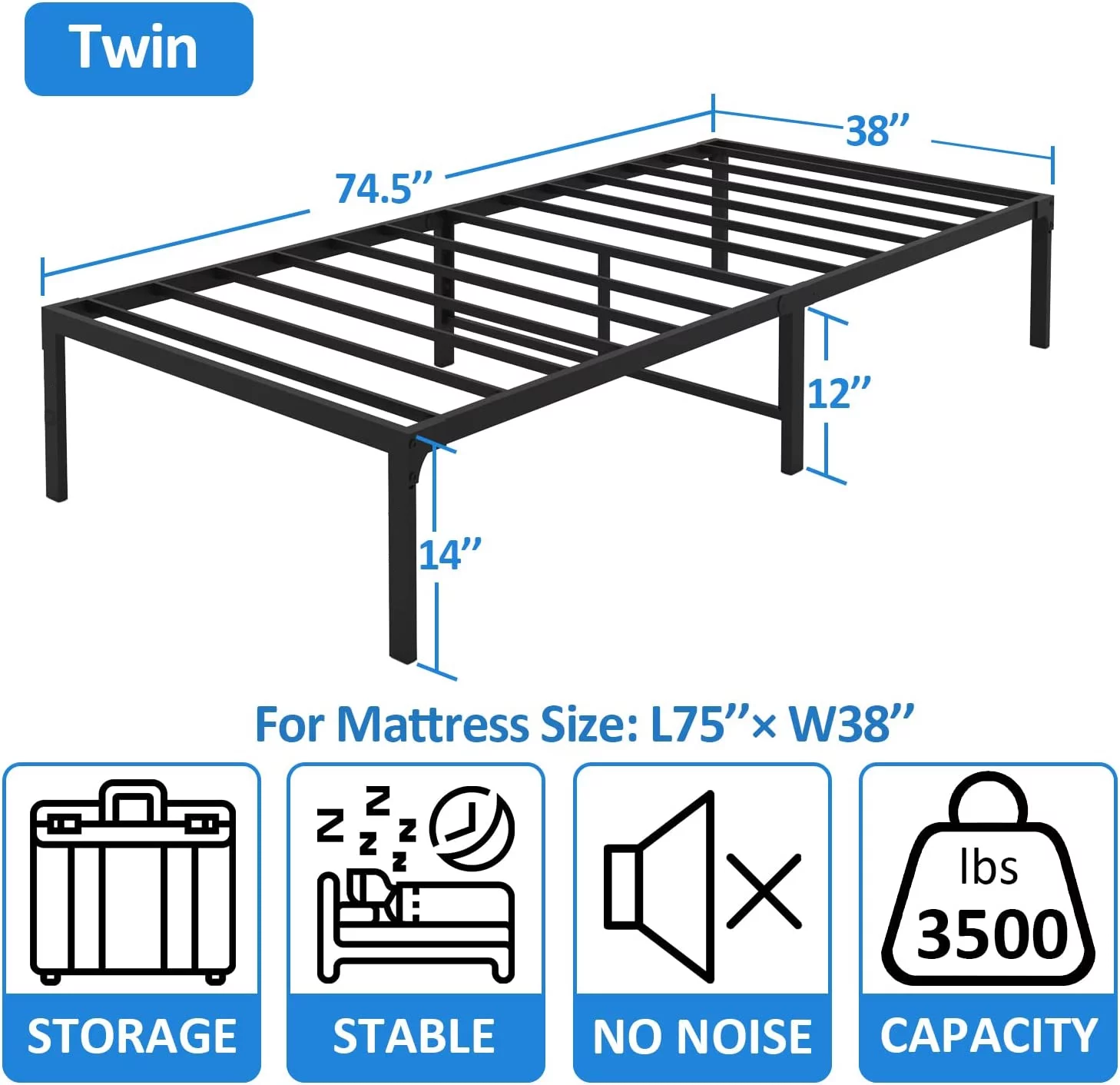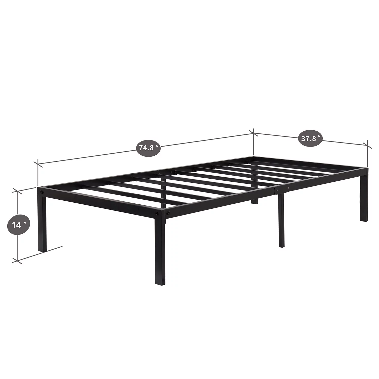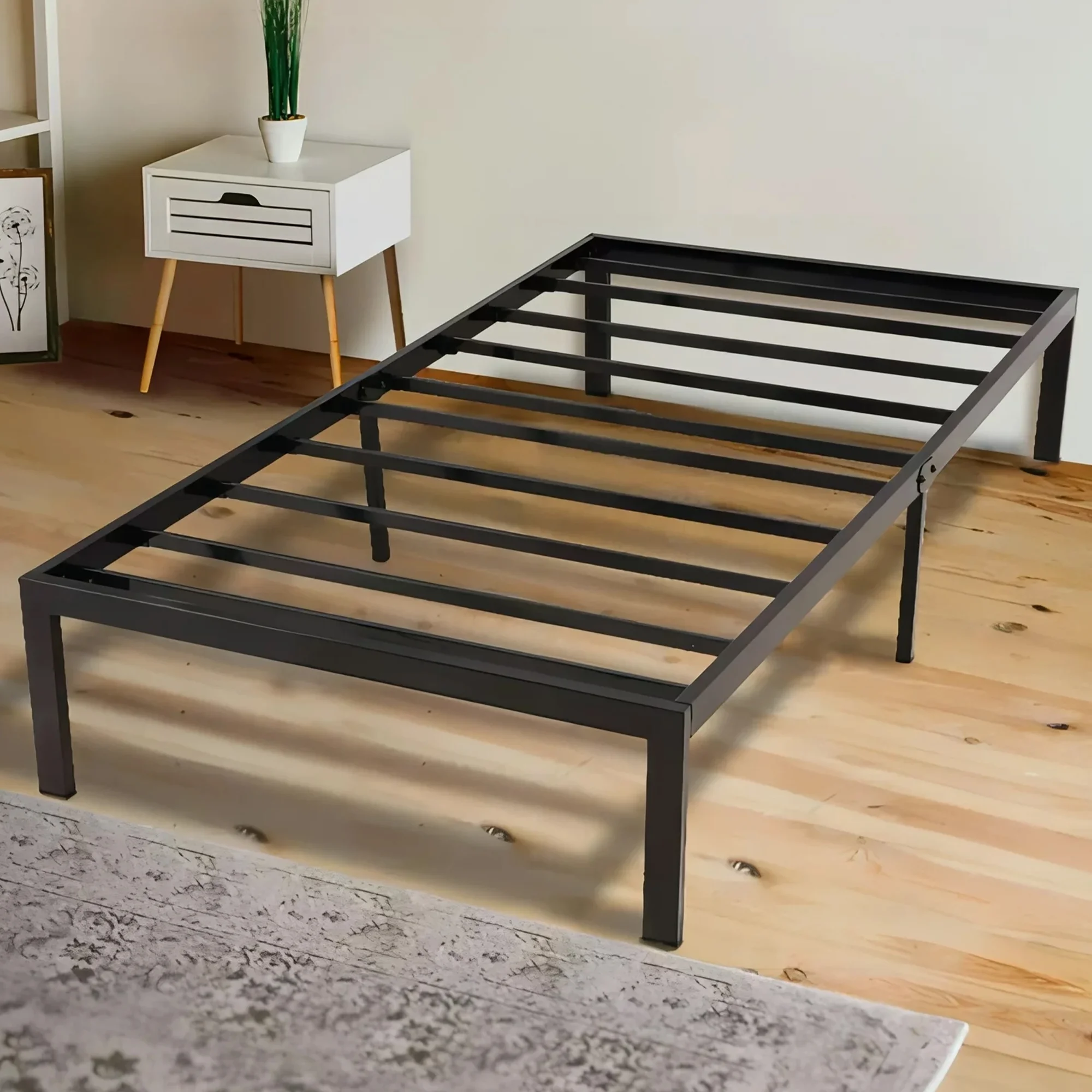 YouYeap 14 inch Metal Bed Frame with Heavy Duty Steel Slats, Twin Size