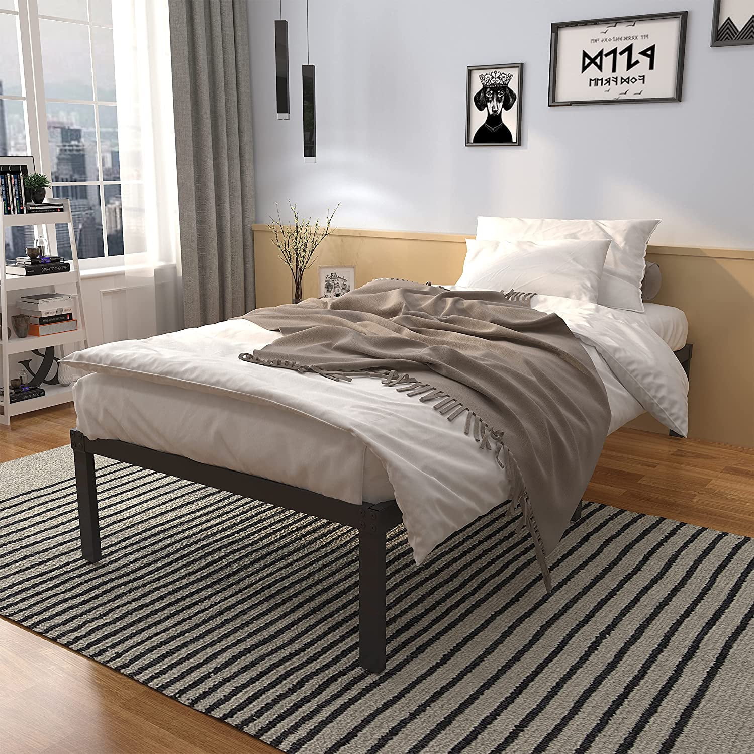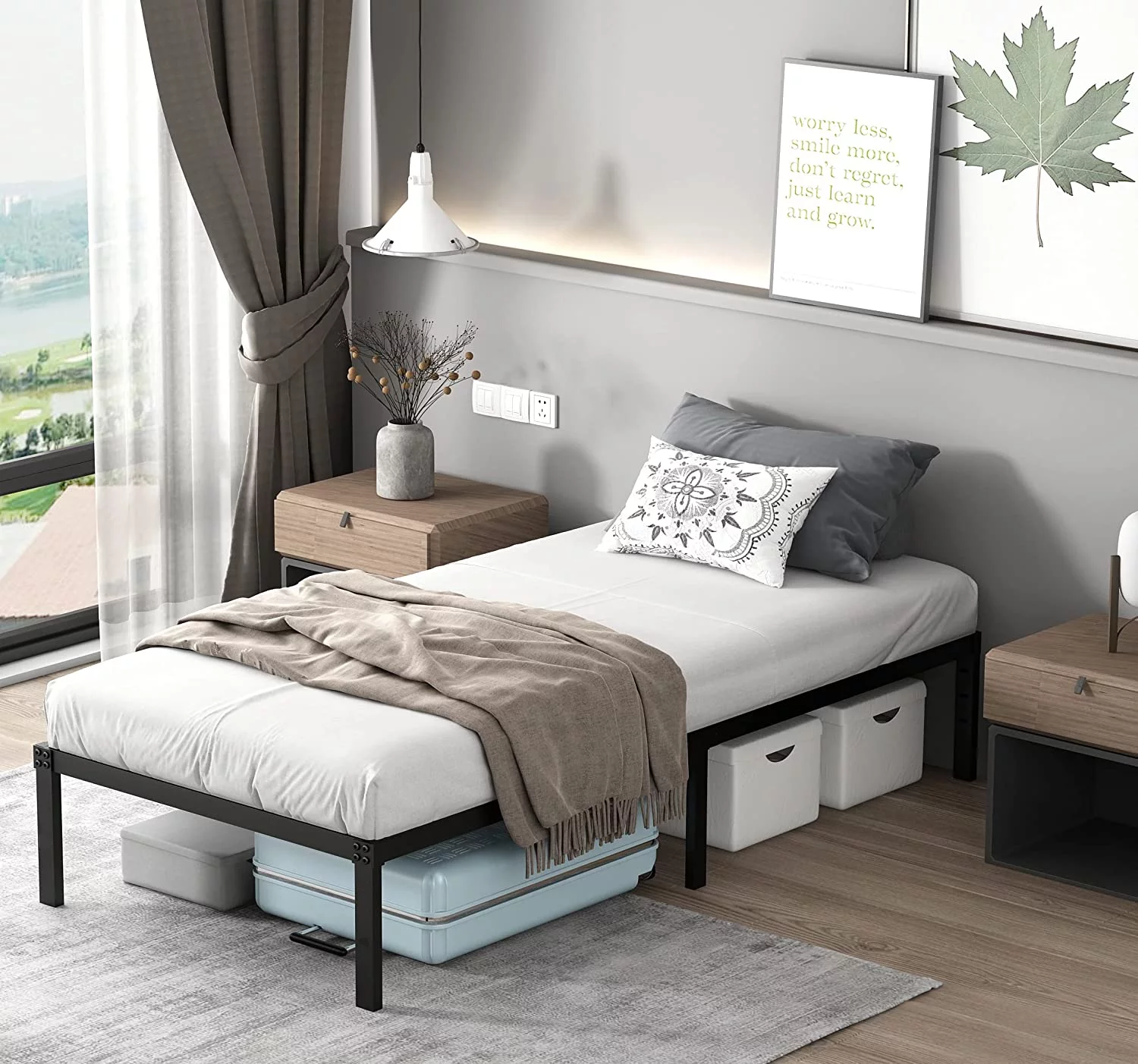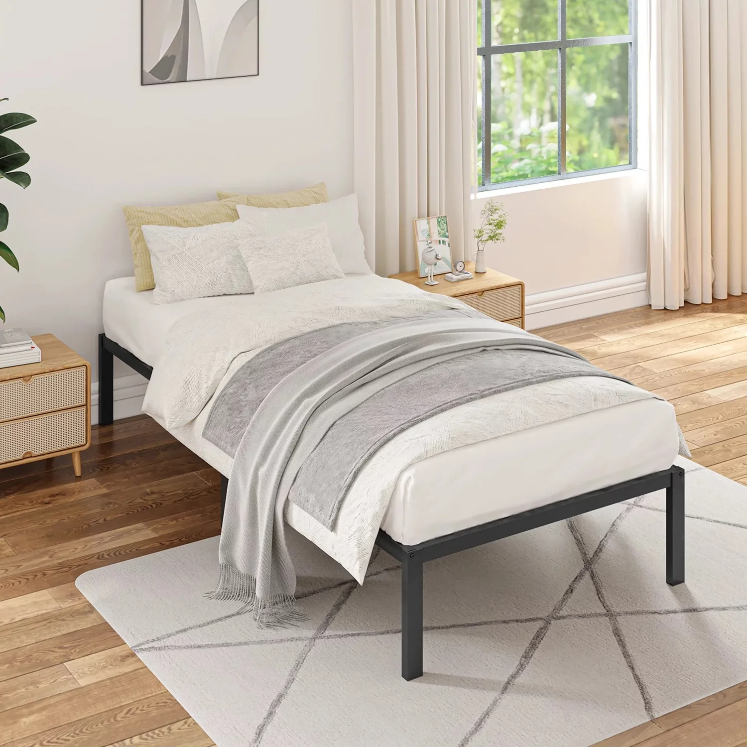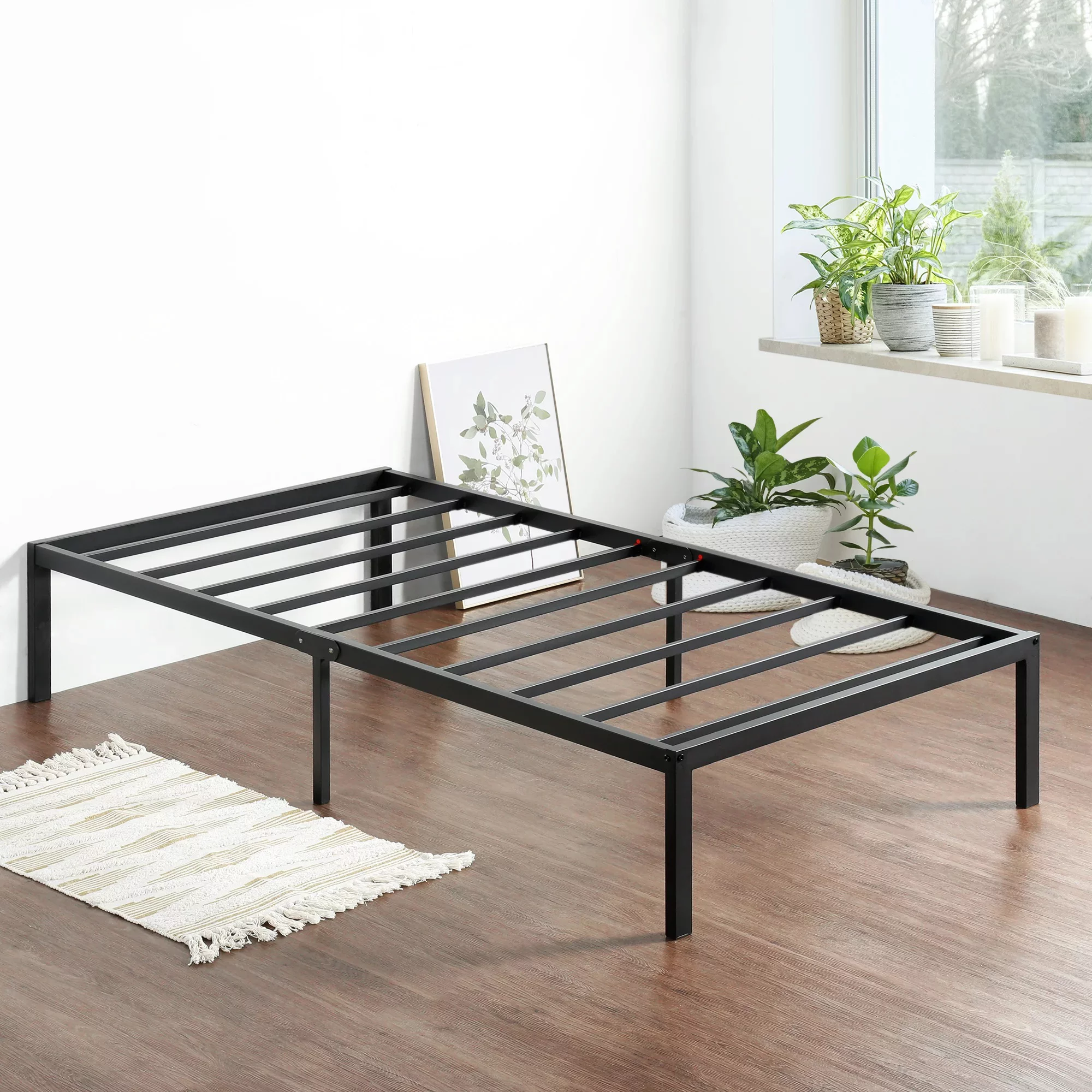 YouYeap 14 inch Metal Bed Frame with Heavy Duty Steel Slats, Twin Size