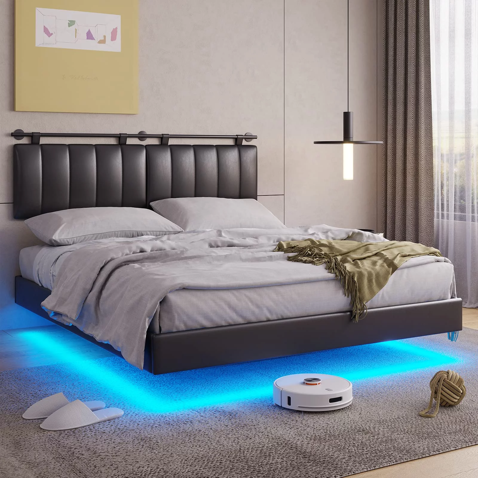 Zinus Christina 43" Upholstered Platform Bed with Headboard, King, Gray