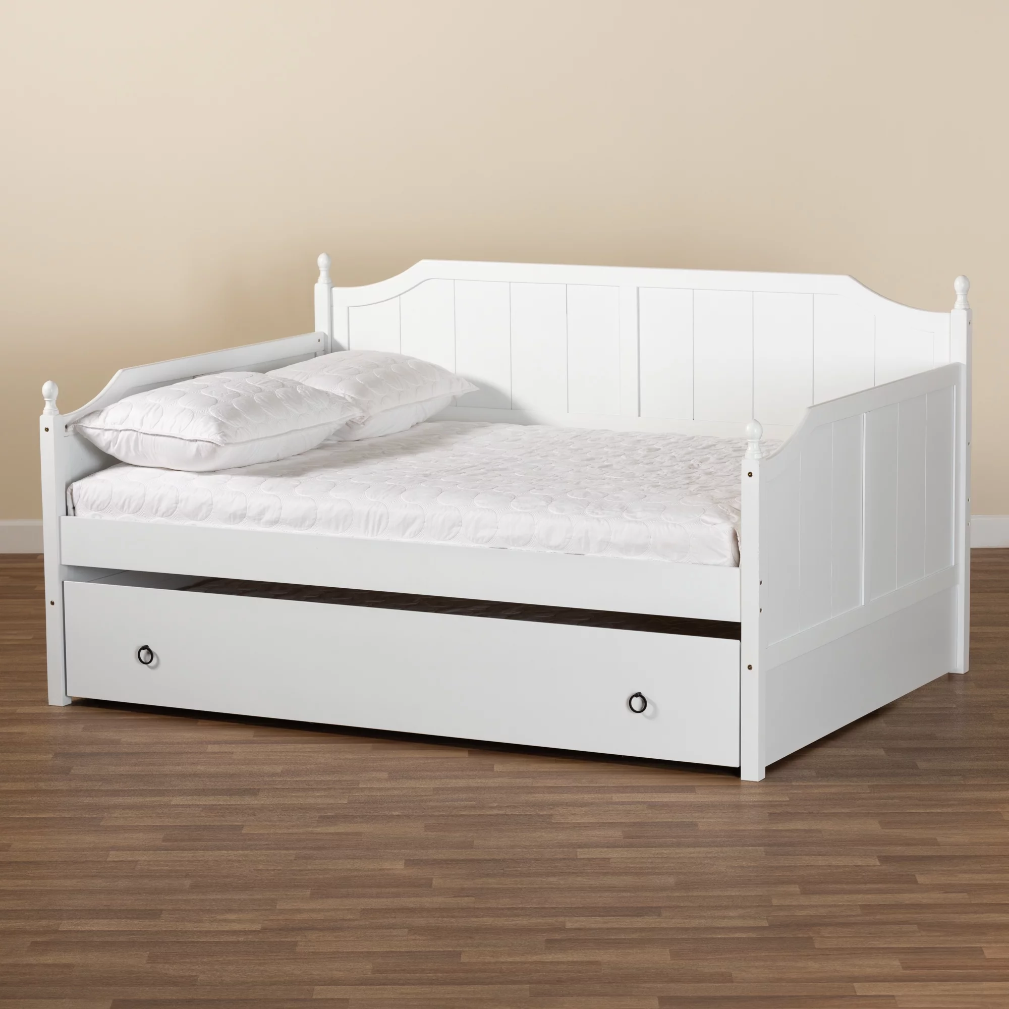 Baxton Studio Millie Modern Engineered Wood with Trundle Daybed, Full, White
