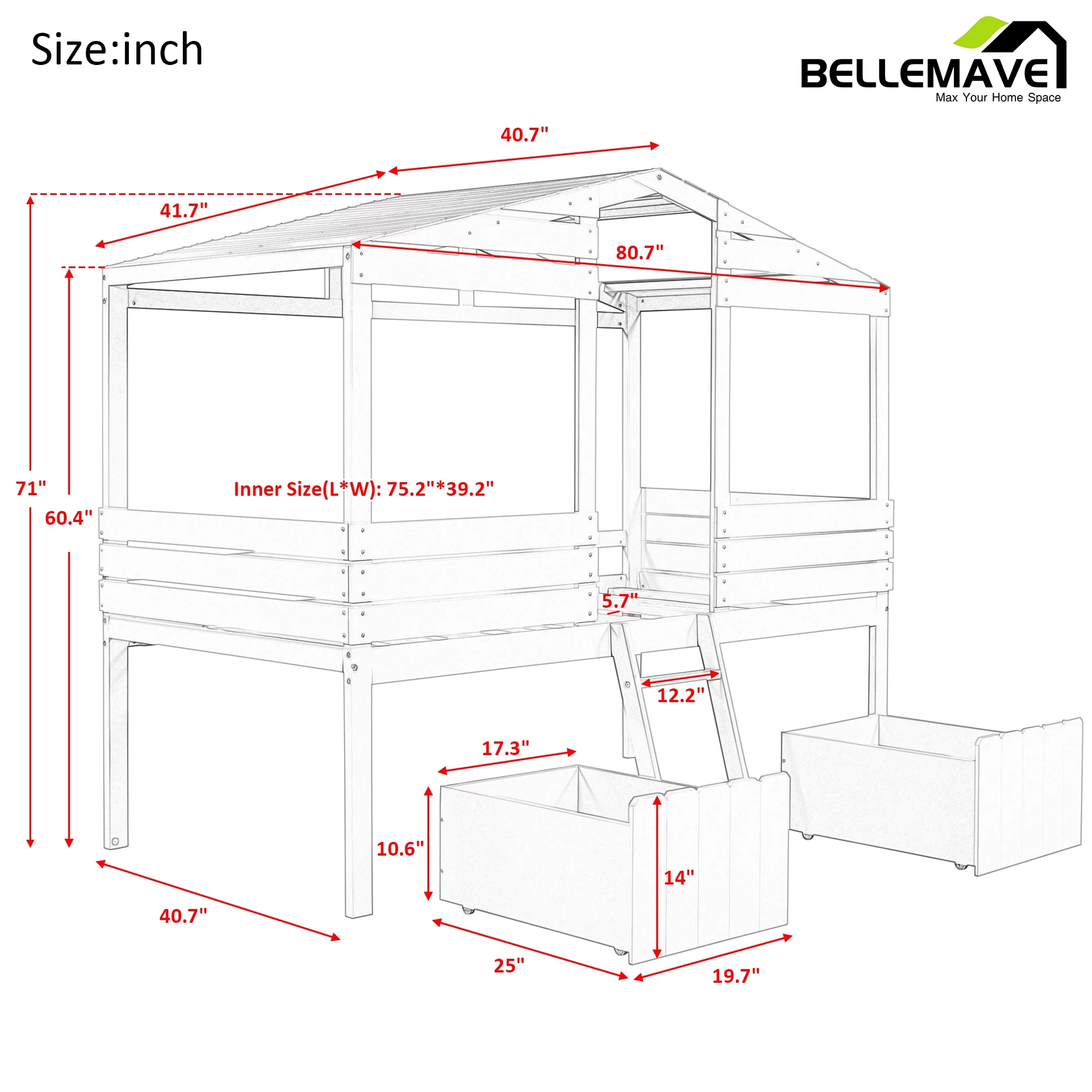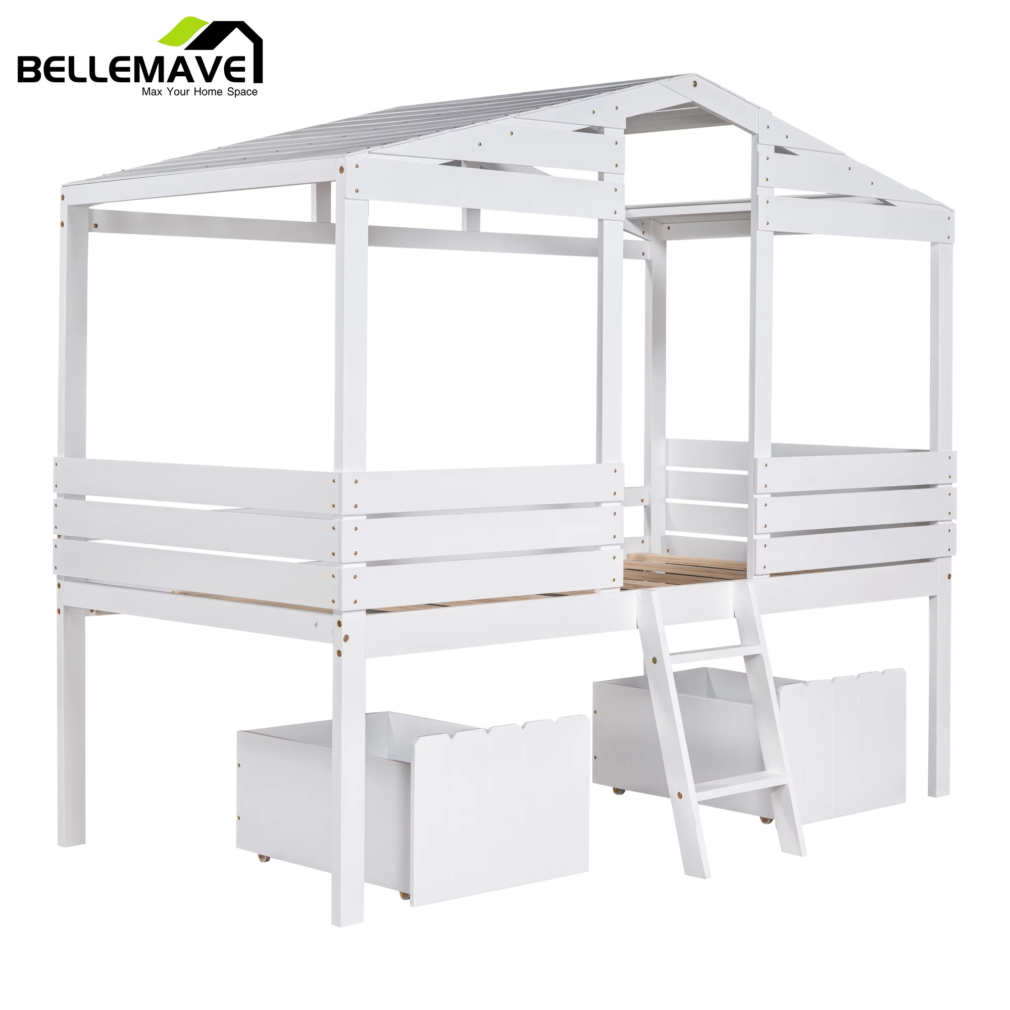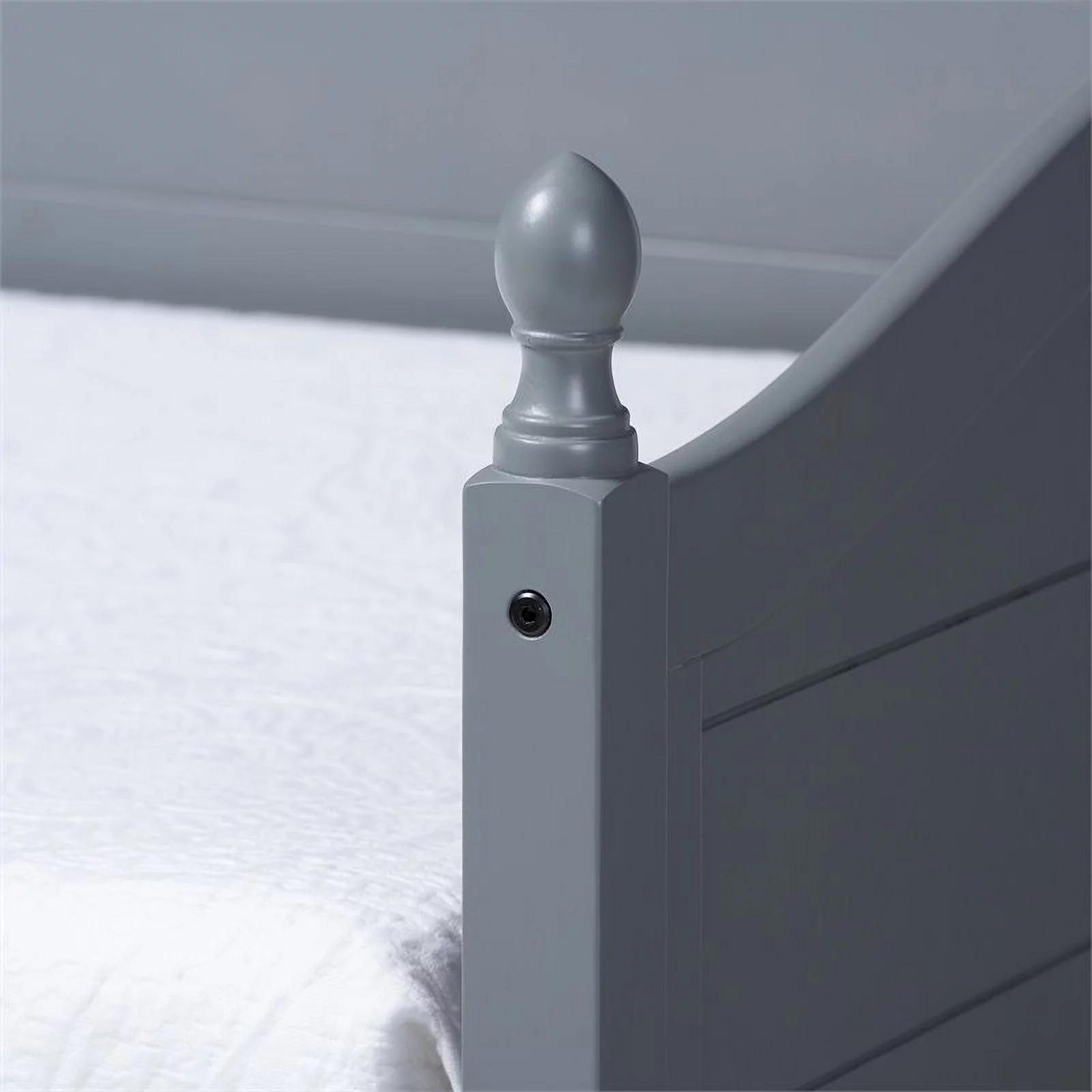 Pemberly Row Twin Solid Wood Low Loft Bed with Blue Tent in Antique Gray