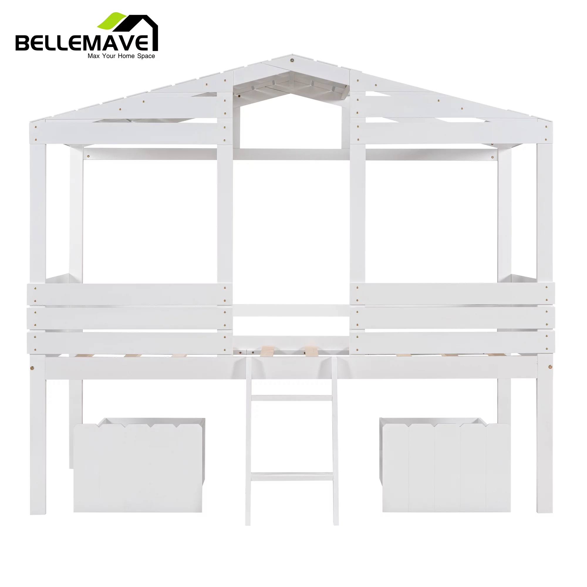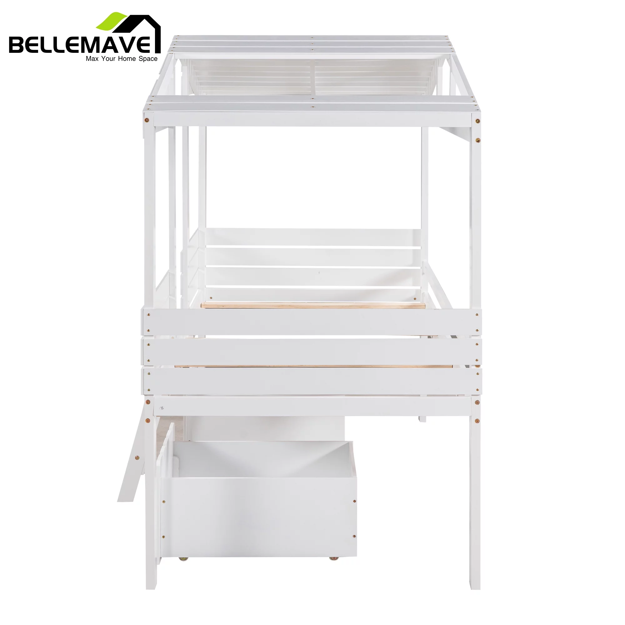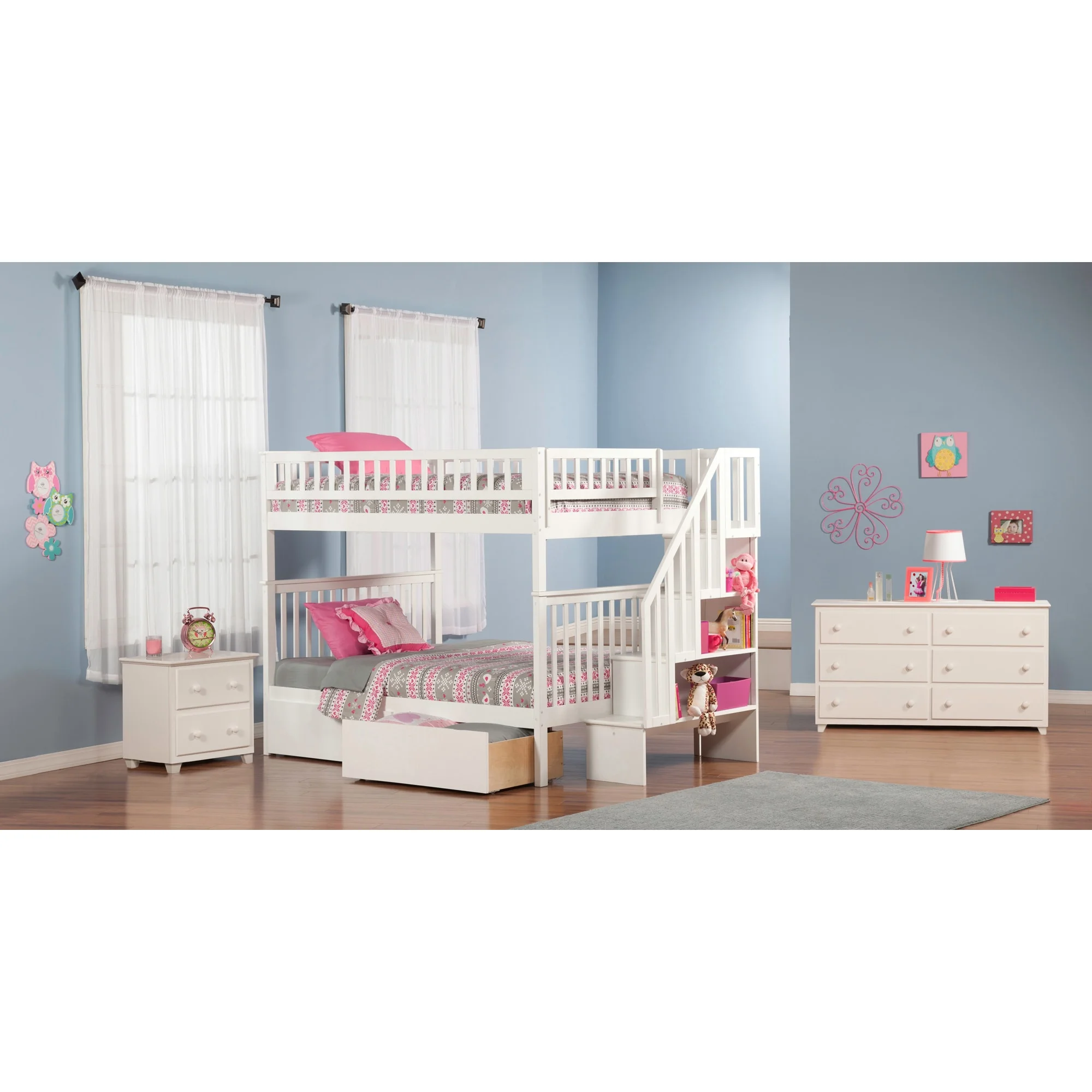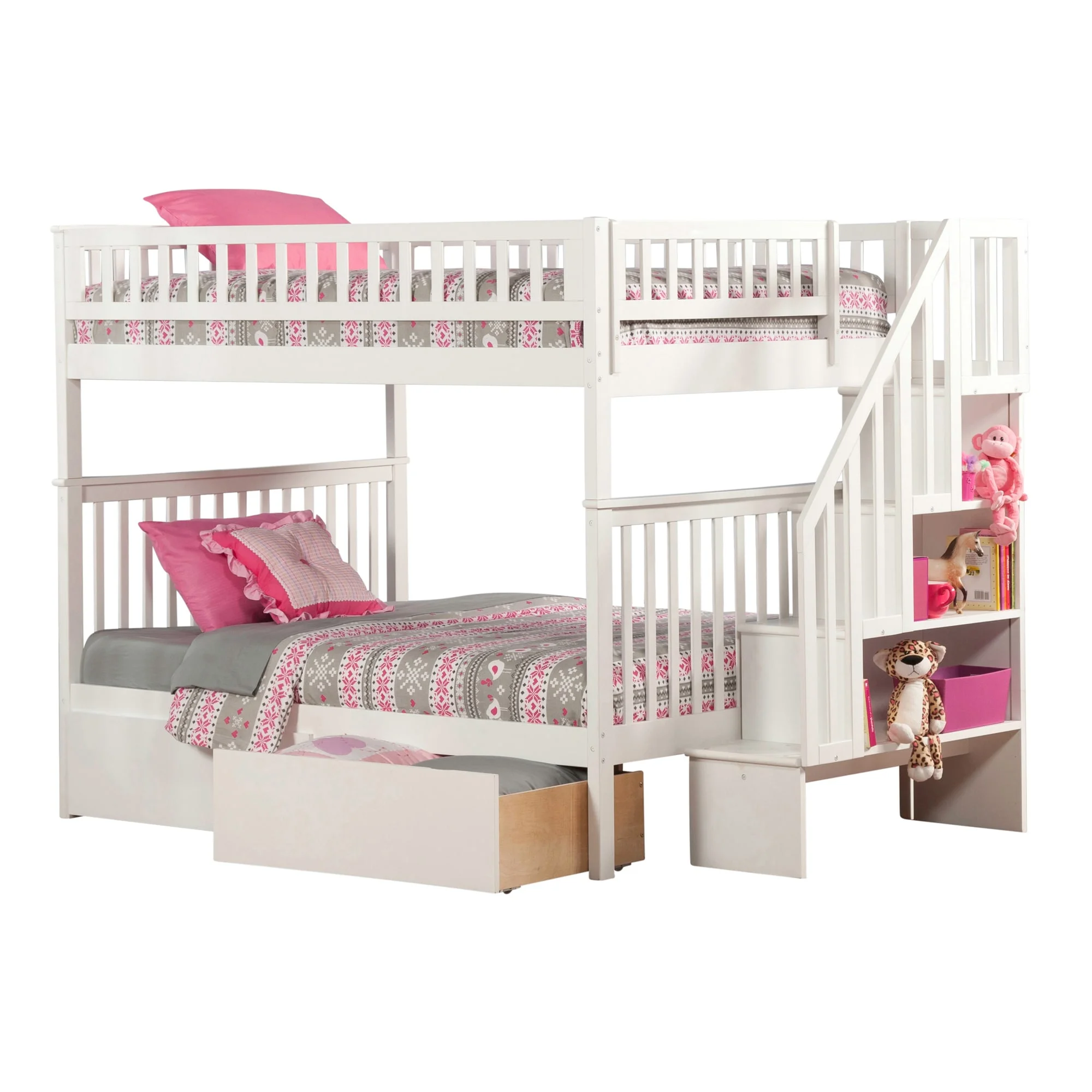 AFI Woodland Staircase Bunk Bed Full over Full with 2 Drawers in White