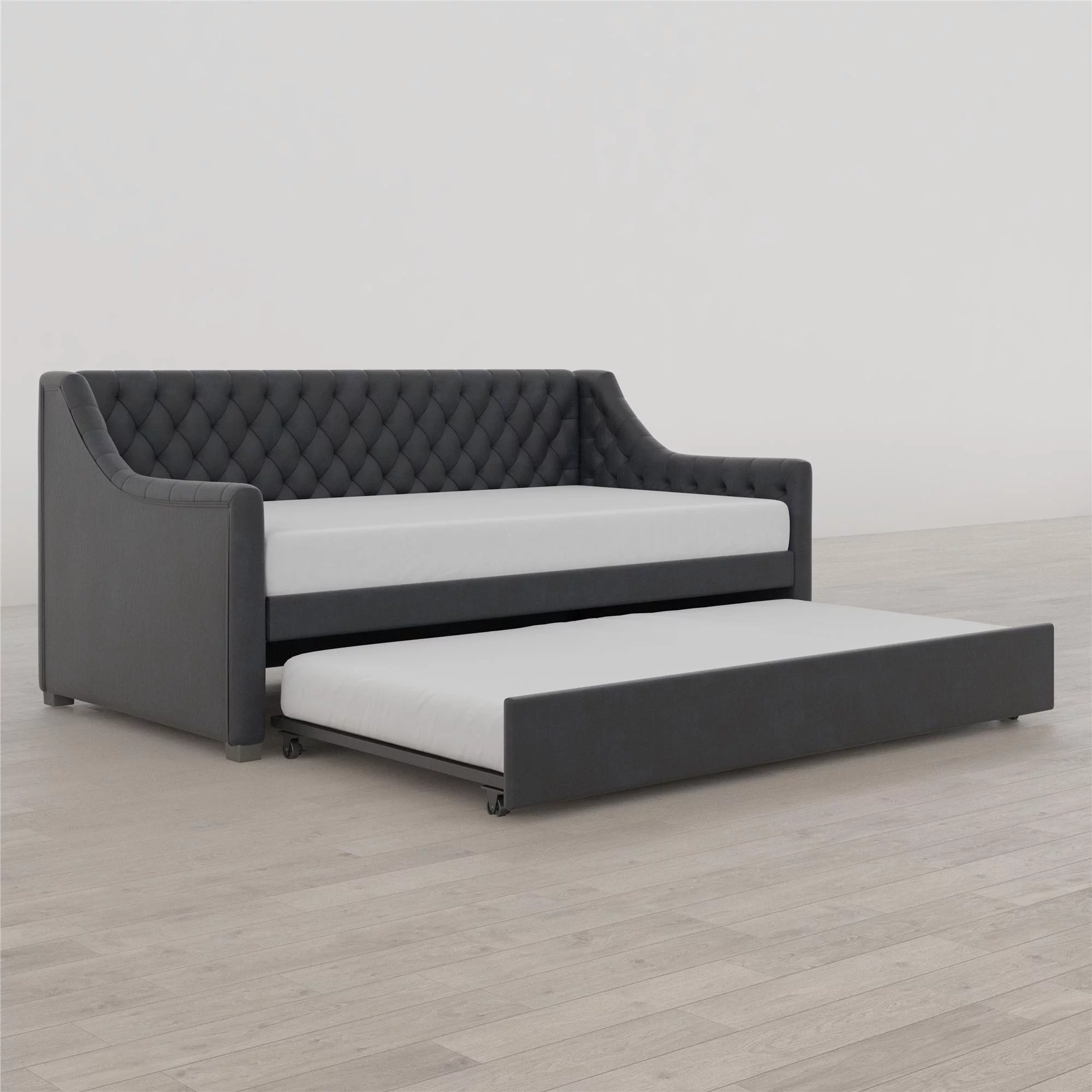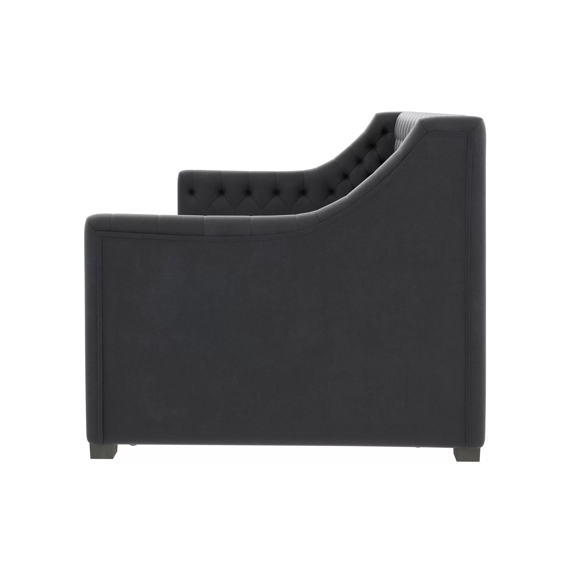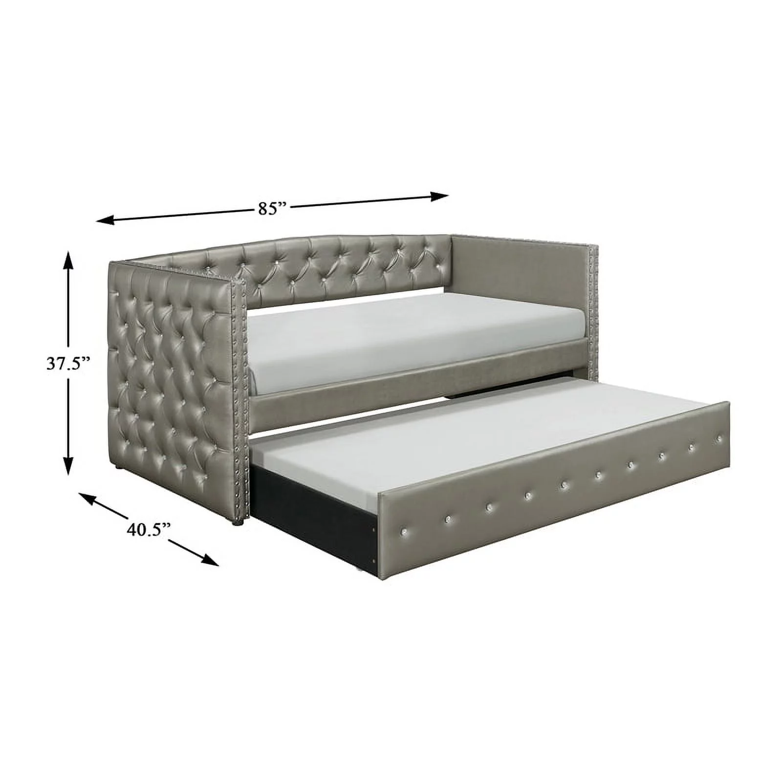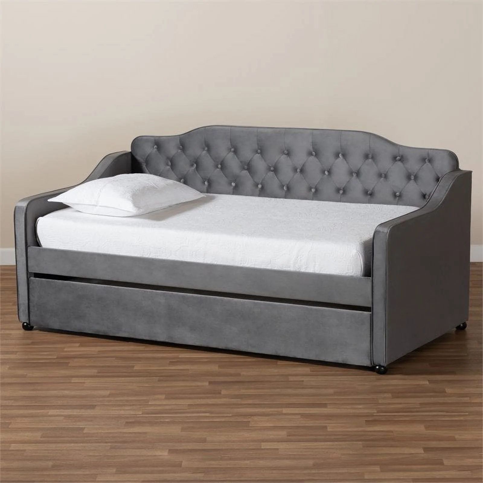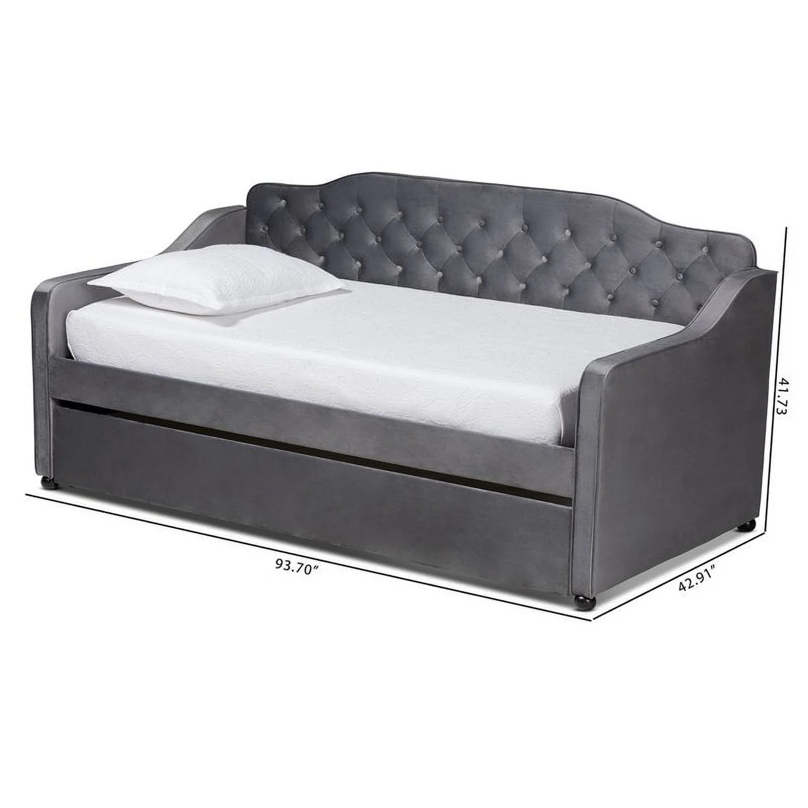 Bowery Hill Traditional Velvet Twin Size Button Tufted Daybed w/ Trundle in Gray