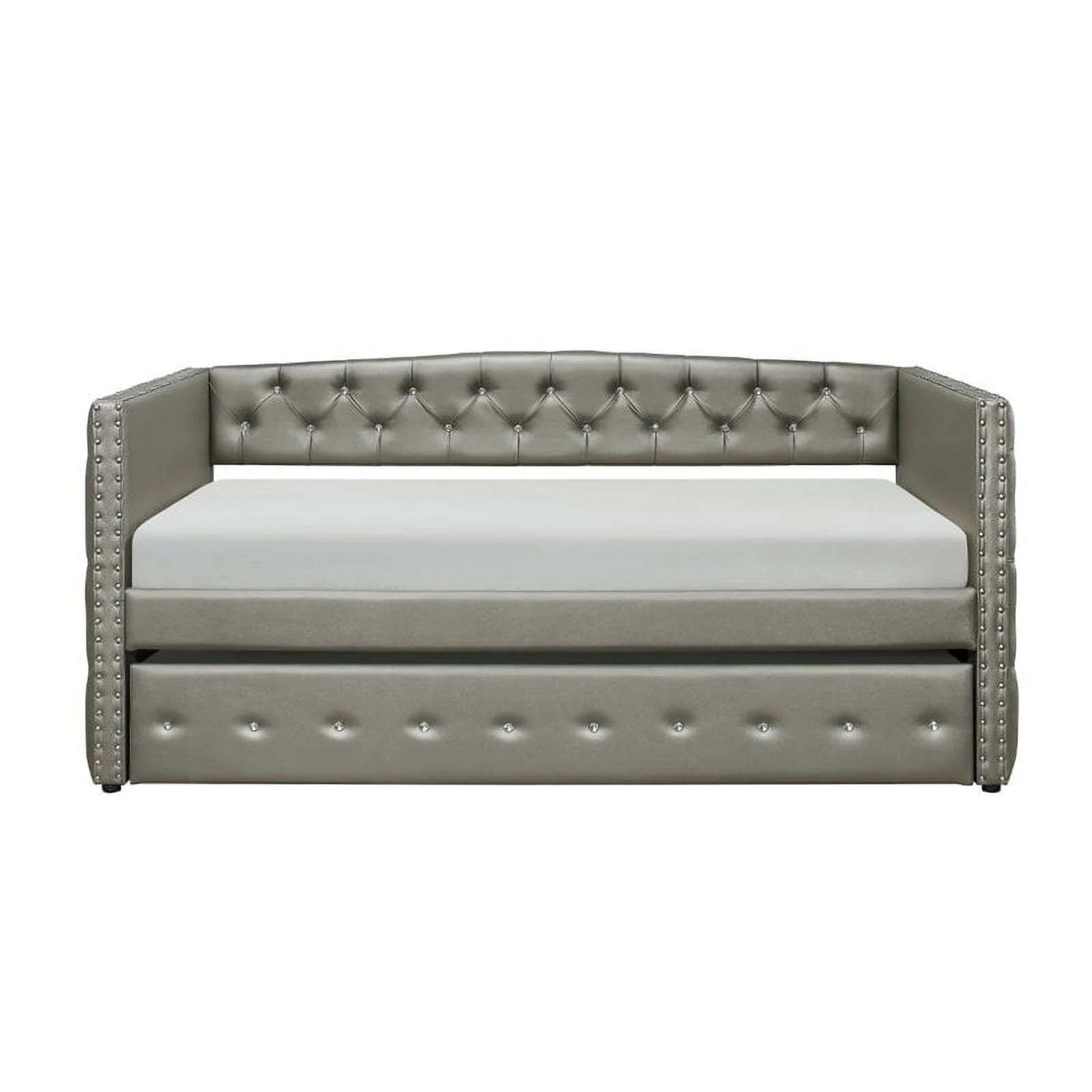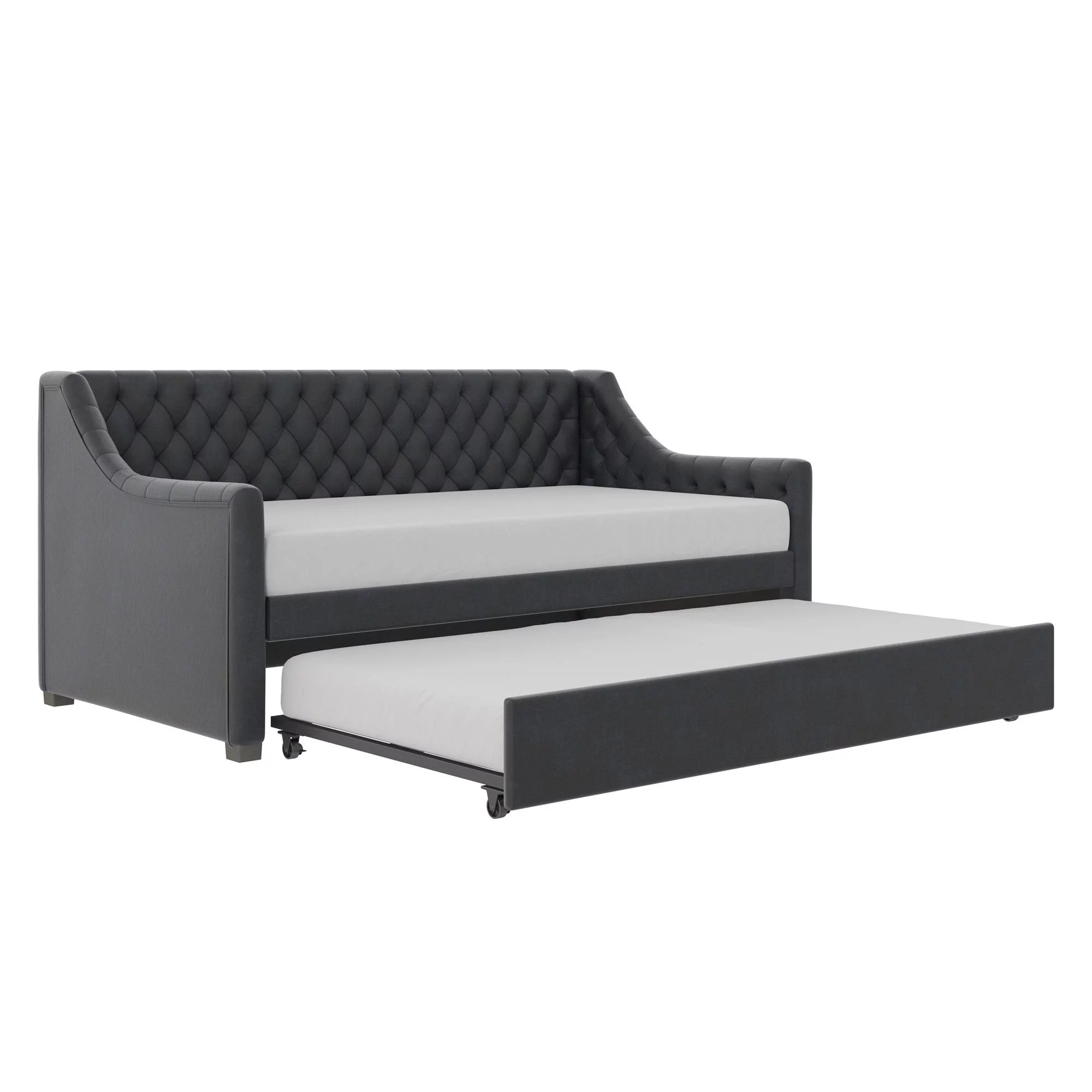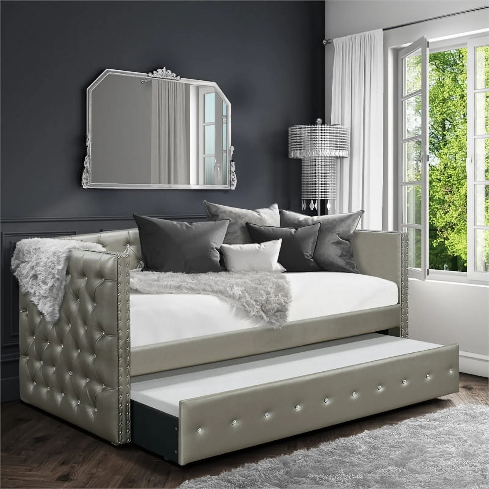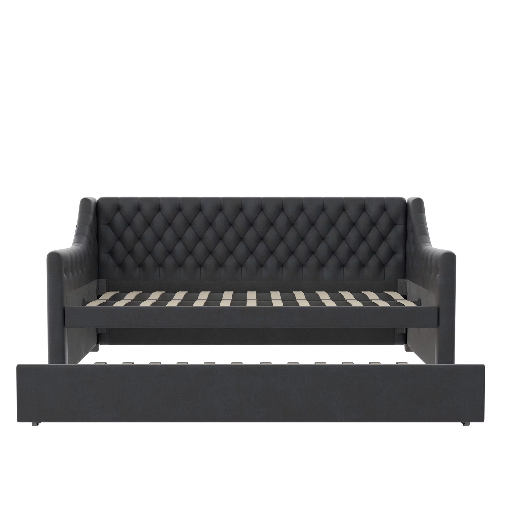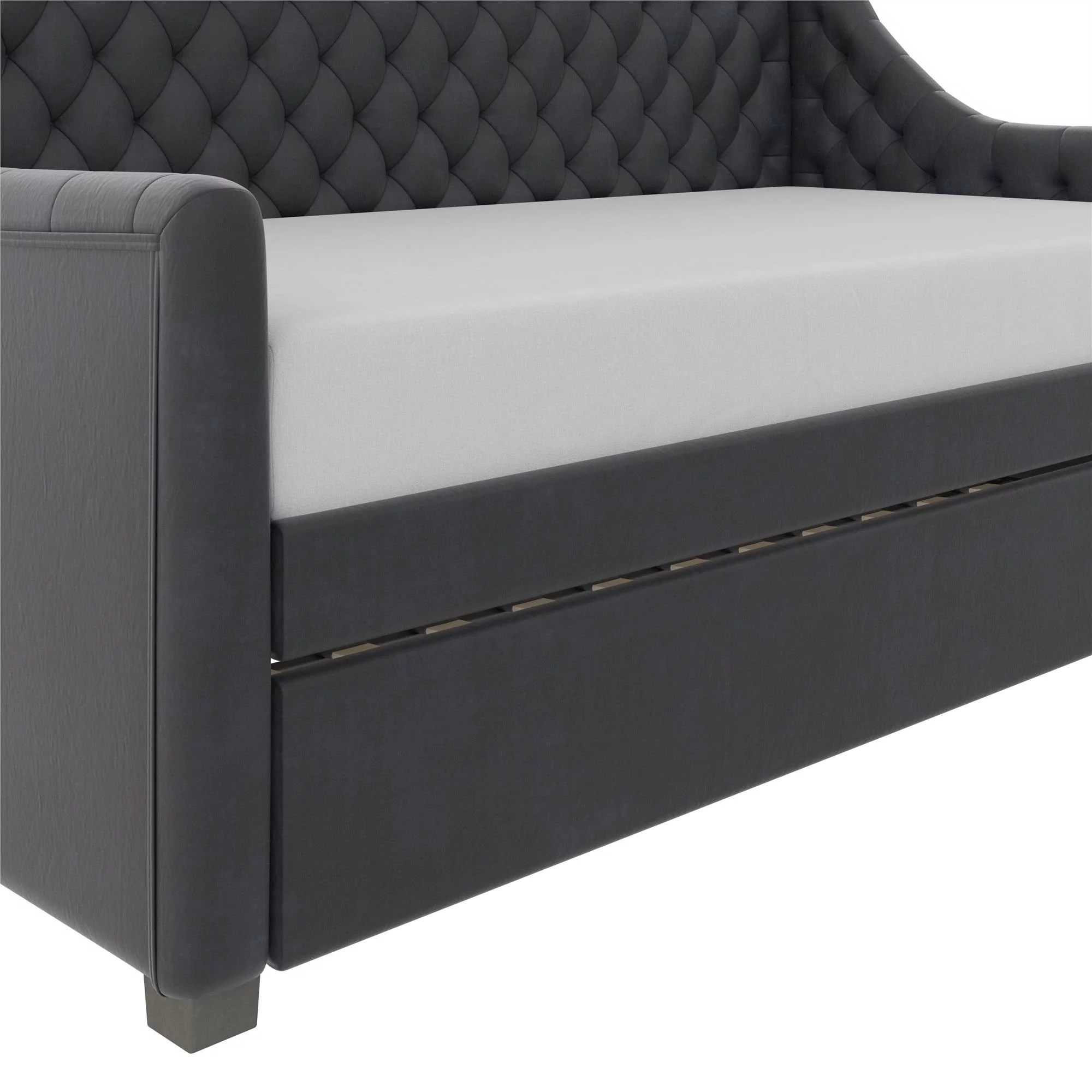 Bowery Hill Traditional Velvet Twin Size Button Tufted Daybed w/ Trundle in Gray