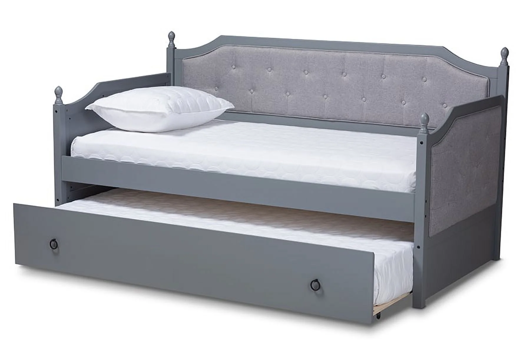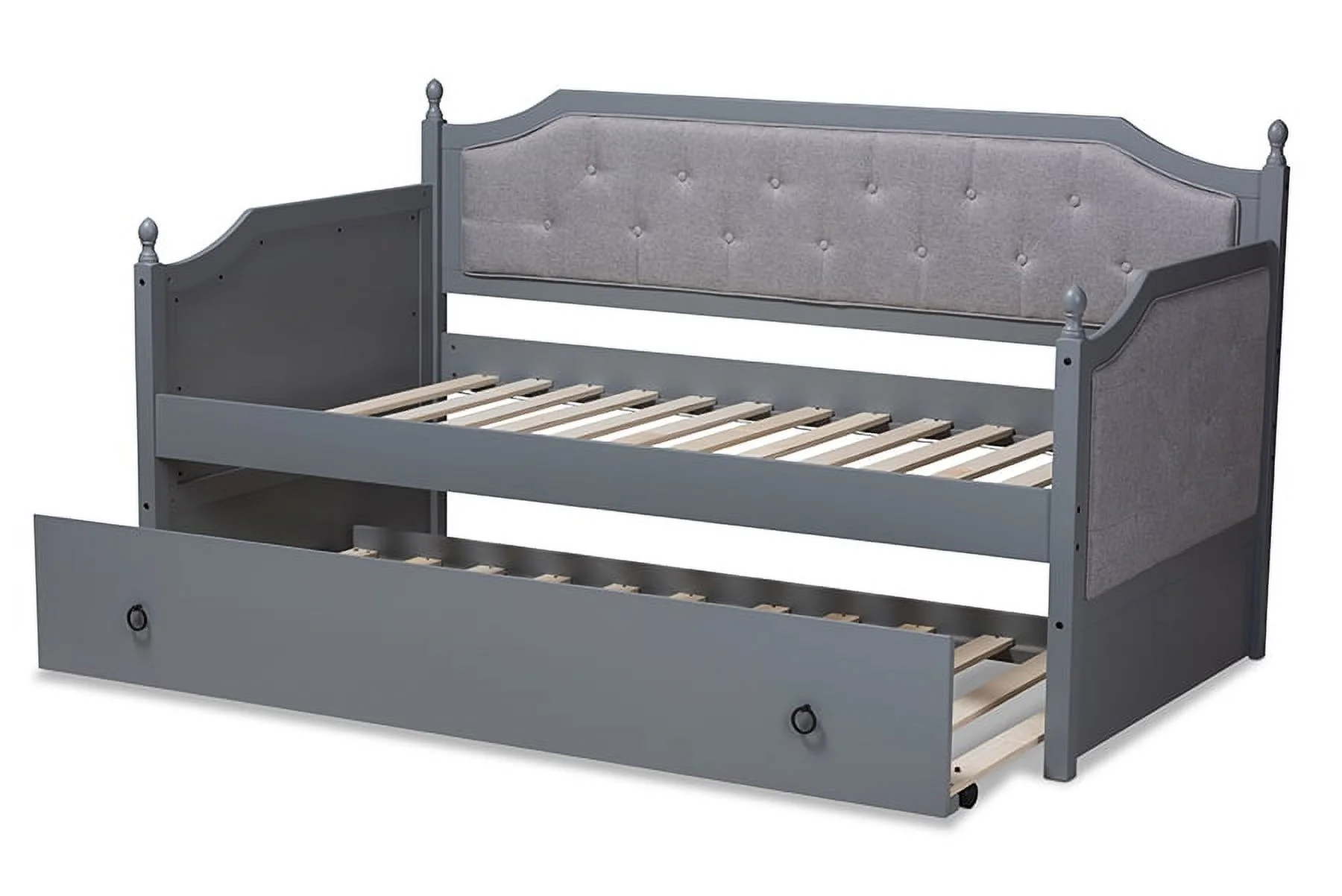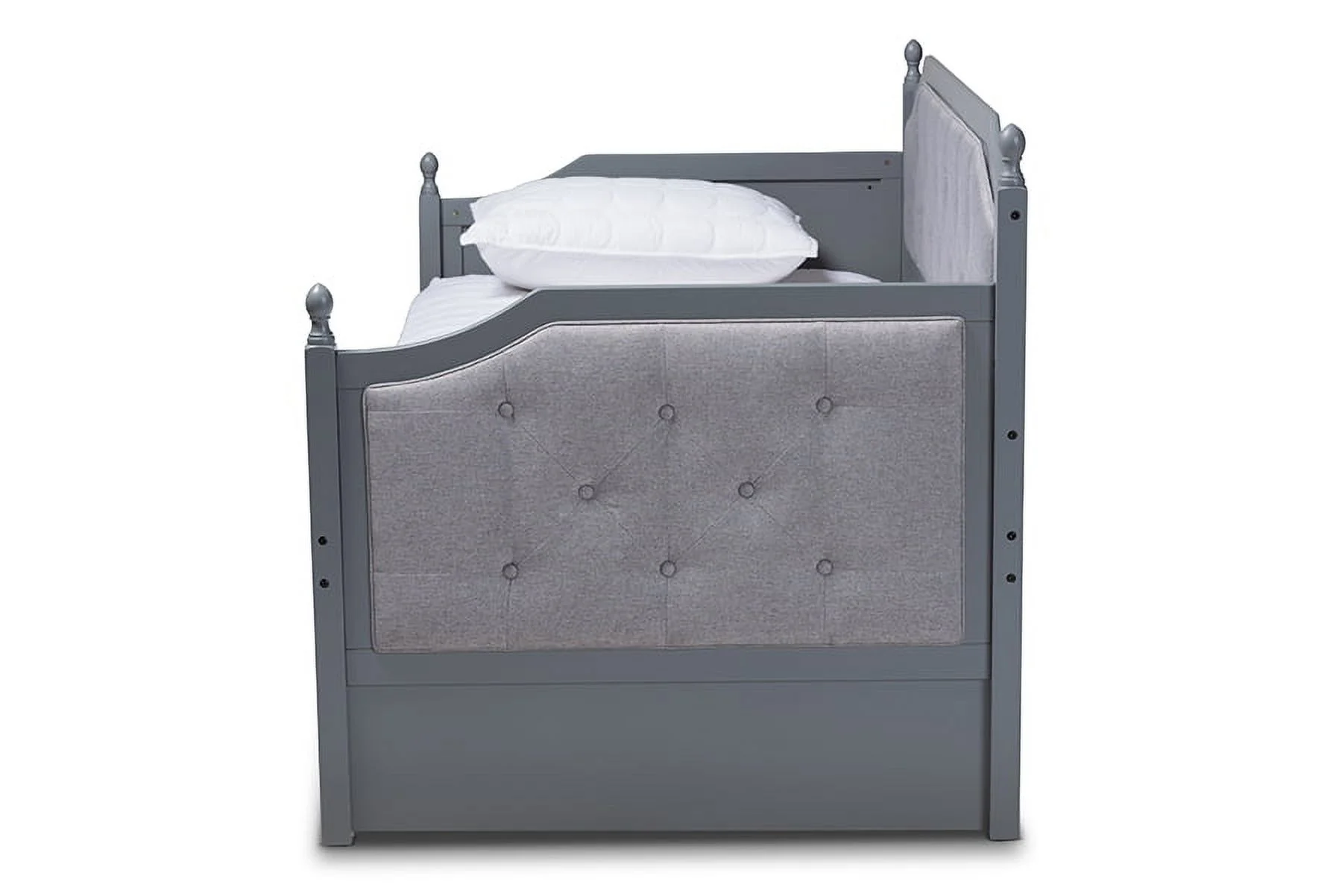 Baxton Studio Mara Classic and Traditional Grey Fabric Upholstered Grey Finished Wood Twin Size Daybed with Trundle
