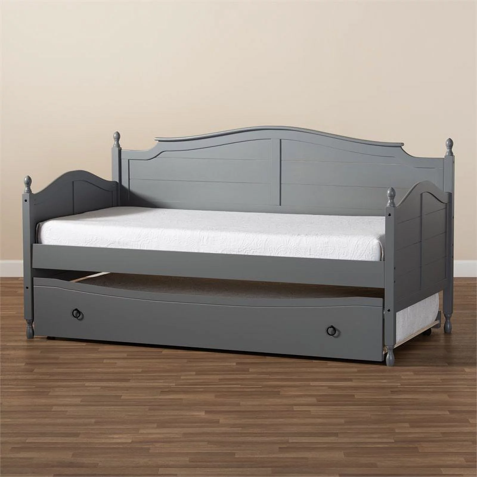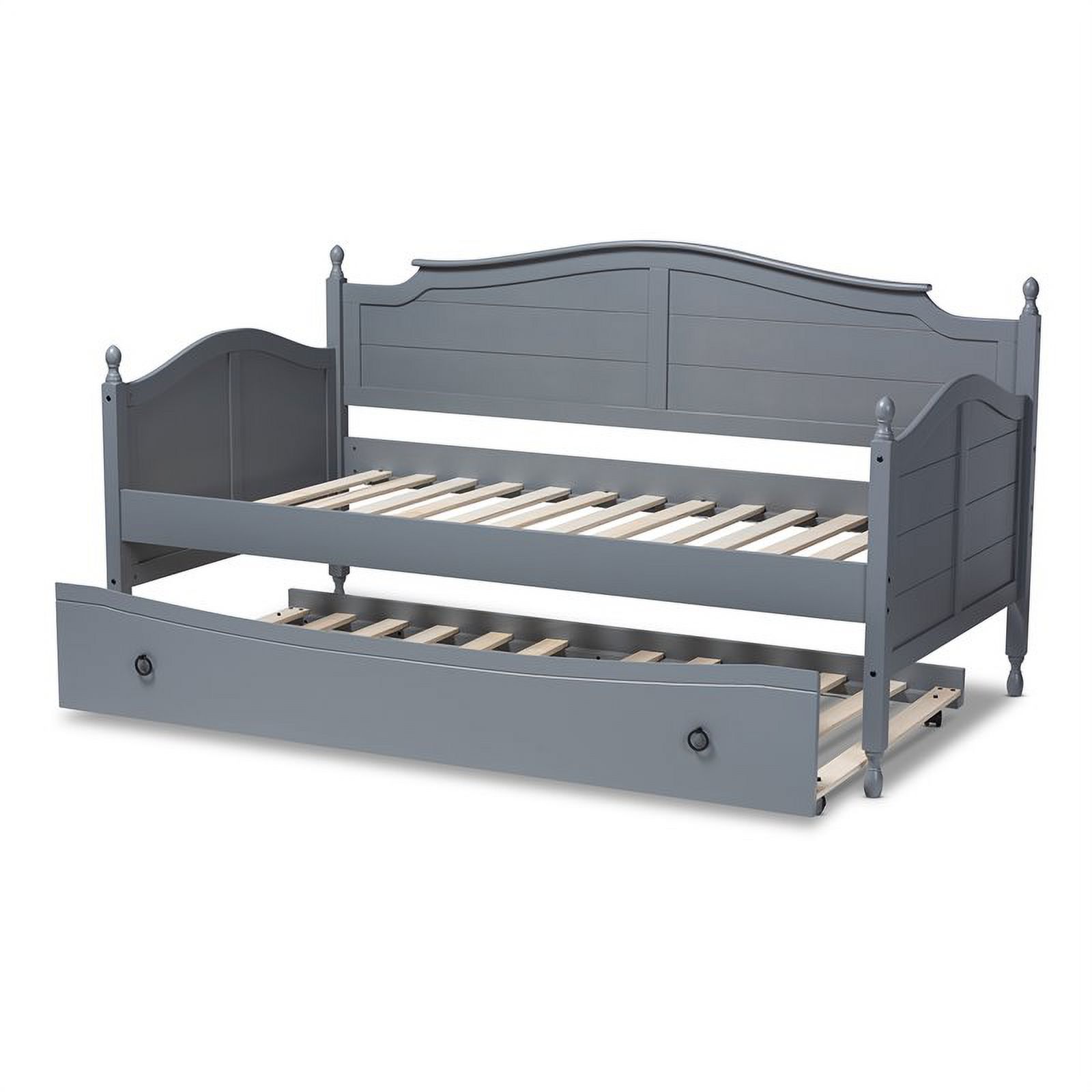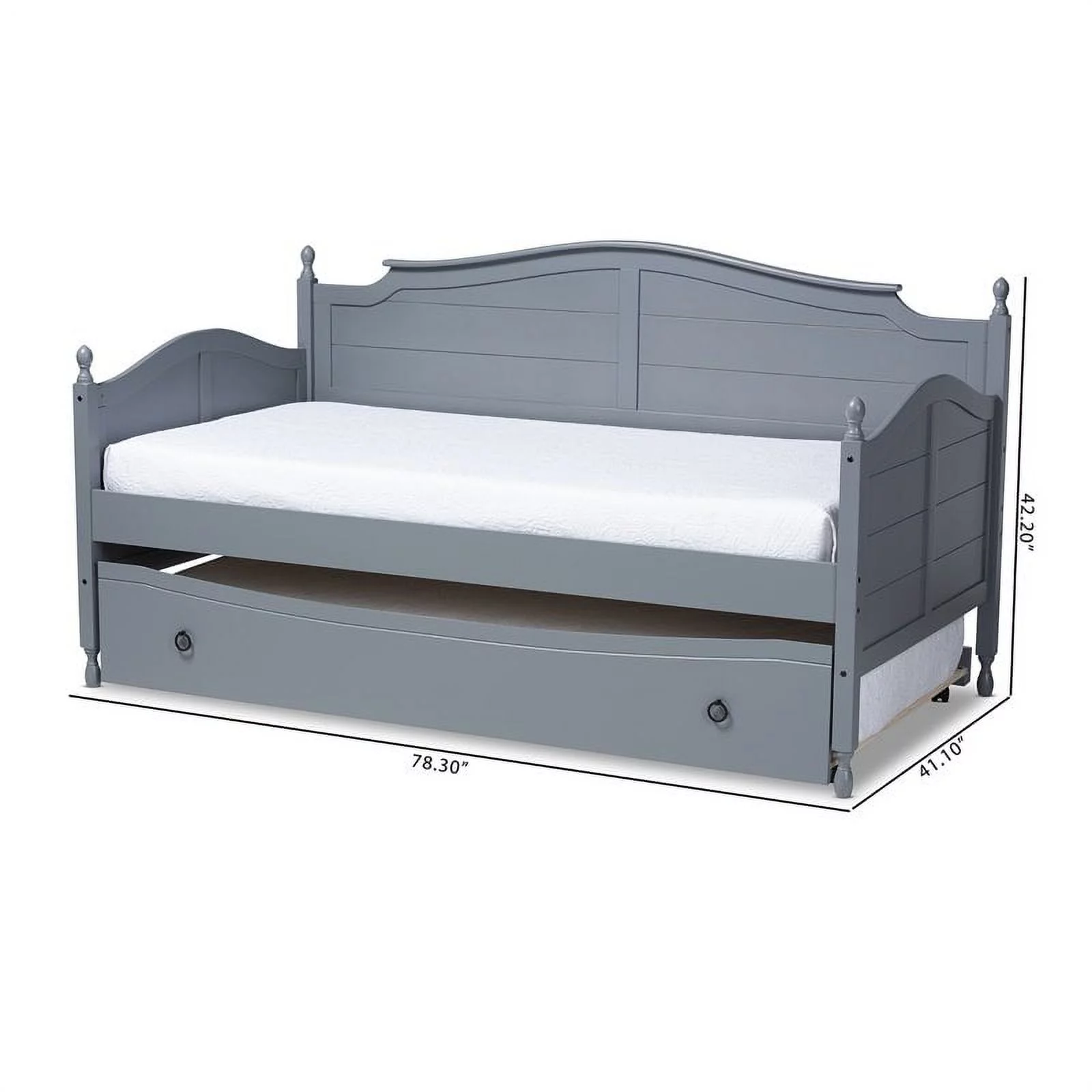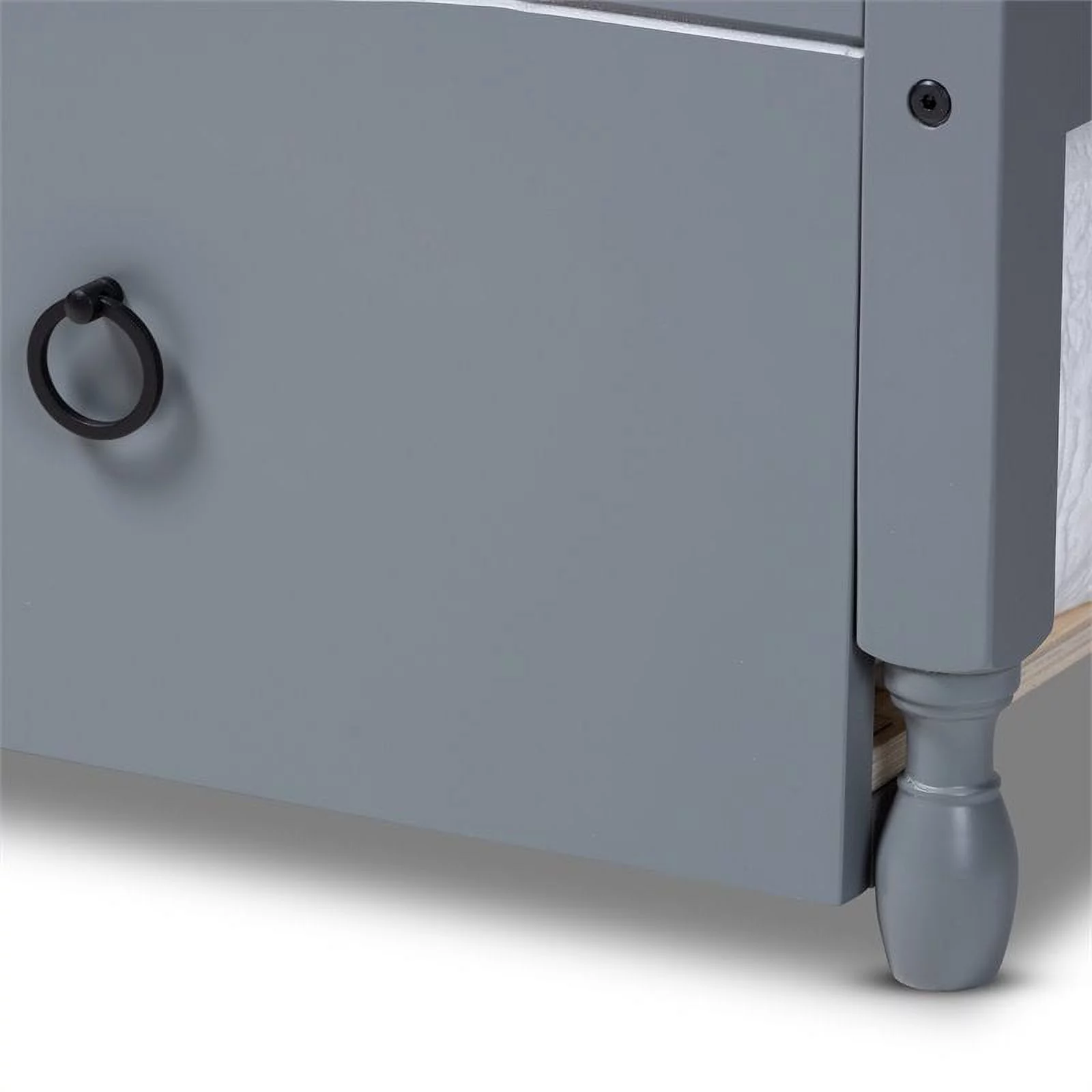Baxton Studio Mara Classic and Traditional Grey Fabric Upholstered Grey Finished Wood Twin Size Daybed with Trundle