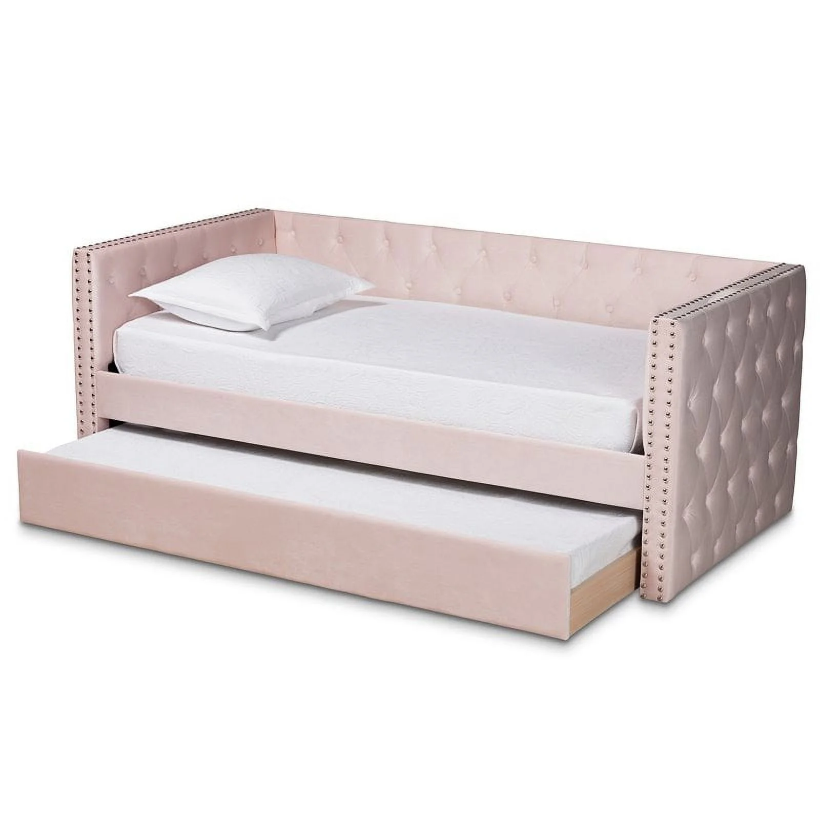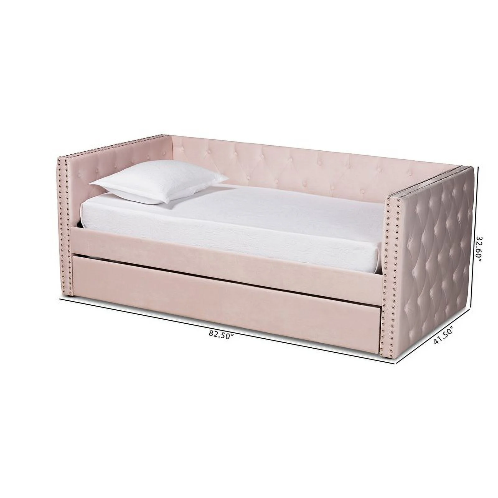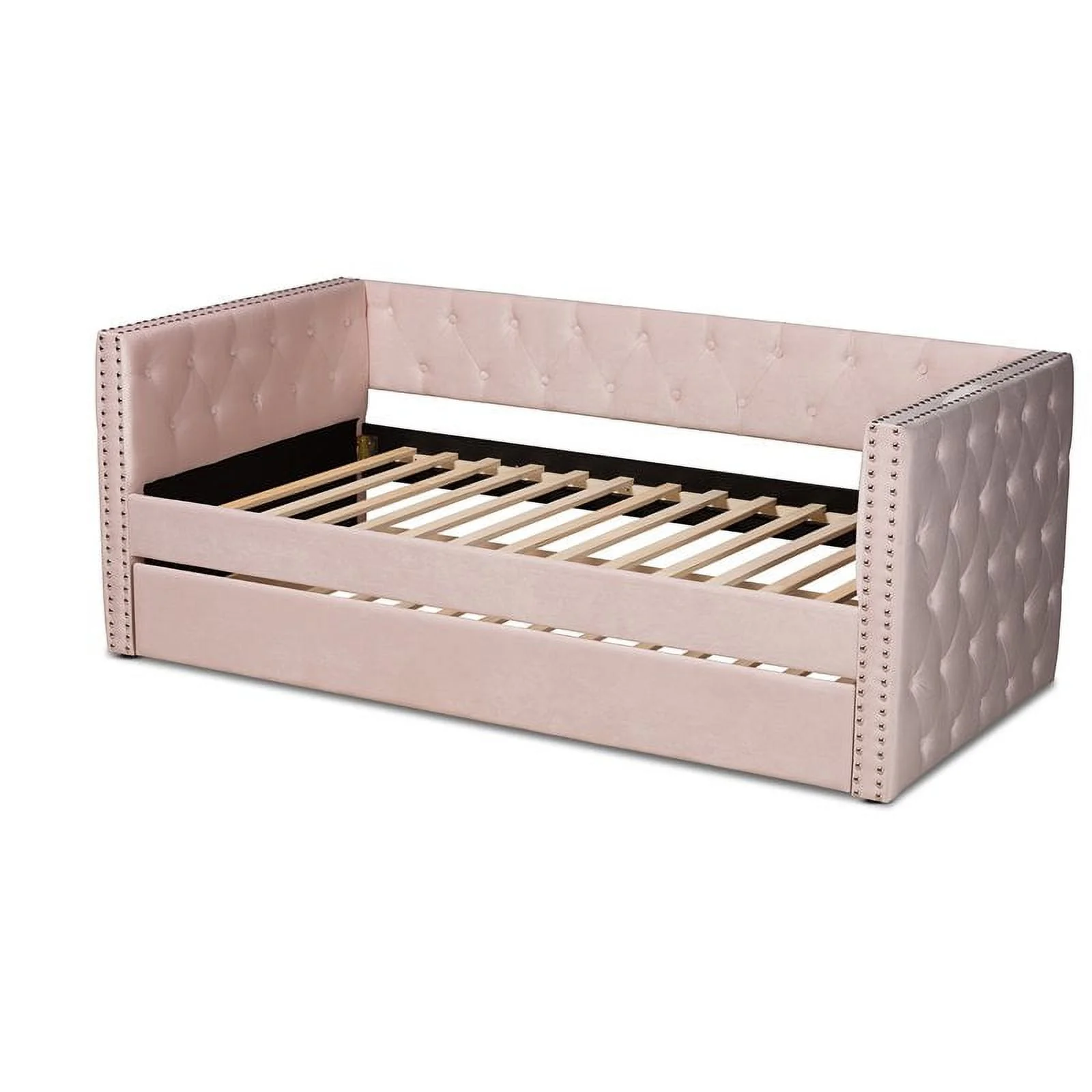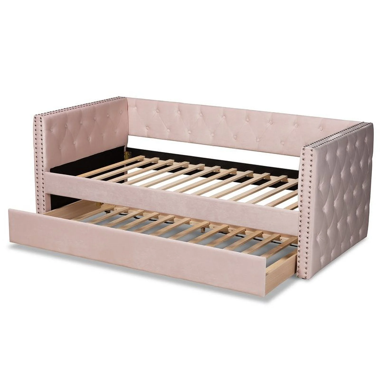 Bowery Hill Contemporary Velvet Upholstered Twin Size Daybed w/ Trundle in Pink