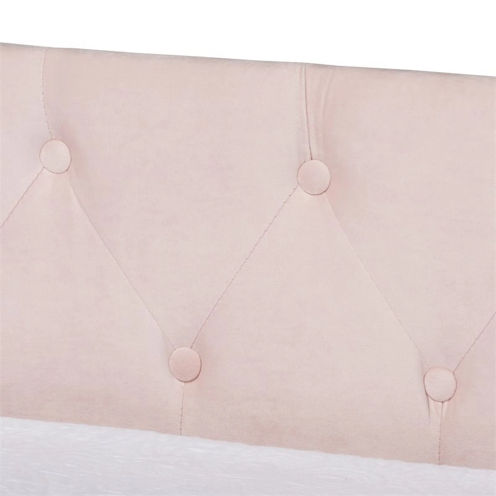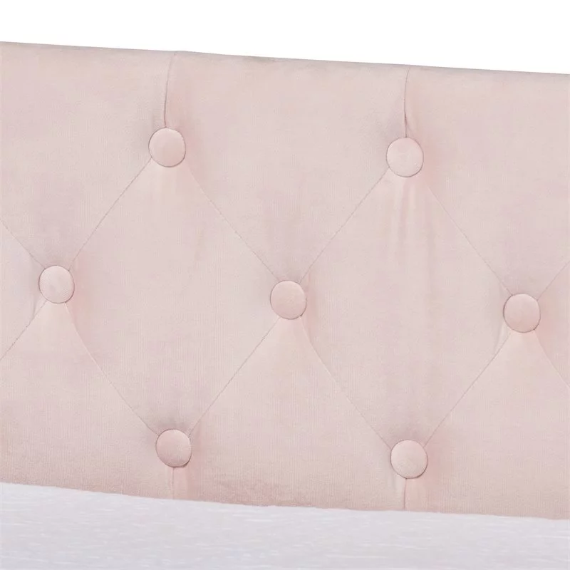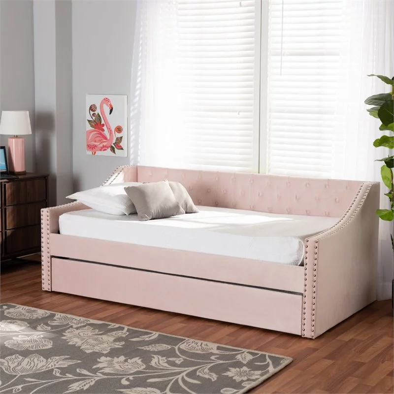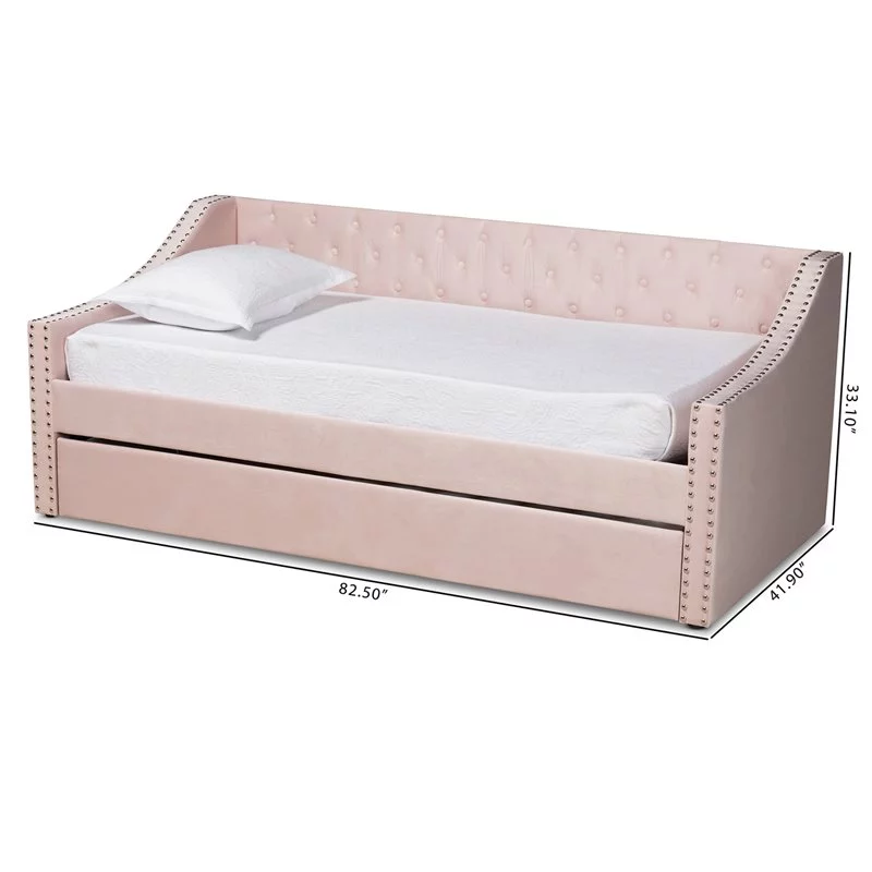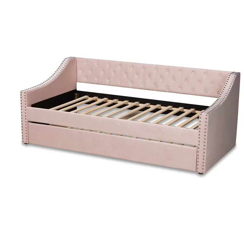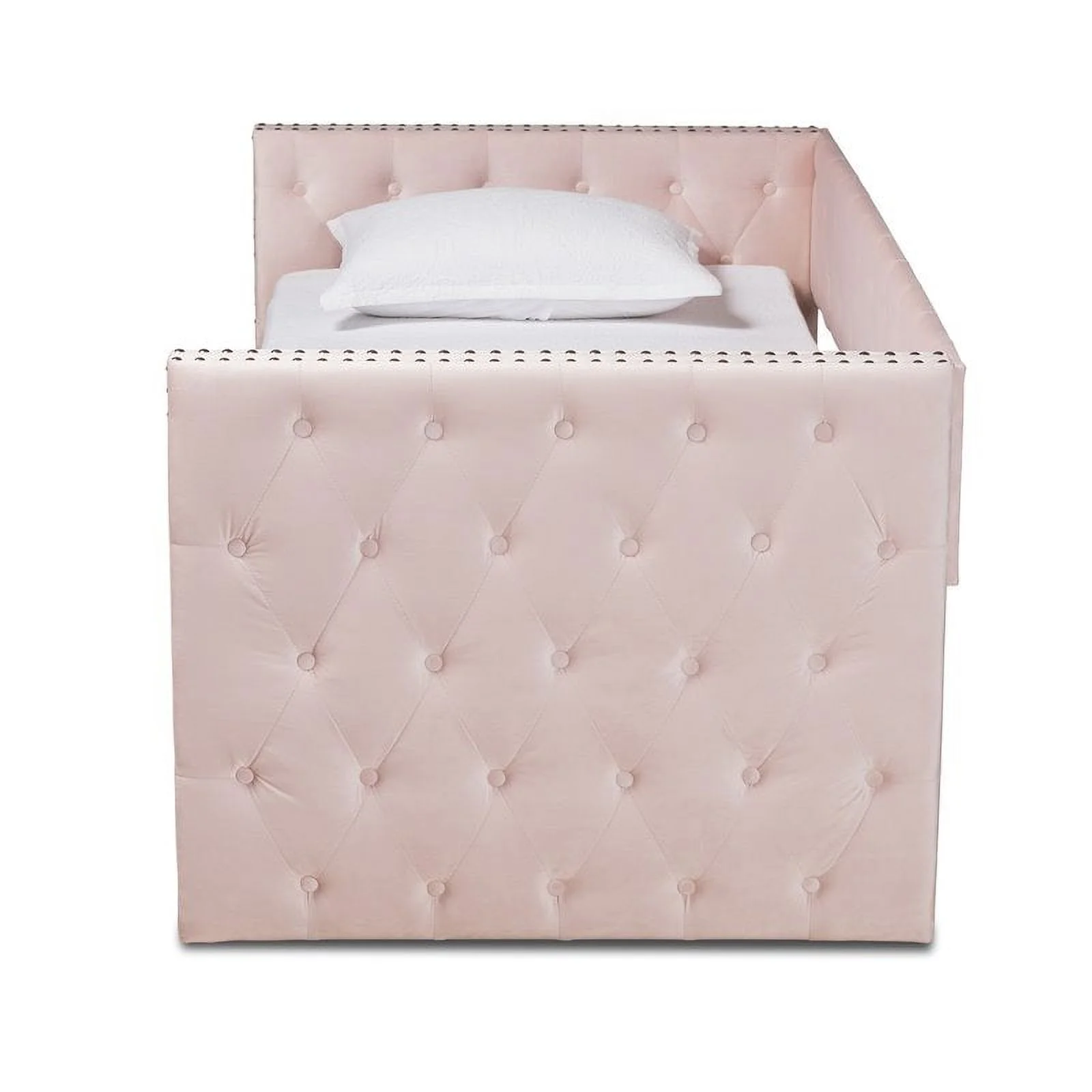 Bowery Hill Contemporary Velvet Upholstered Twin Size Daybed w/ Trundle in Pink