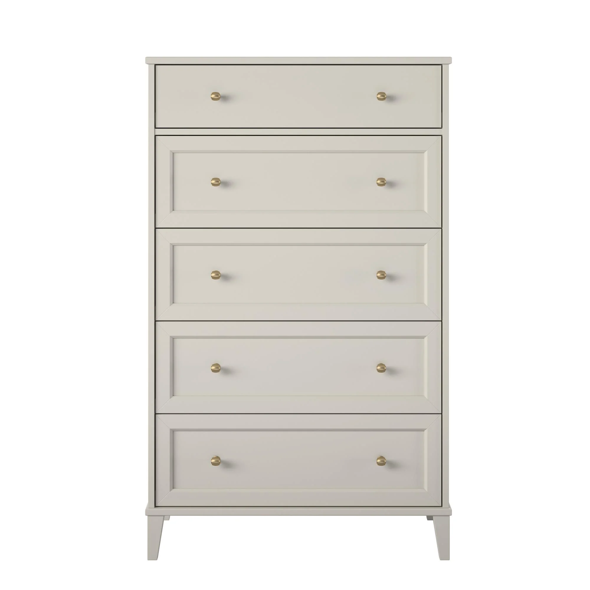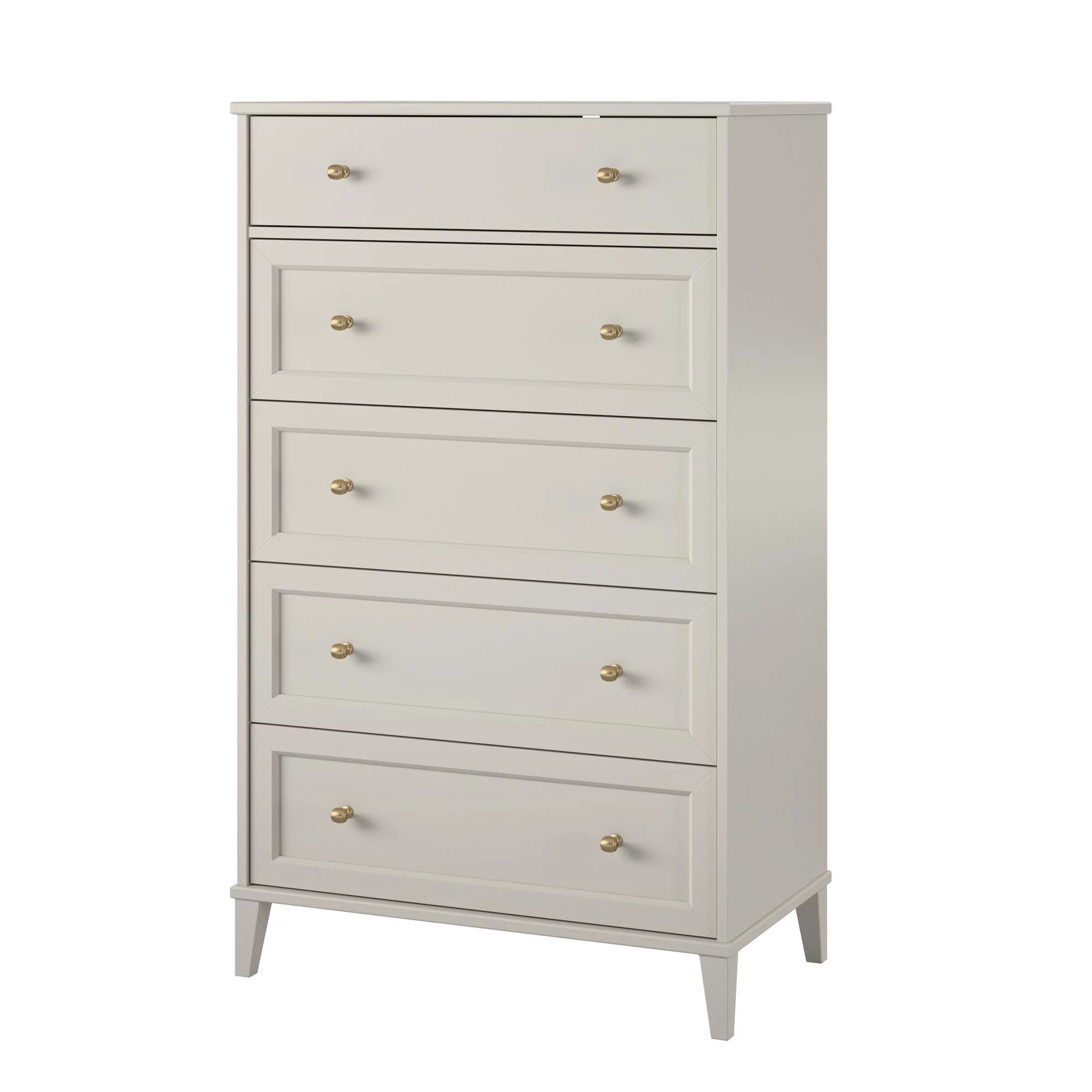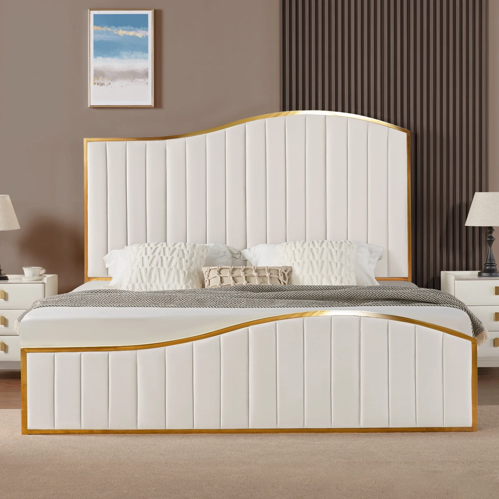 Howe Queen Size Platform Bed Frame 61.4" Vertical Channel Gold Trim Headboard & Footboard Cream
