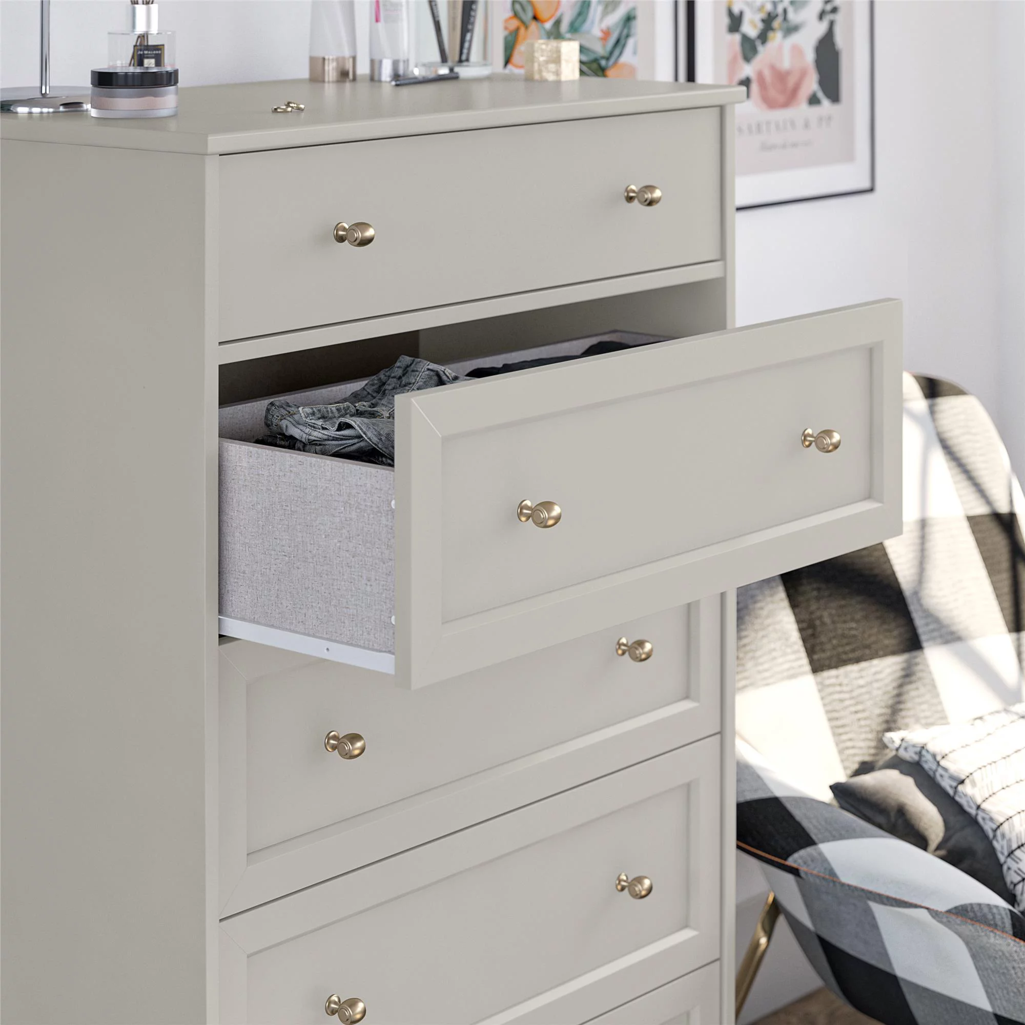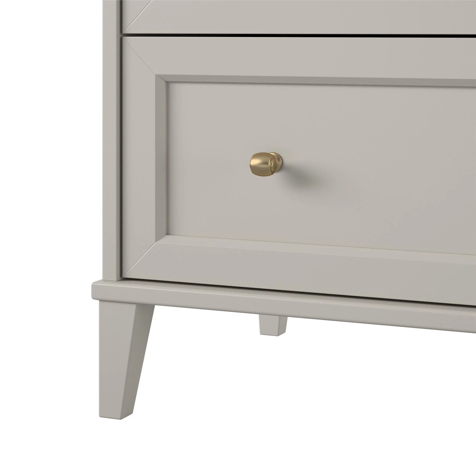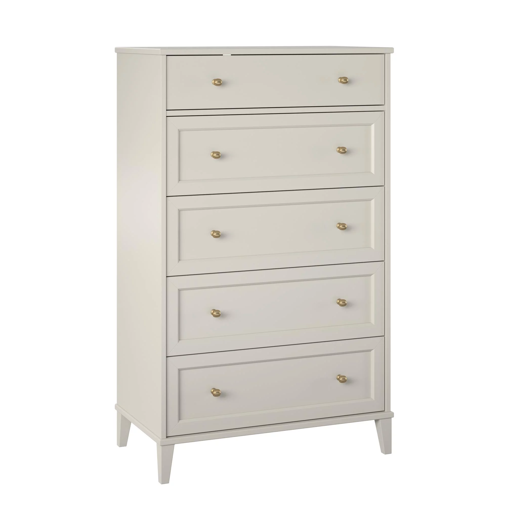 Howe Queen Size Platform Bed Frame 61.4" Vertical Channel Gold Trim Headboard & Footboard Cream