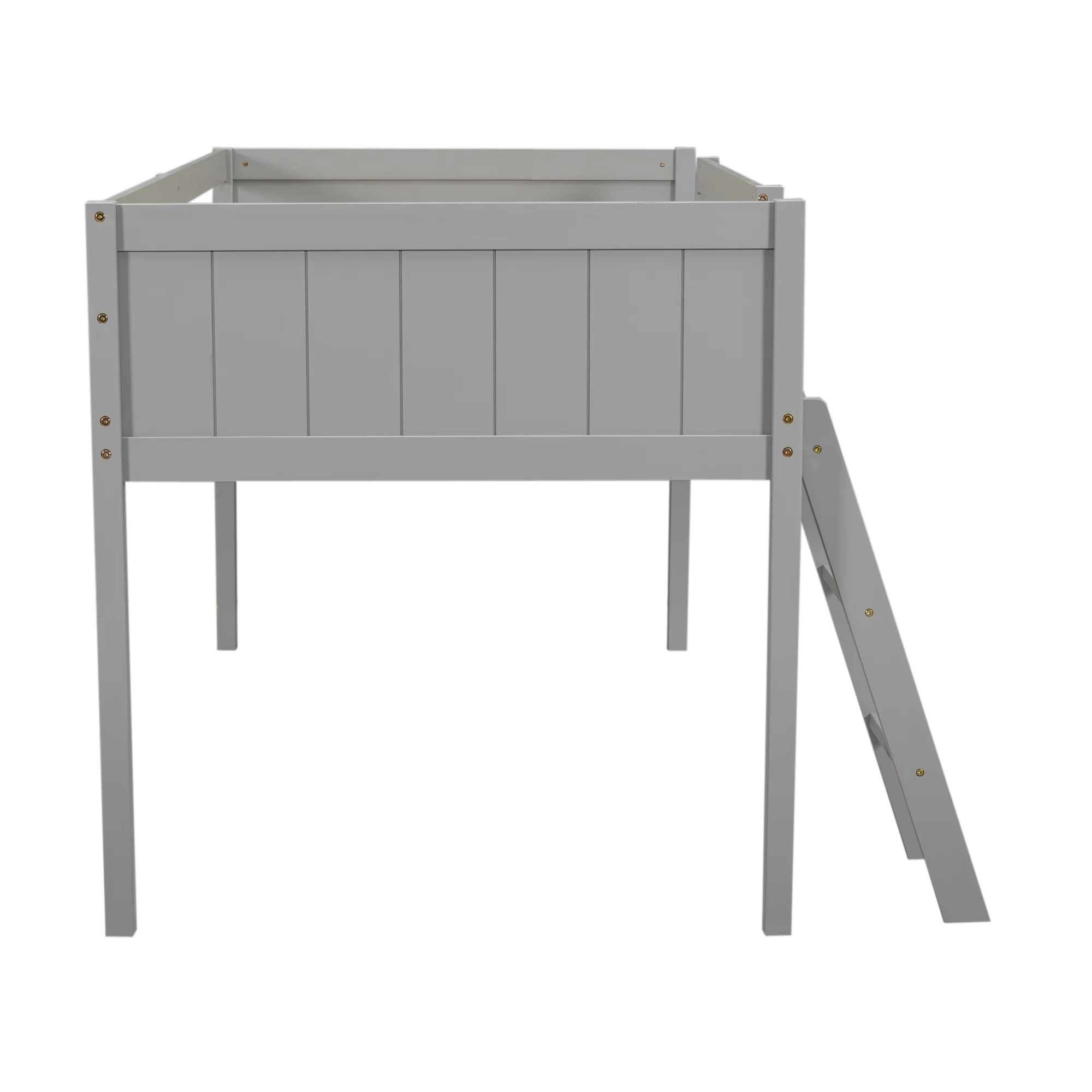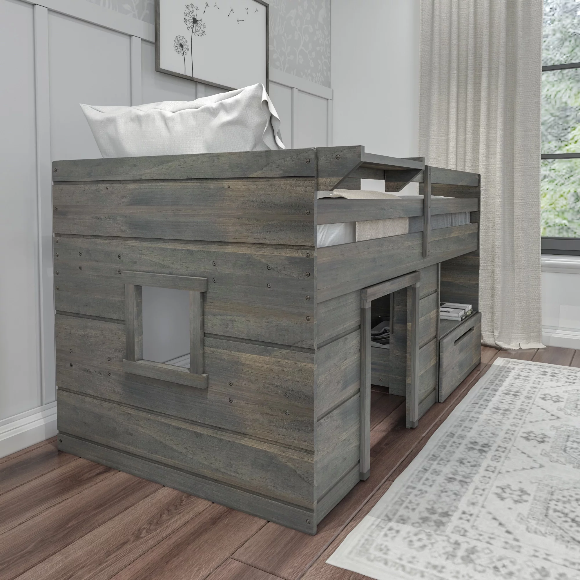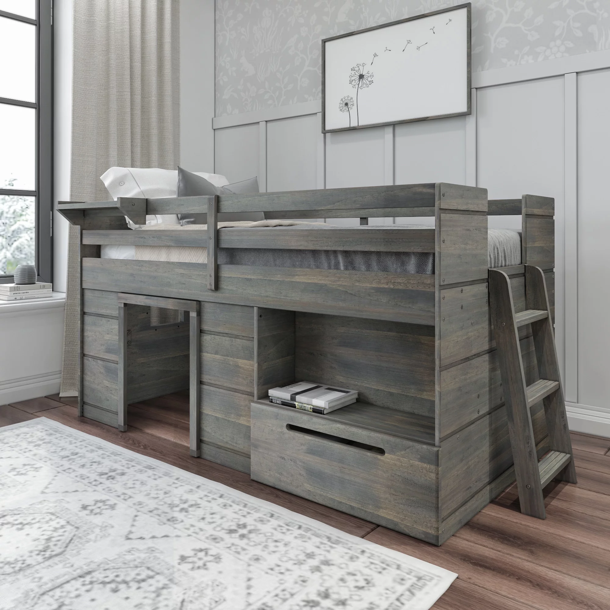 Churanty Twin Loft Bed Low Study Twin Size Bed with Cabinet and Rolling Portable Desk (Grey)
