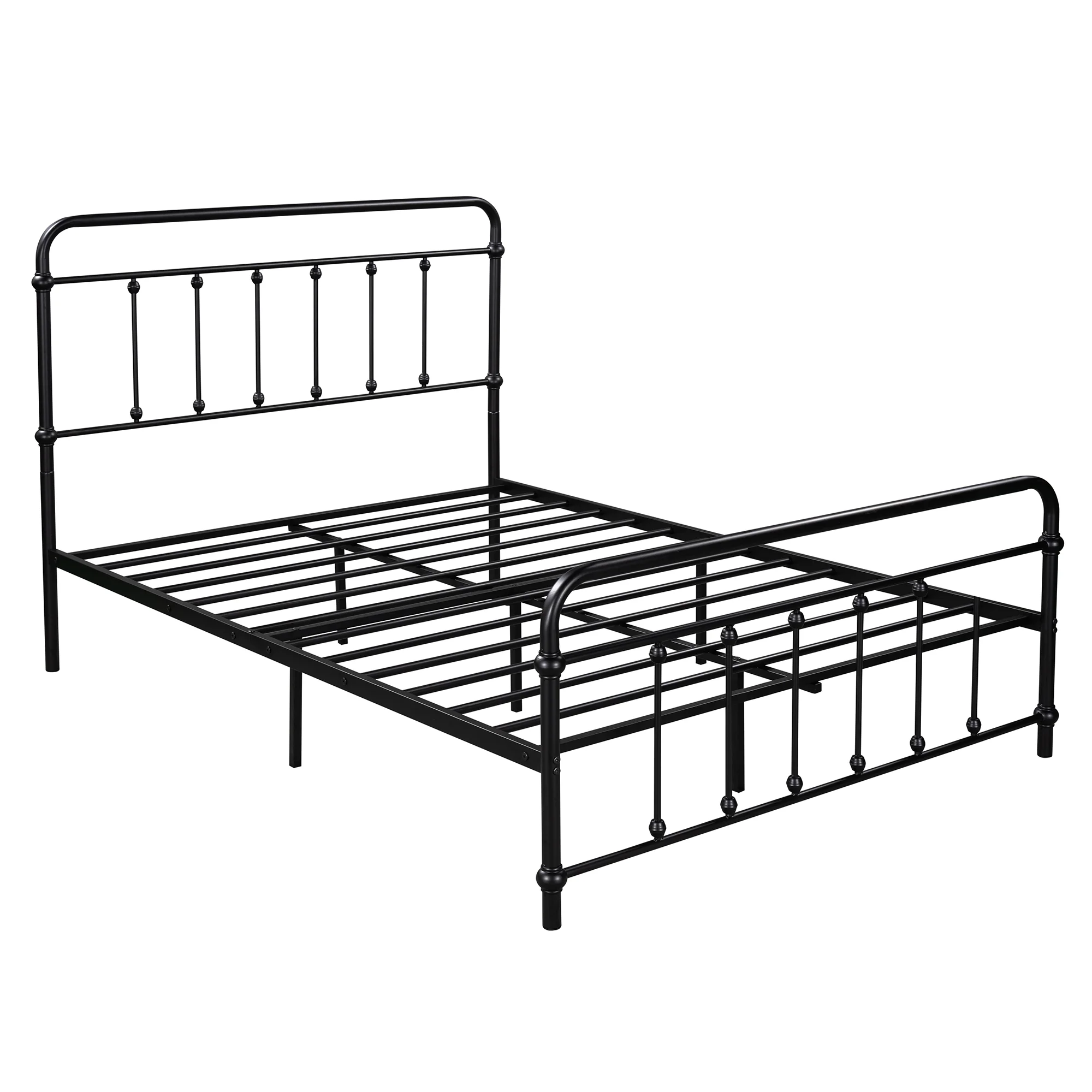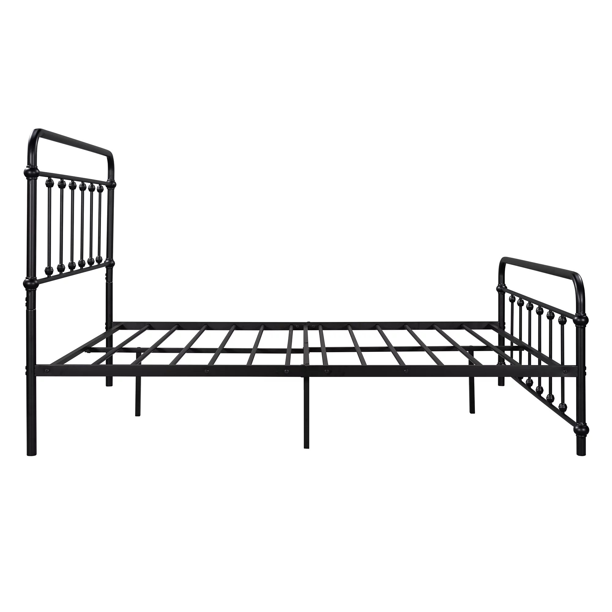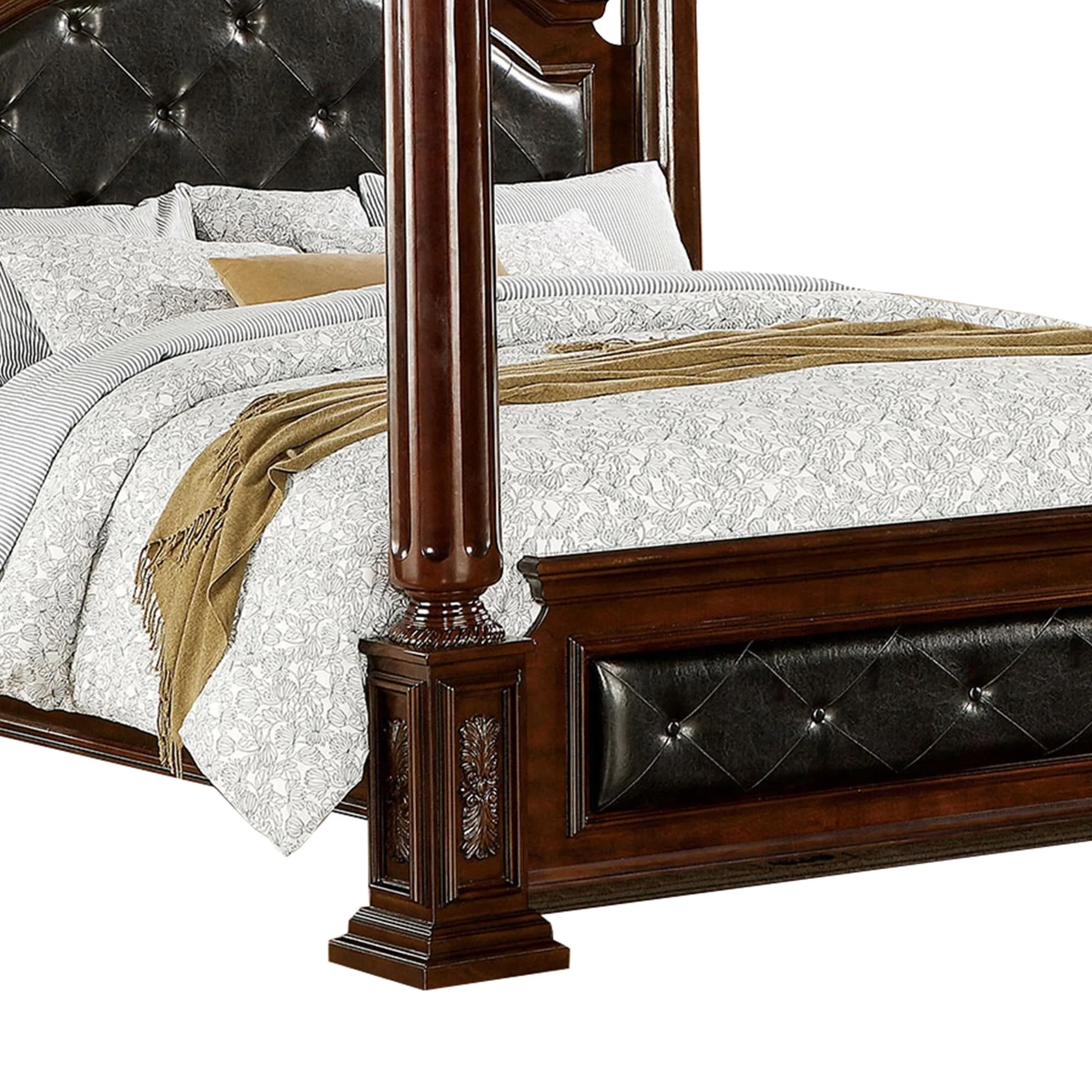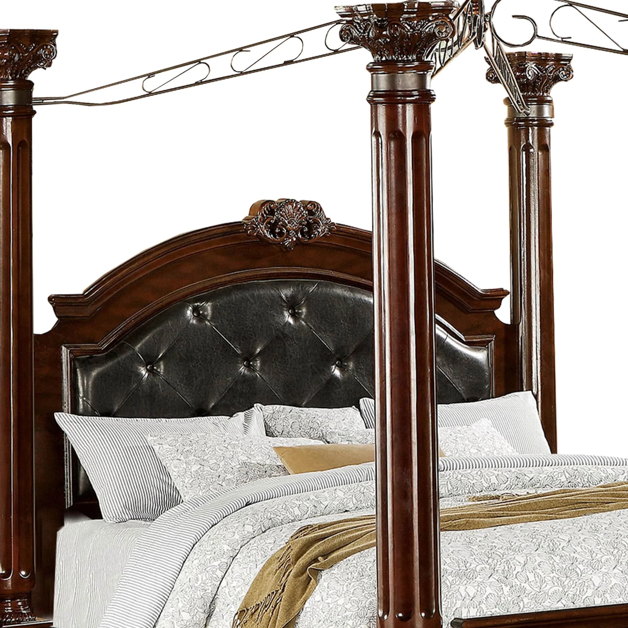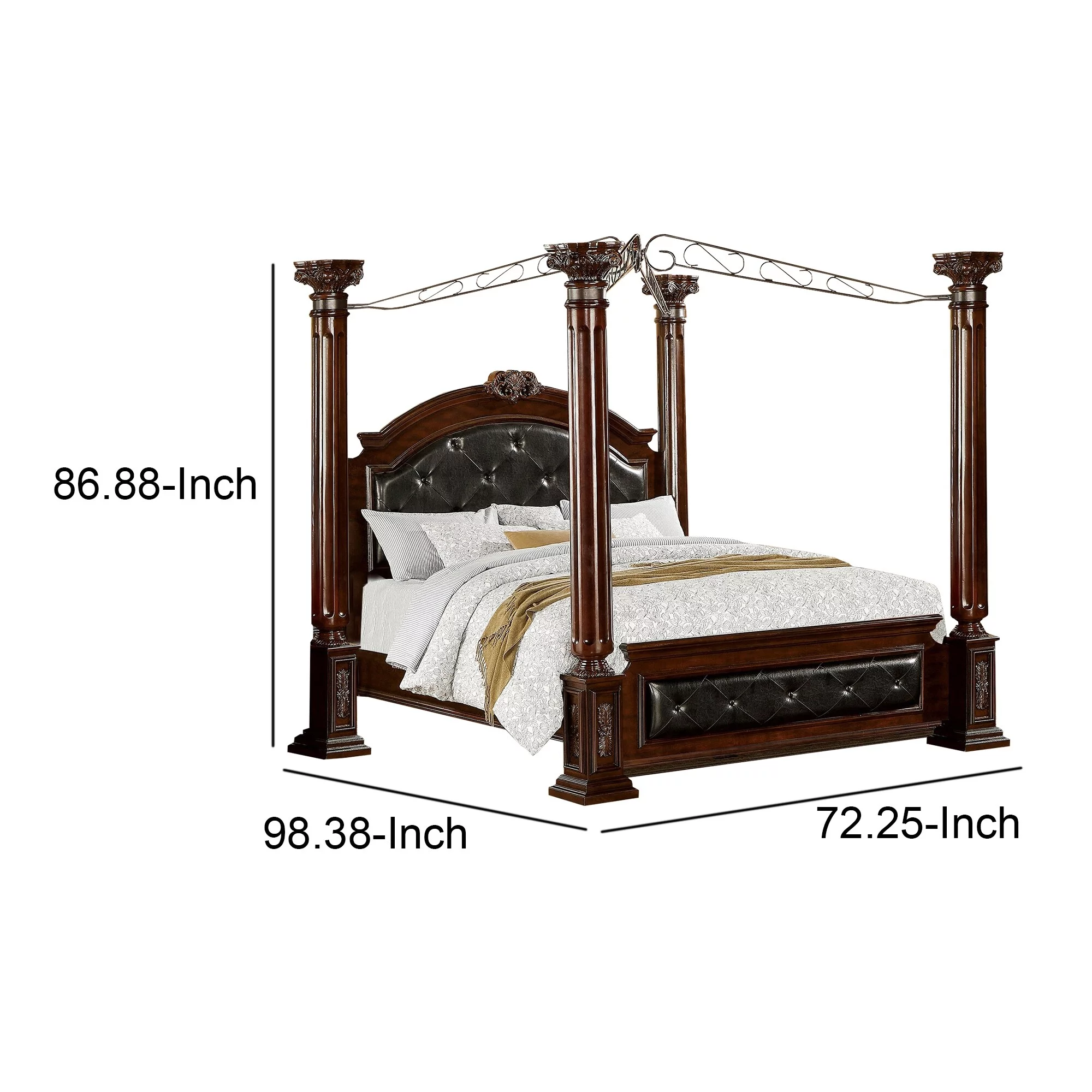 Queen Canopy Bed with Leatherette Headboard and Footboard, Black and Brown