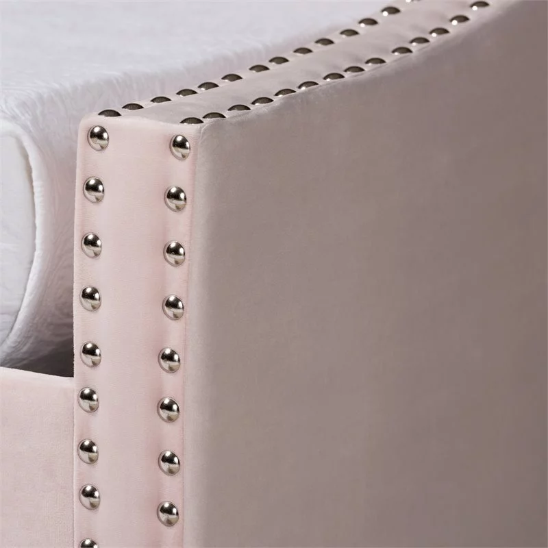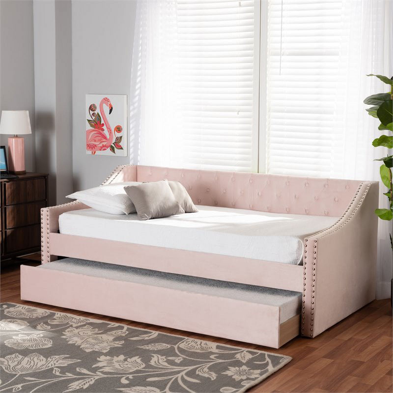 Bowery Hill Contemporary Pink Velvet Upholstered Twin Size Daybed with Trundle