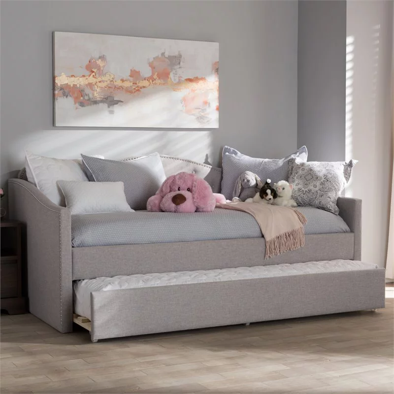Baxton Studio Anabella Modern and Contemporary Upholstered Daybed with Trundle