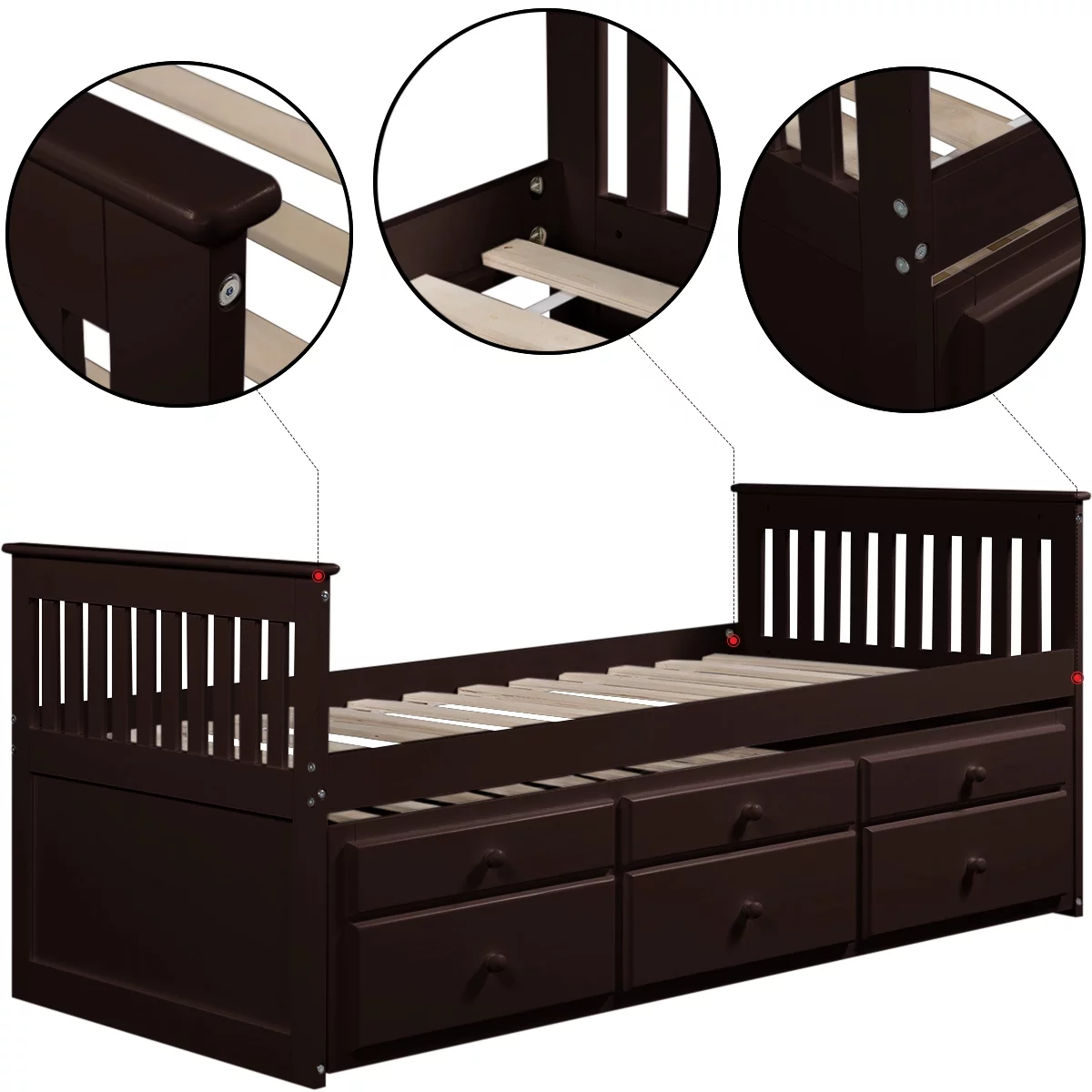 Kodiak Furniture Boho Twin Traditional Solid Wood Daybed in Medium Brown