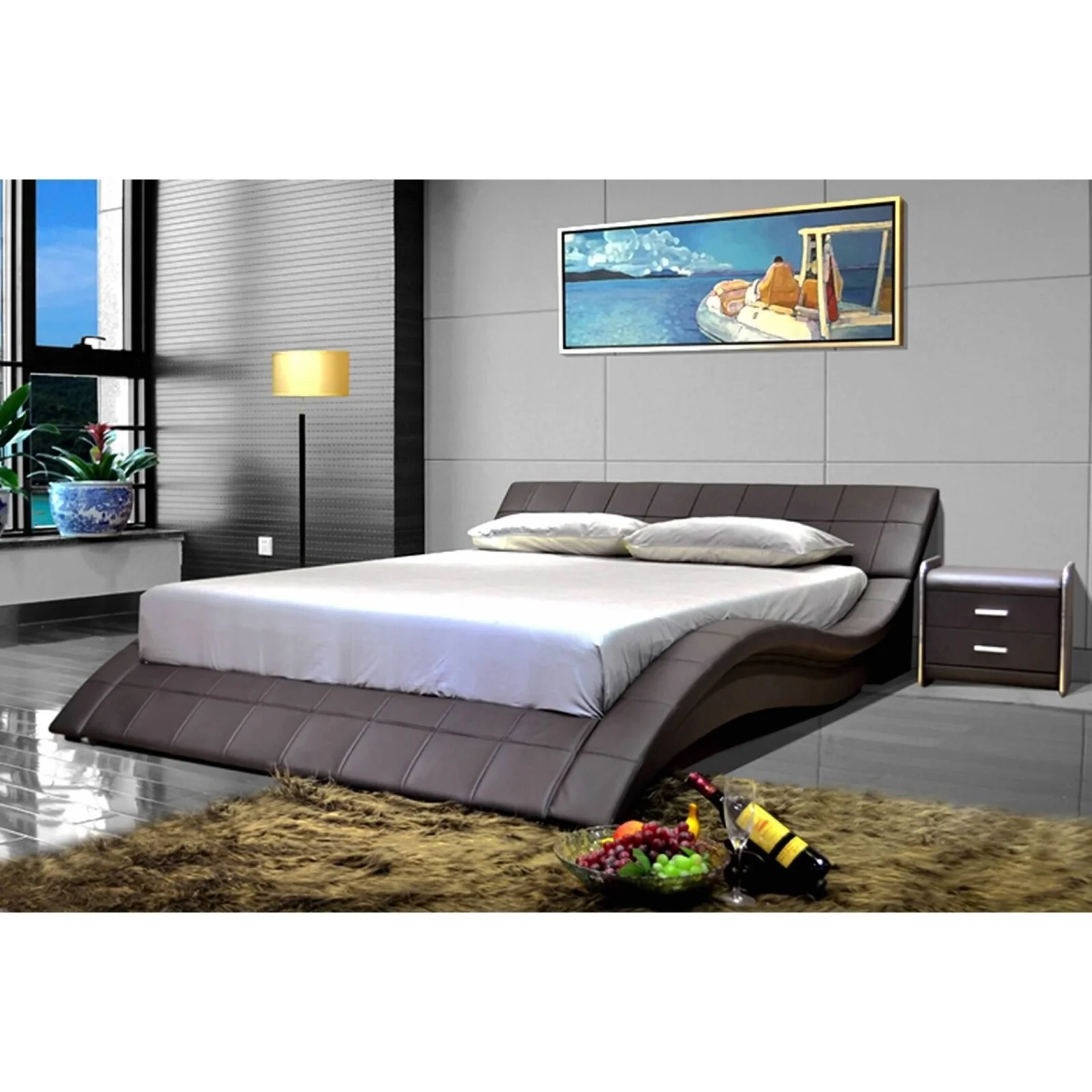 Greatime B1041-1 Wave-like Shape Upholstered Modern Platform Bed, Queen, Dark Brown