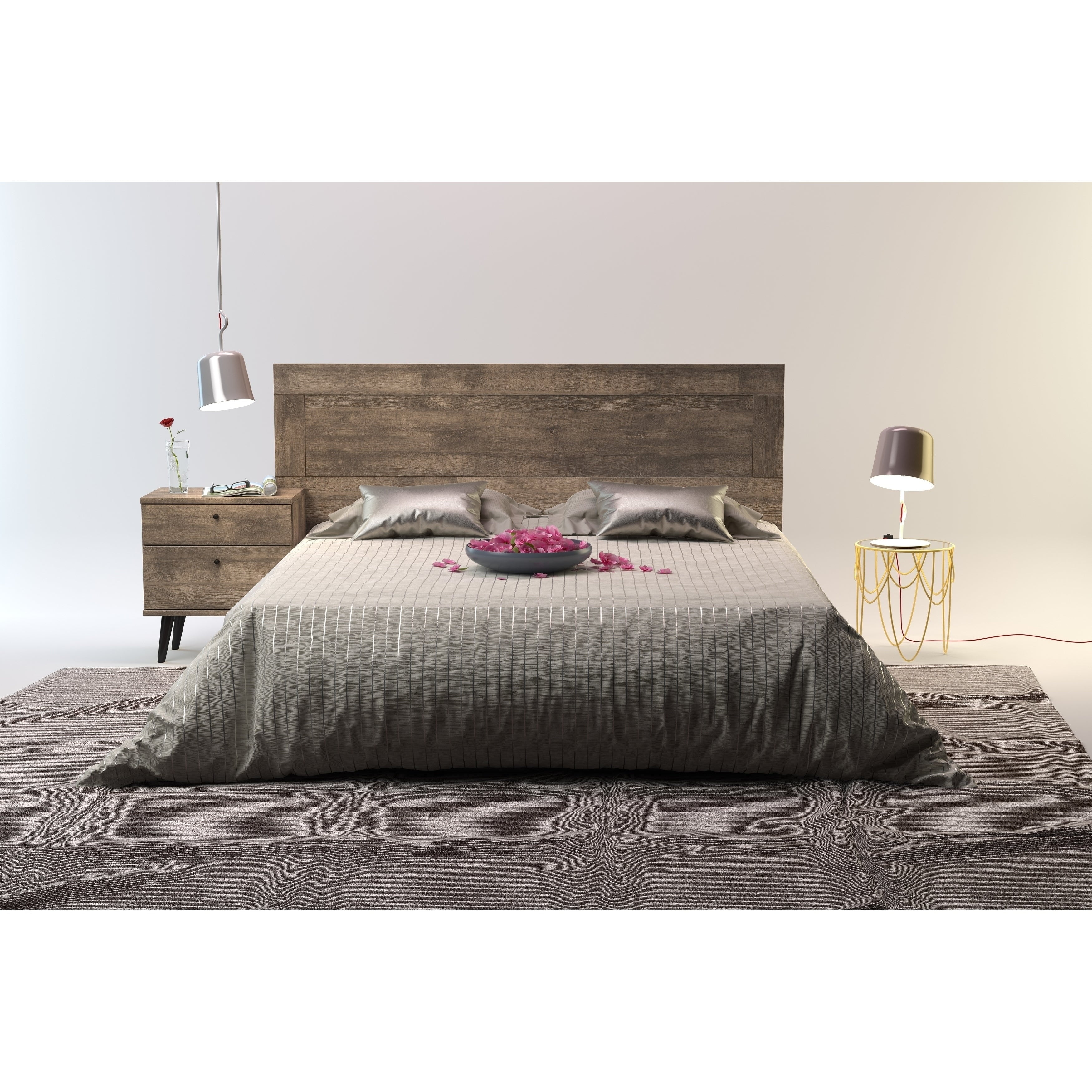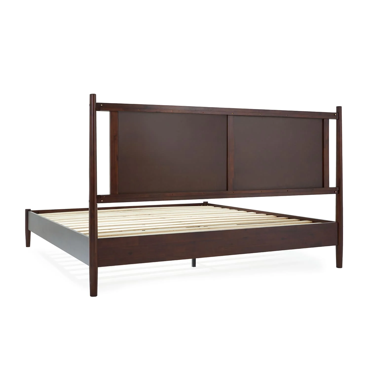 BME Selena 43" King Bed Frame, Handcrafted Paper Cord Headboard, Mid-Century, Solid Wood, Choco