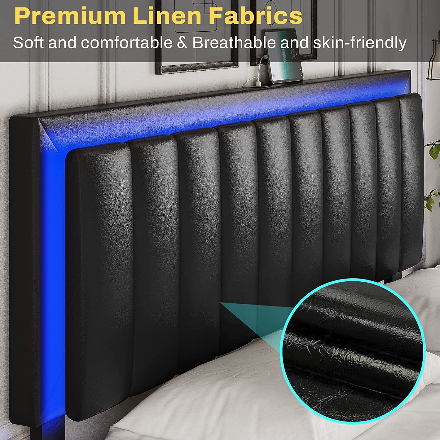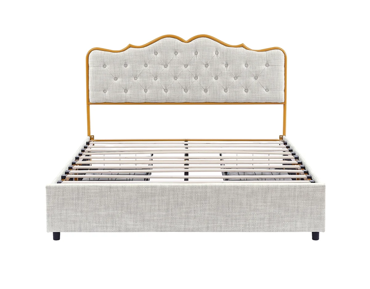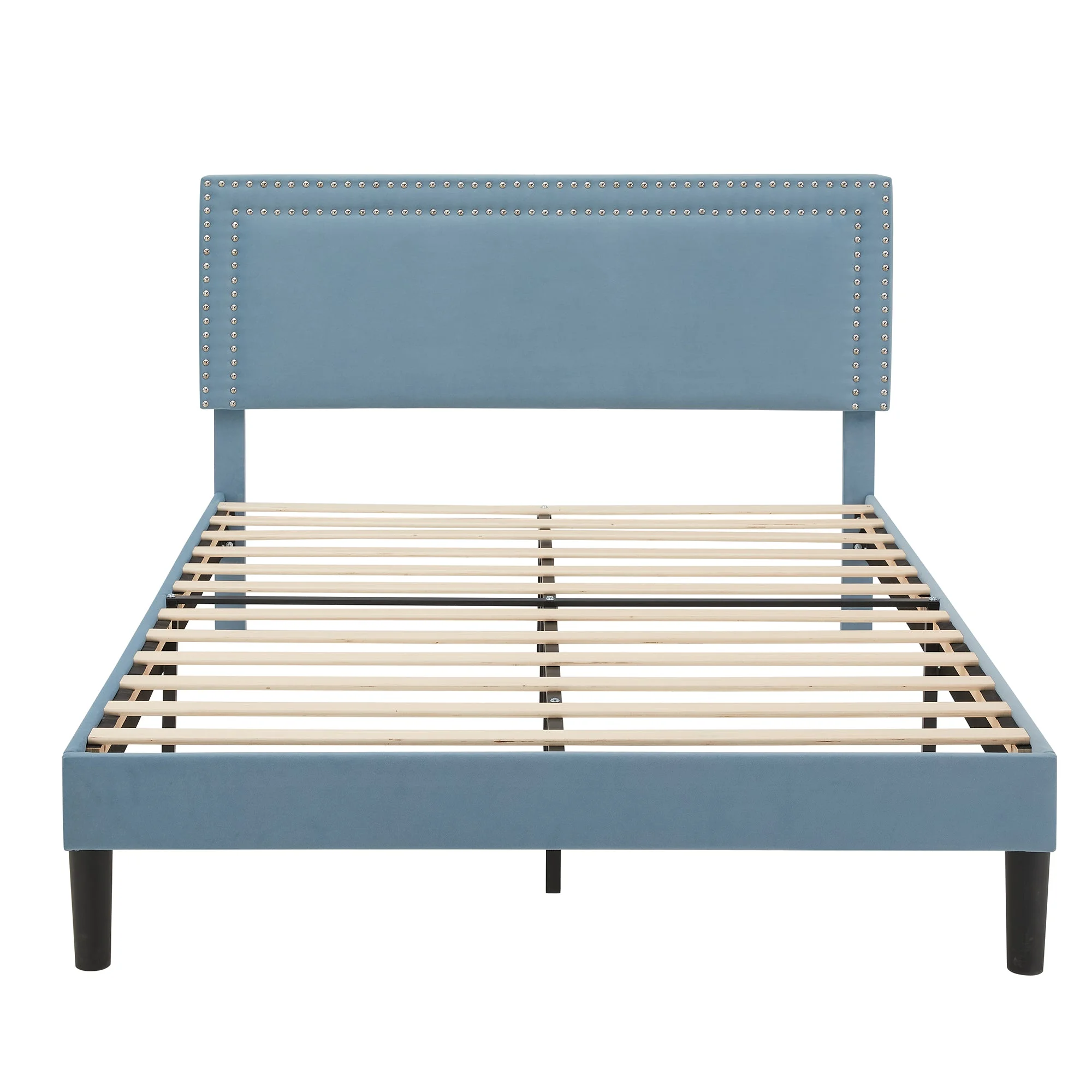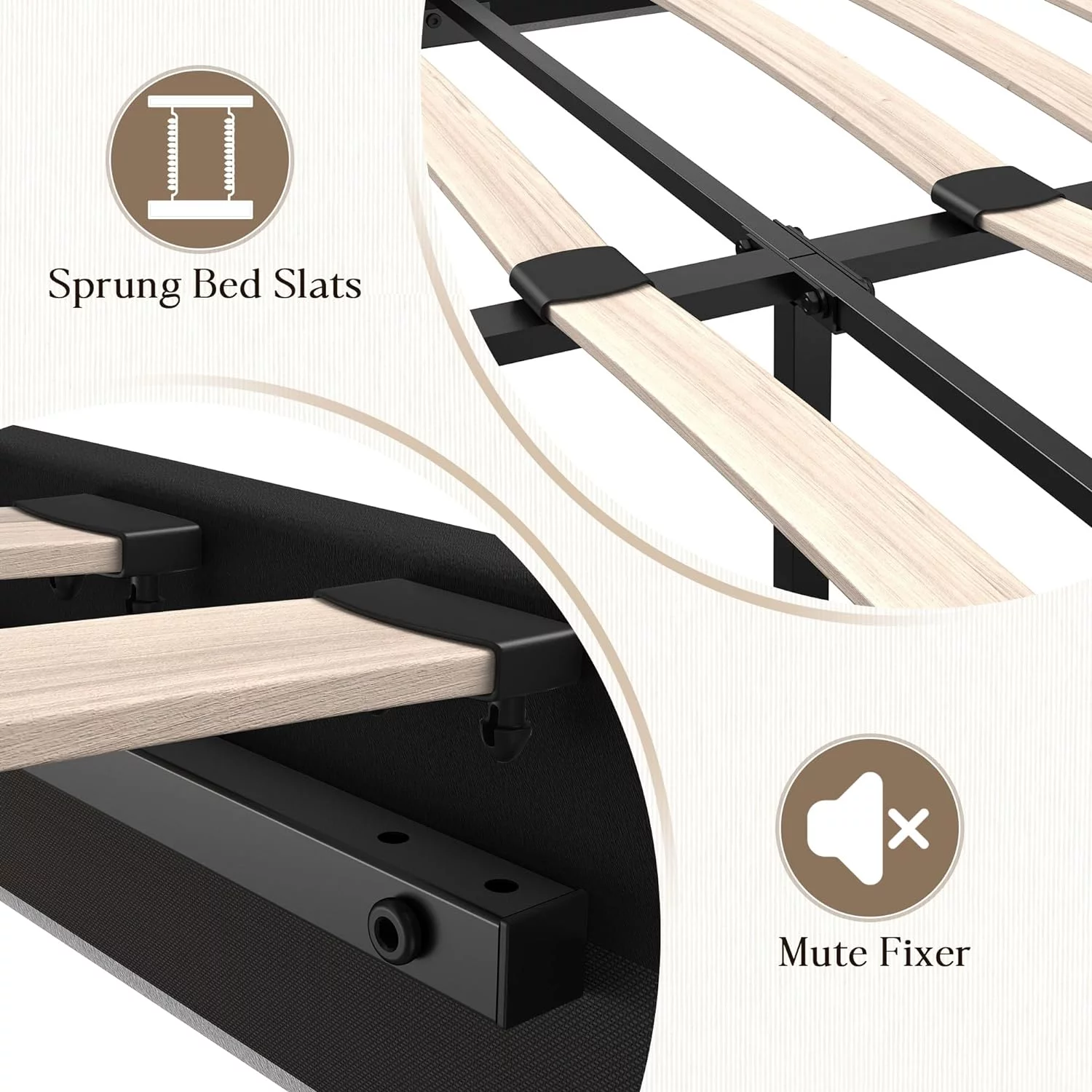 Queen Size Bed Modern Upholstered Platform Bed Frame with Headboard for Bedroom