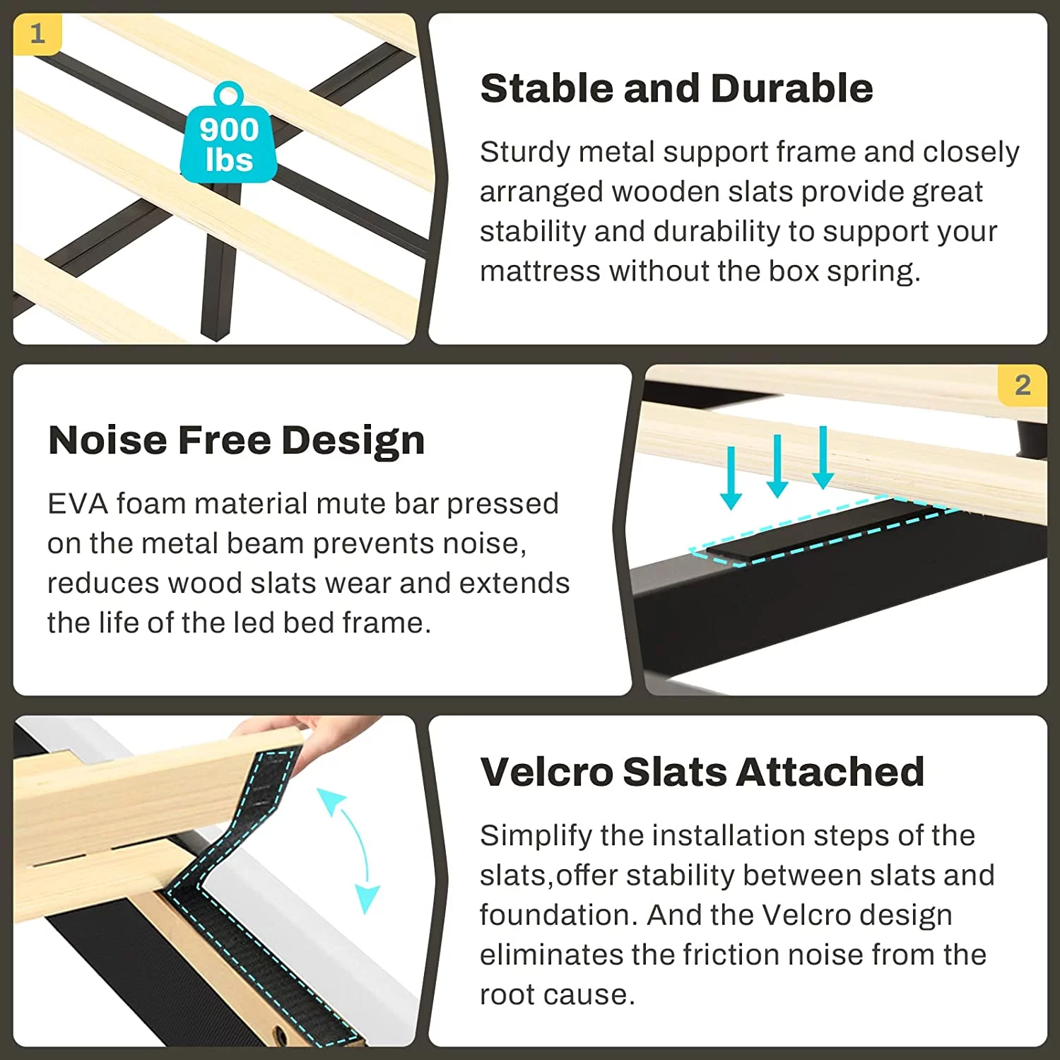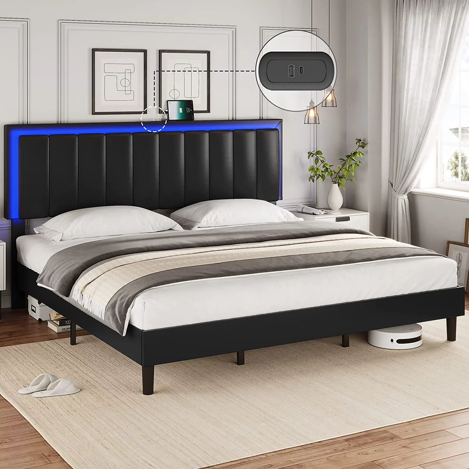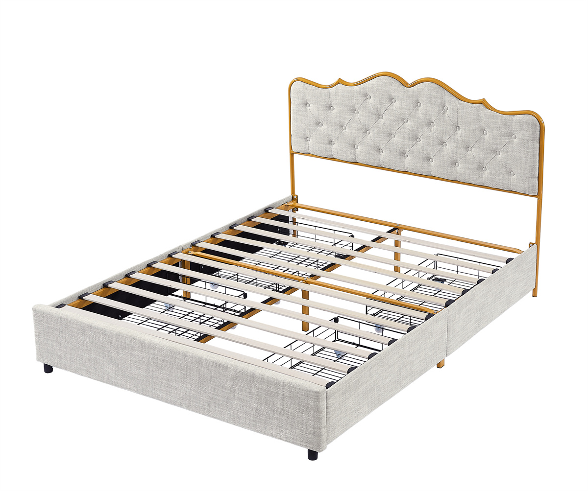 Queen Size Bed Modern Upholstered Platform Bed Frame with Headboard for Bedroom