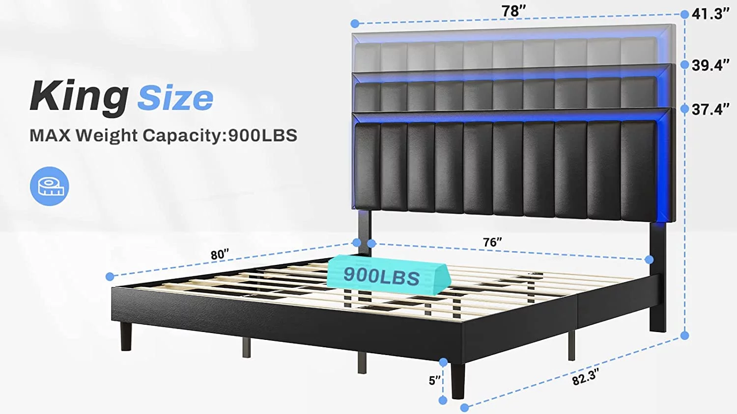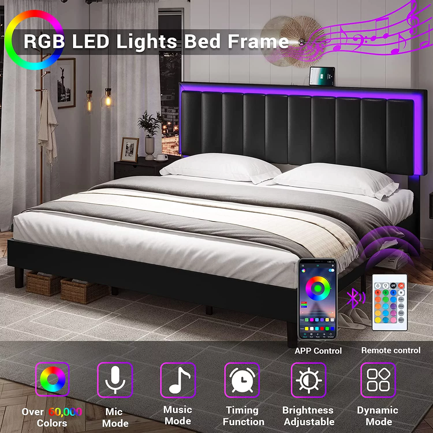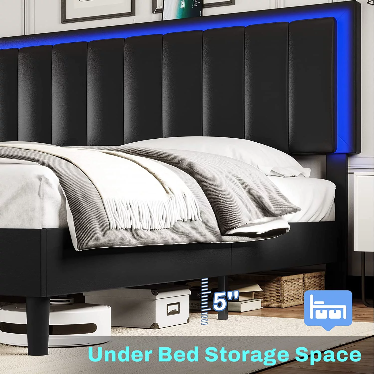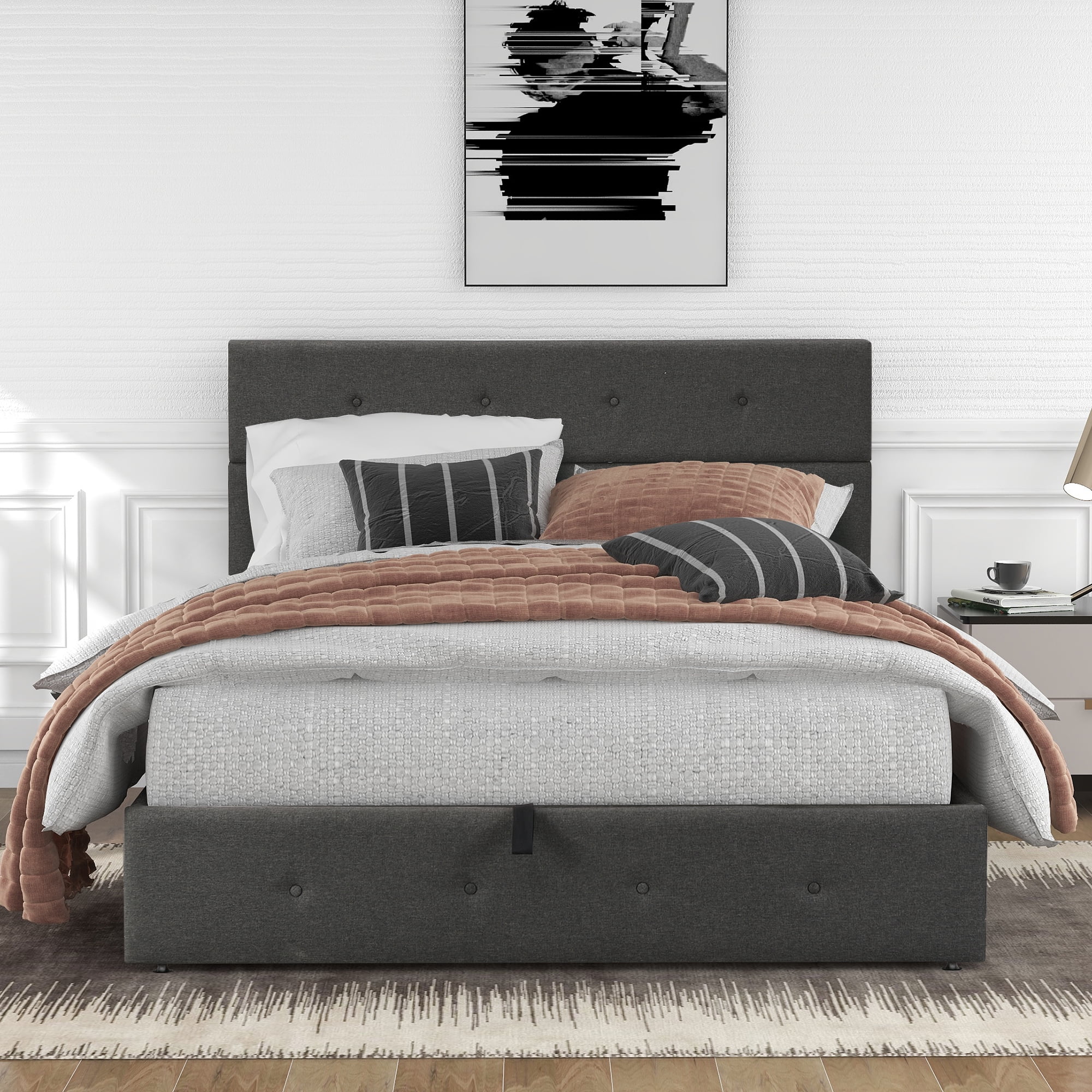 Queen Size Bed Modern Upholstered Platform Bed Frame with Headboard for Bedroom