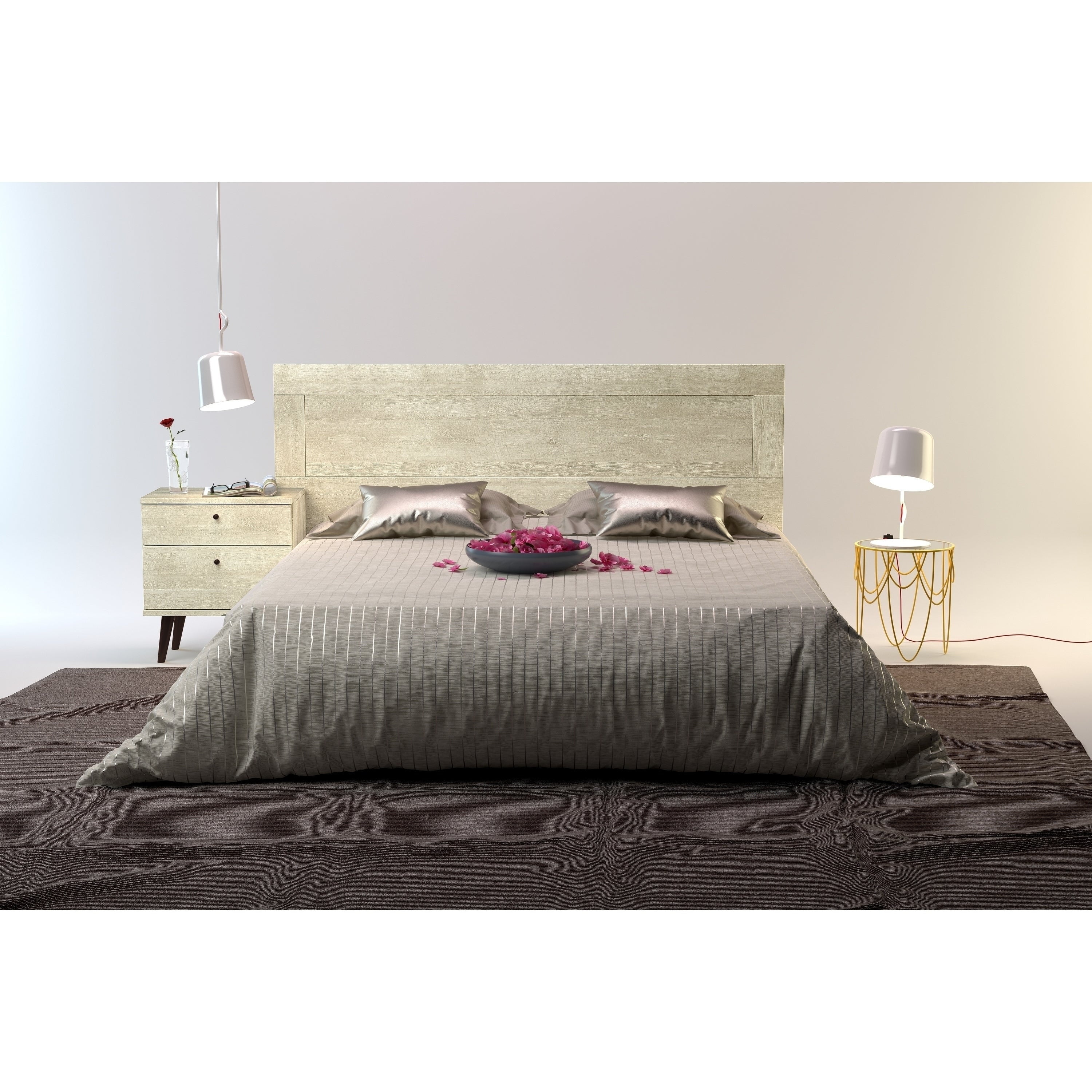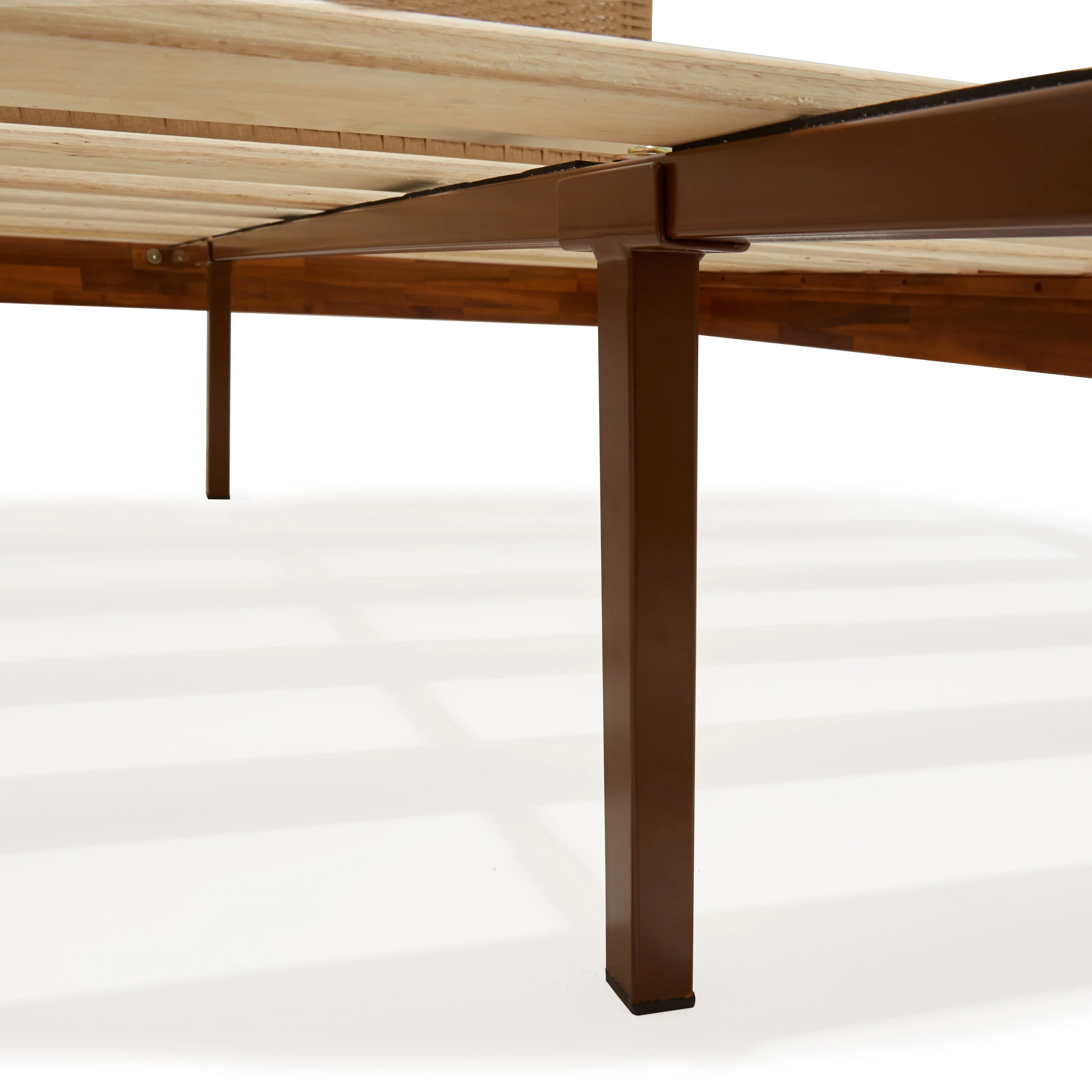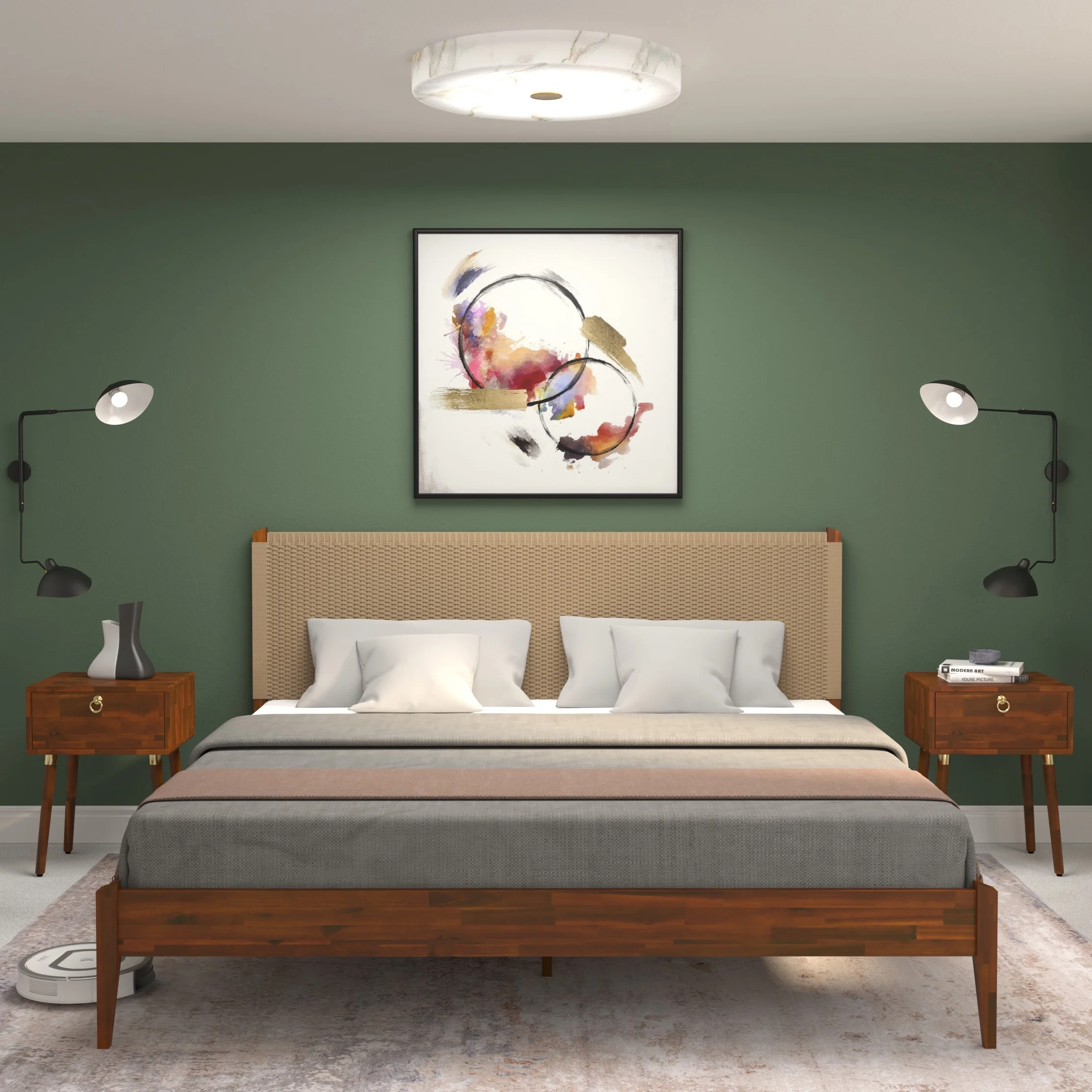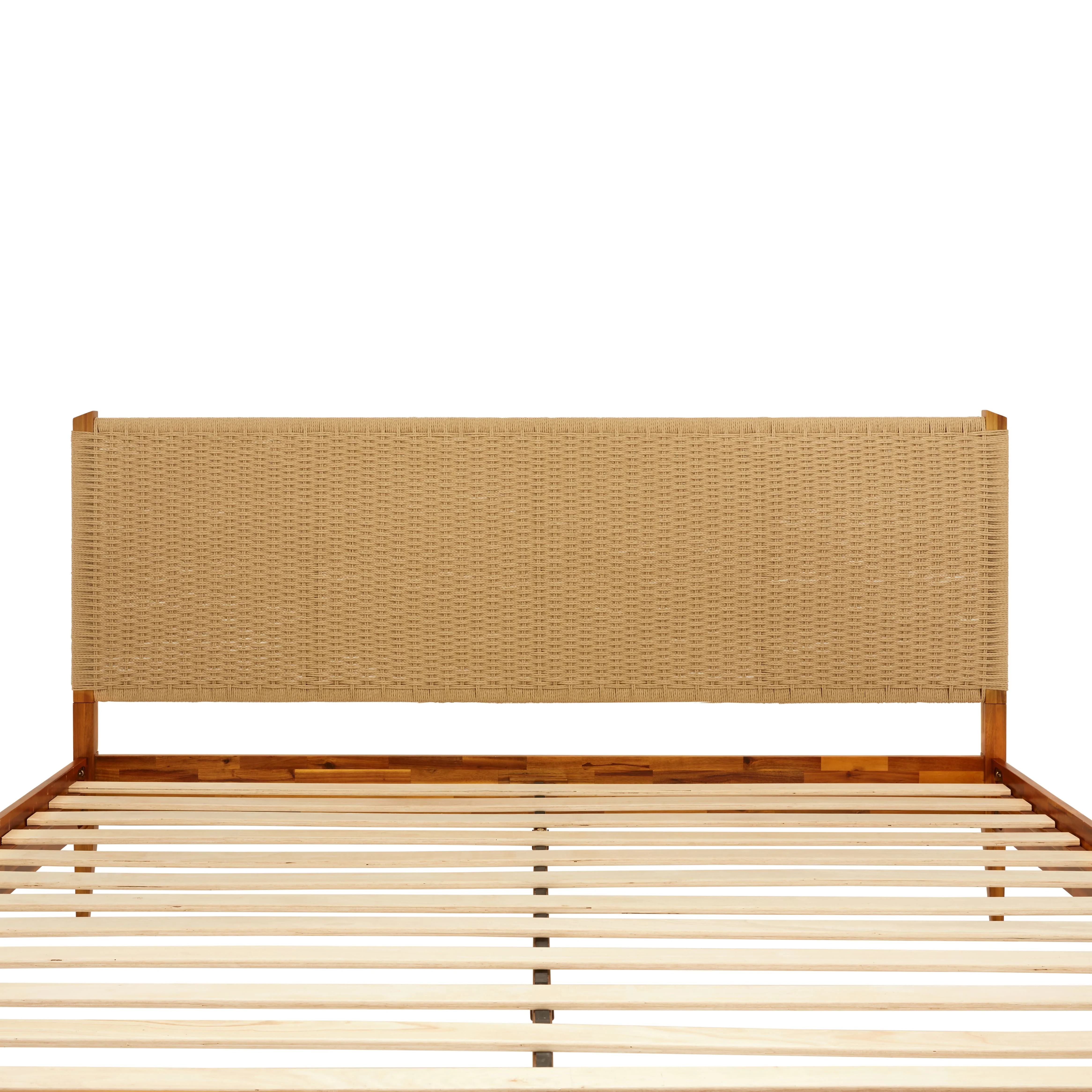 BME Selena 43" King Bed Frame, Handcrafted Paper Cord Headboard, Mid-Century, Solid Wood, Caramel