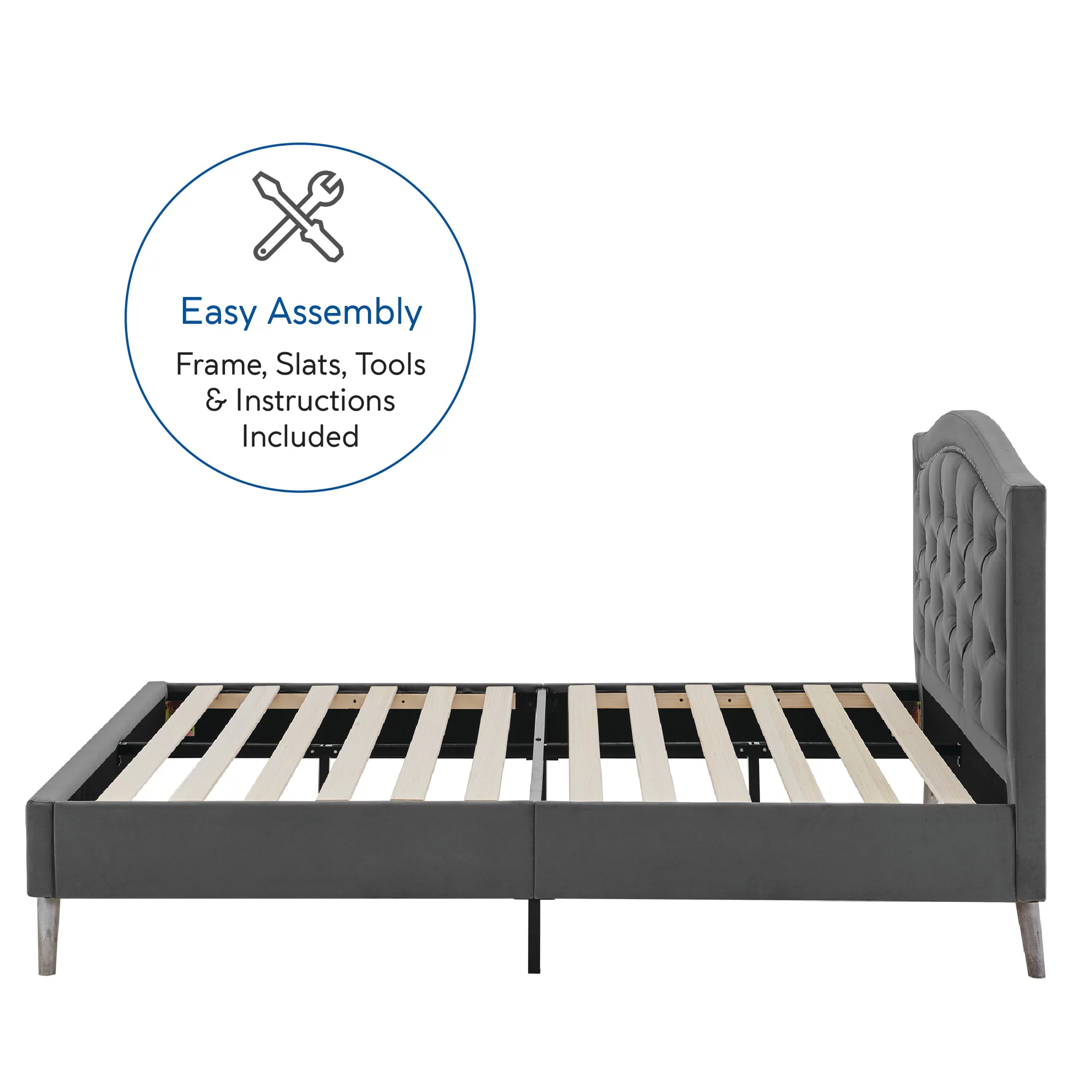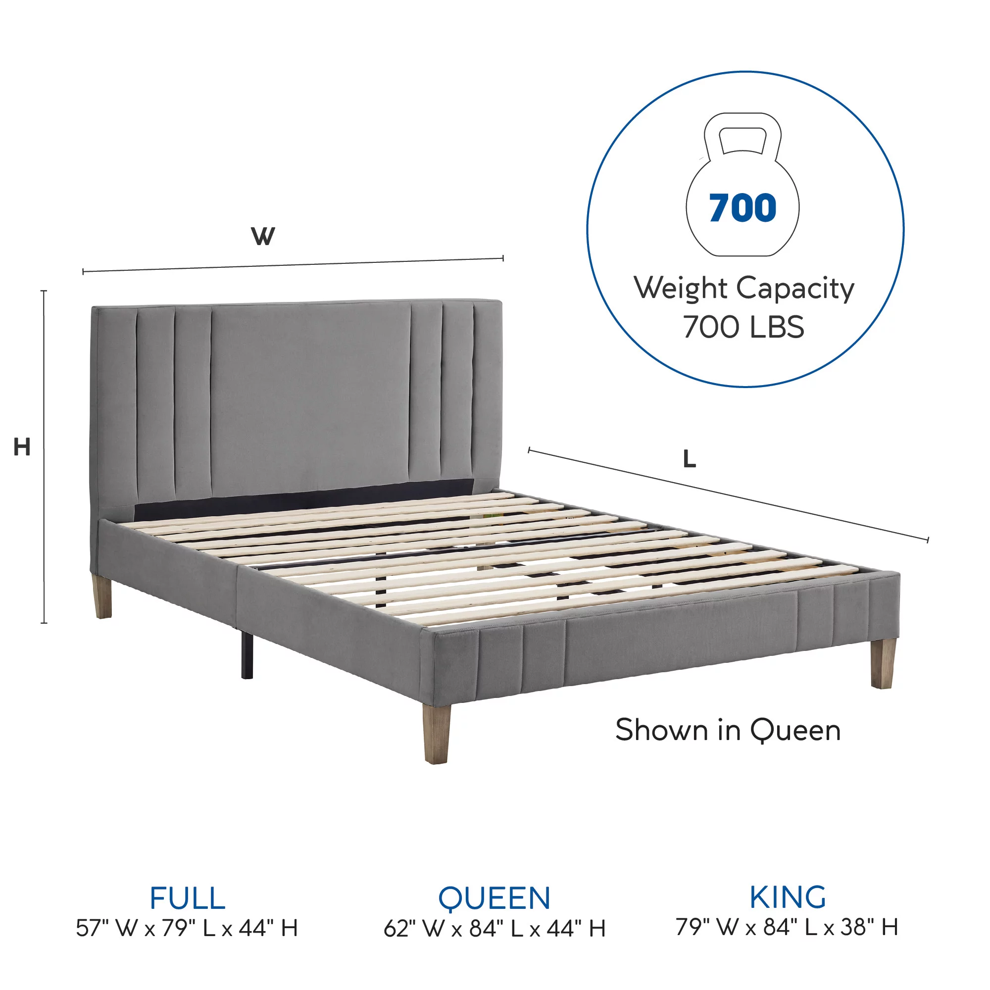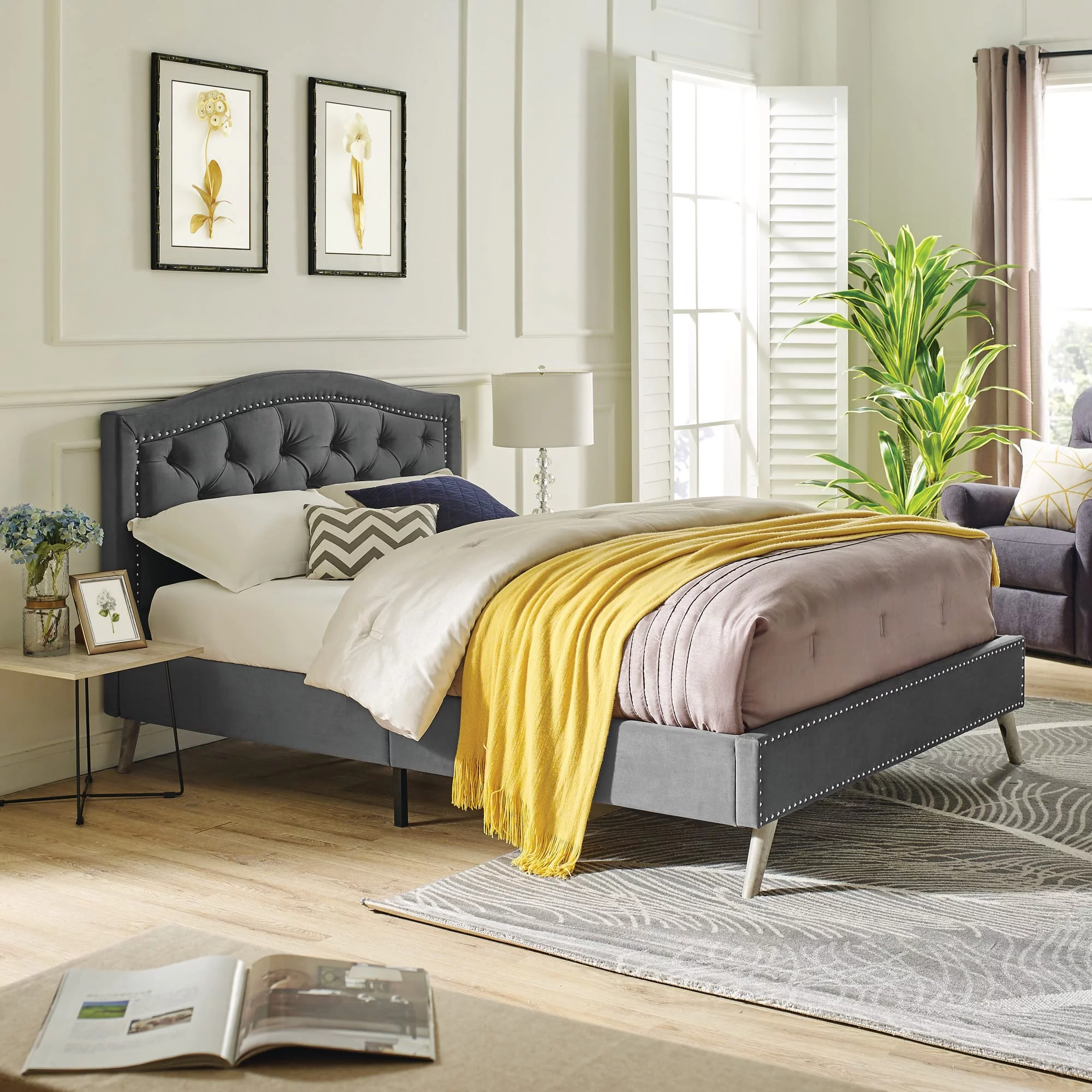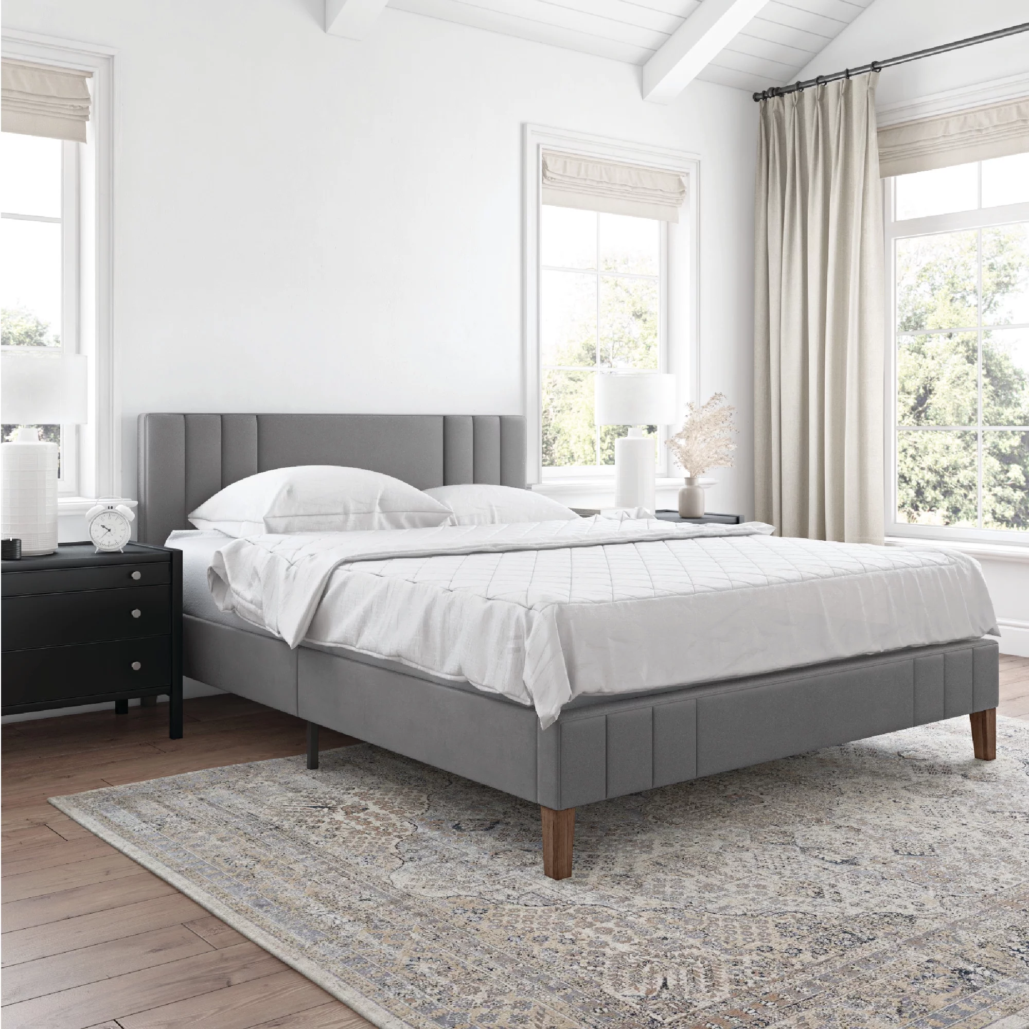 Modern Essentials Barclay Upholstered Tufted Platform Bed, Full, Light Grey
