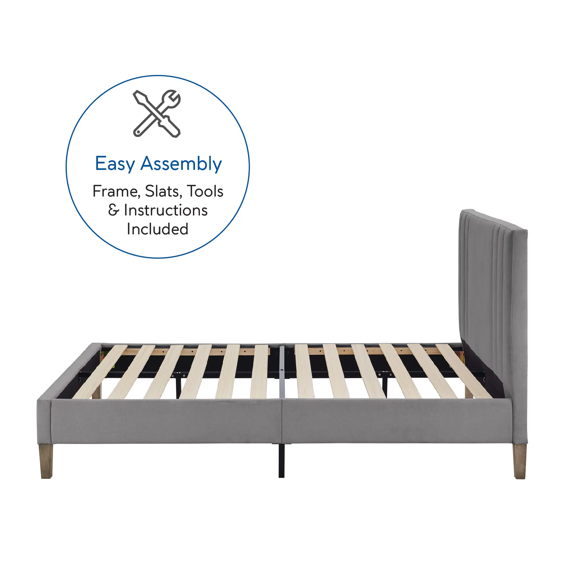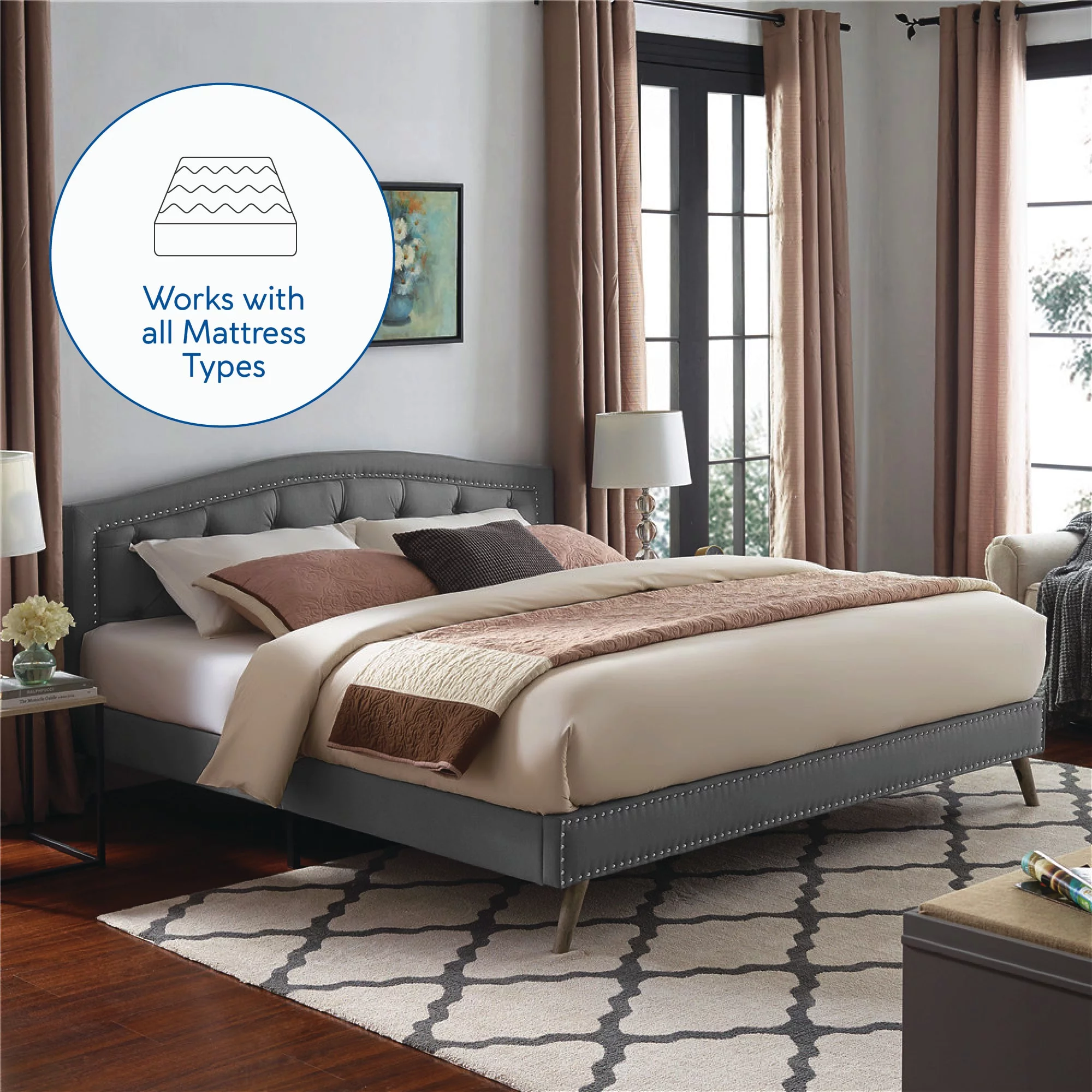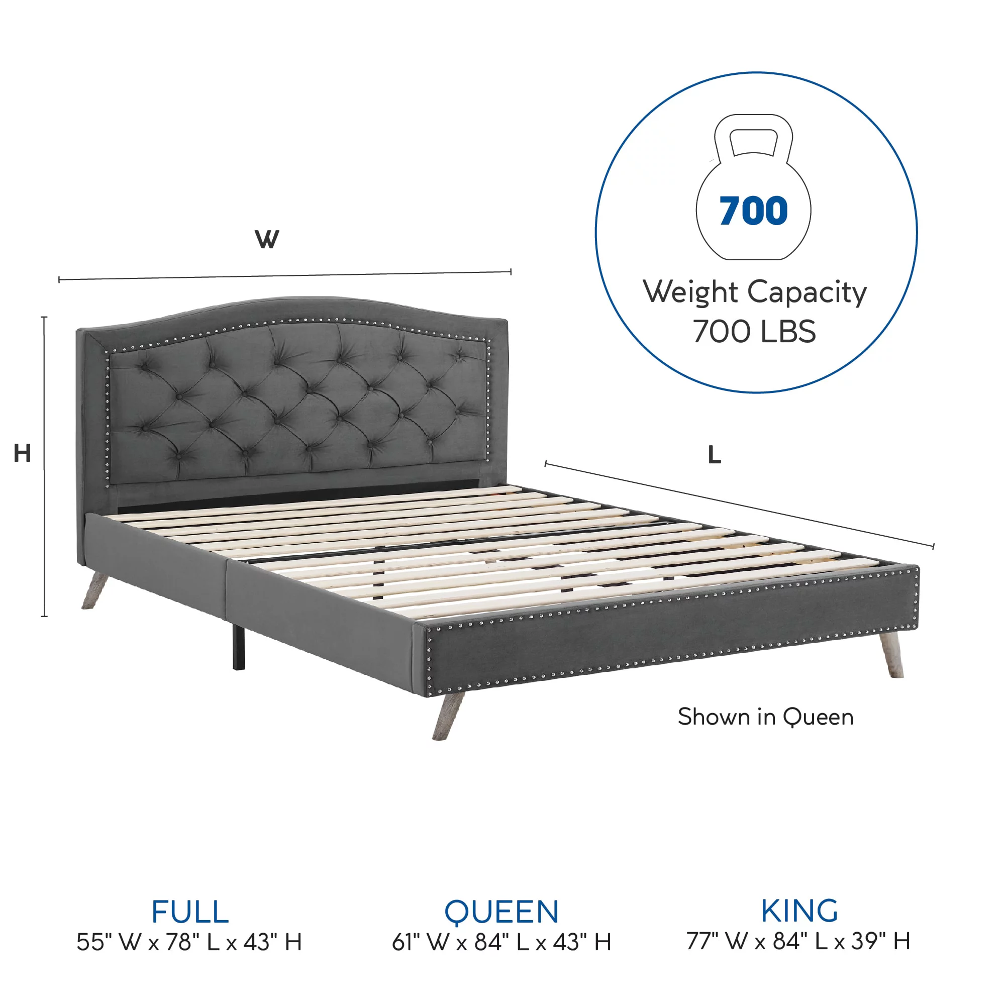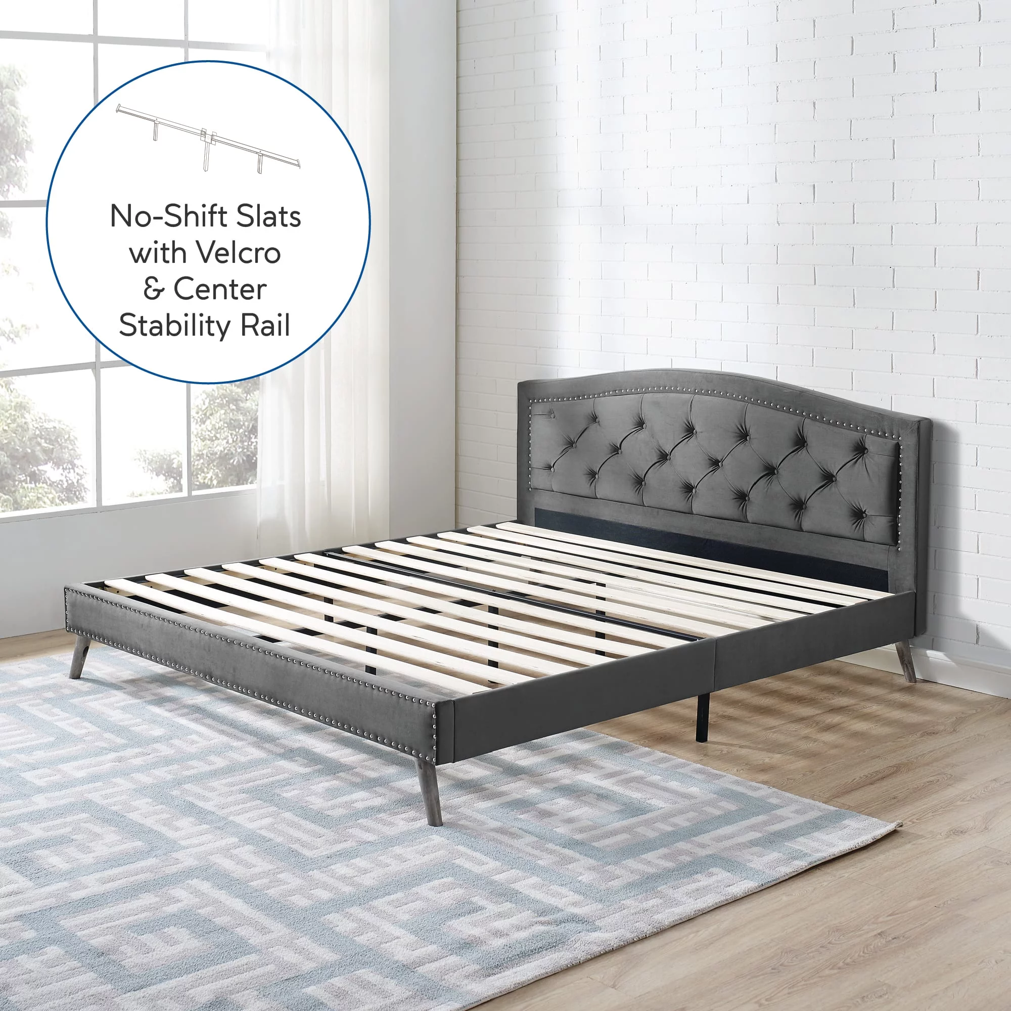 Modern Essentials Barclay Upholstered Tufted Platform Bed, Full, Light Grey