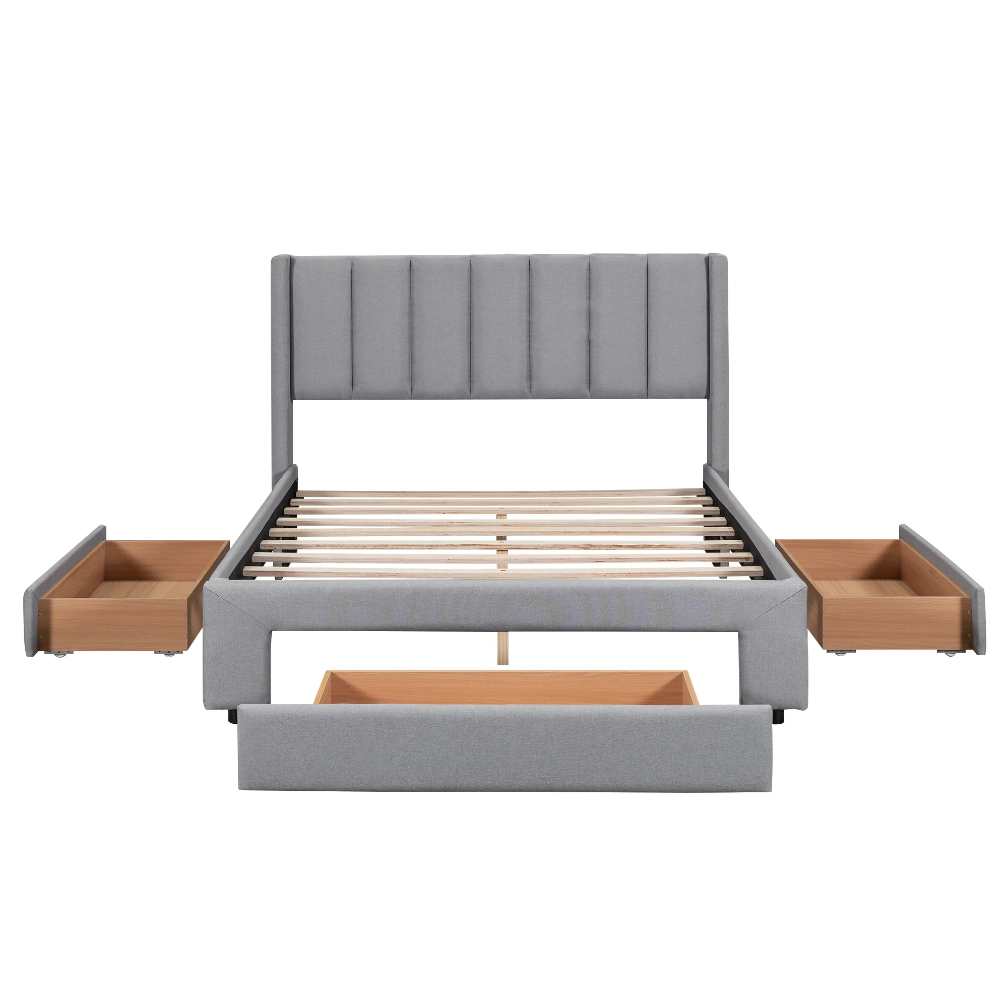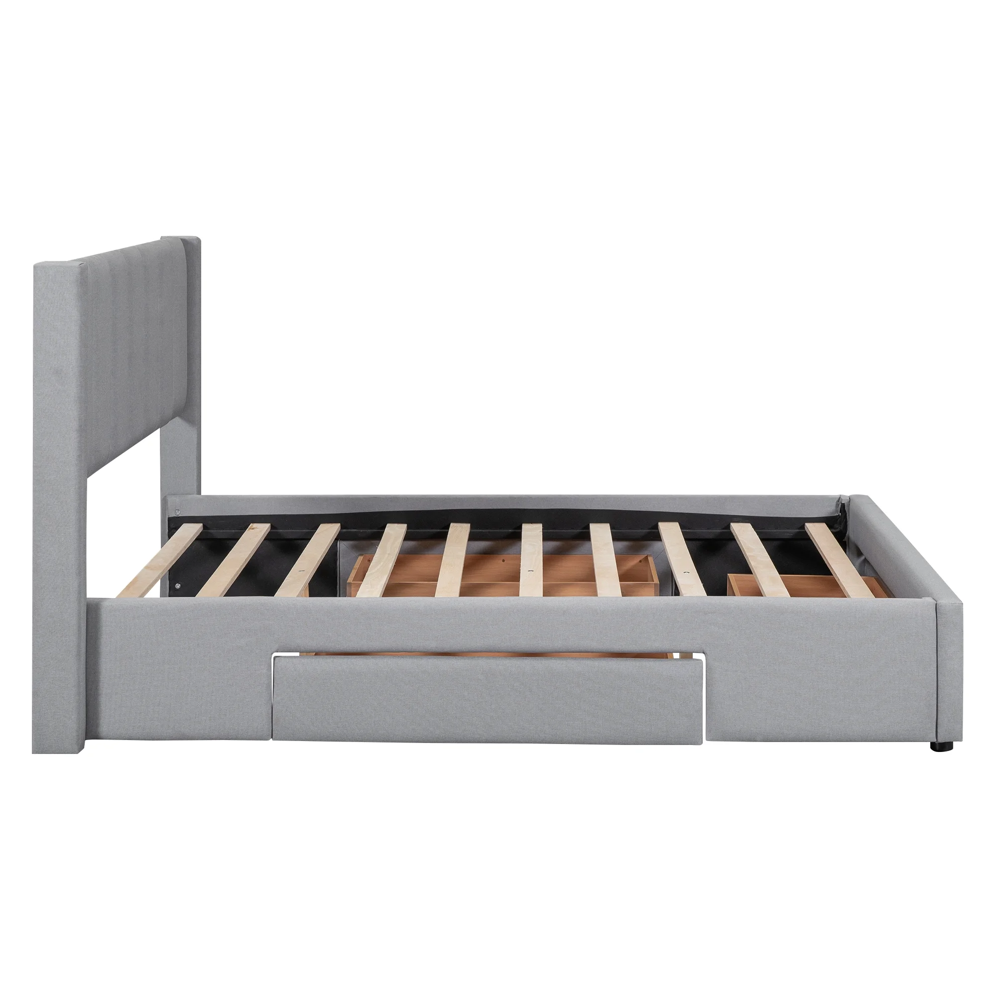EUROCO Upholstered Full Bed, Platfrom Bed with 3 Storage Drawers, Nox Box Spring Needed, Gray
