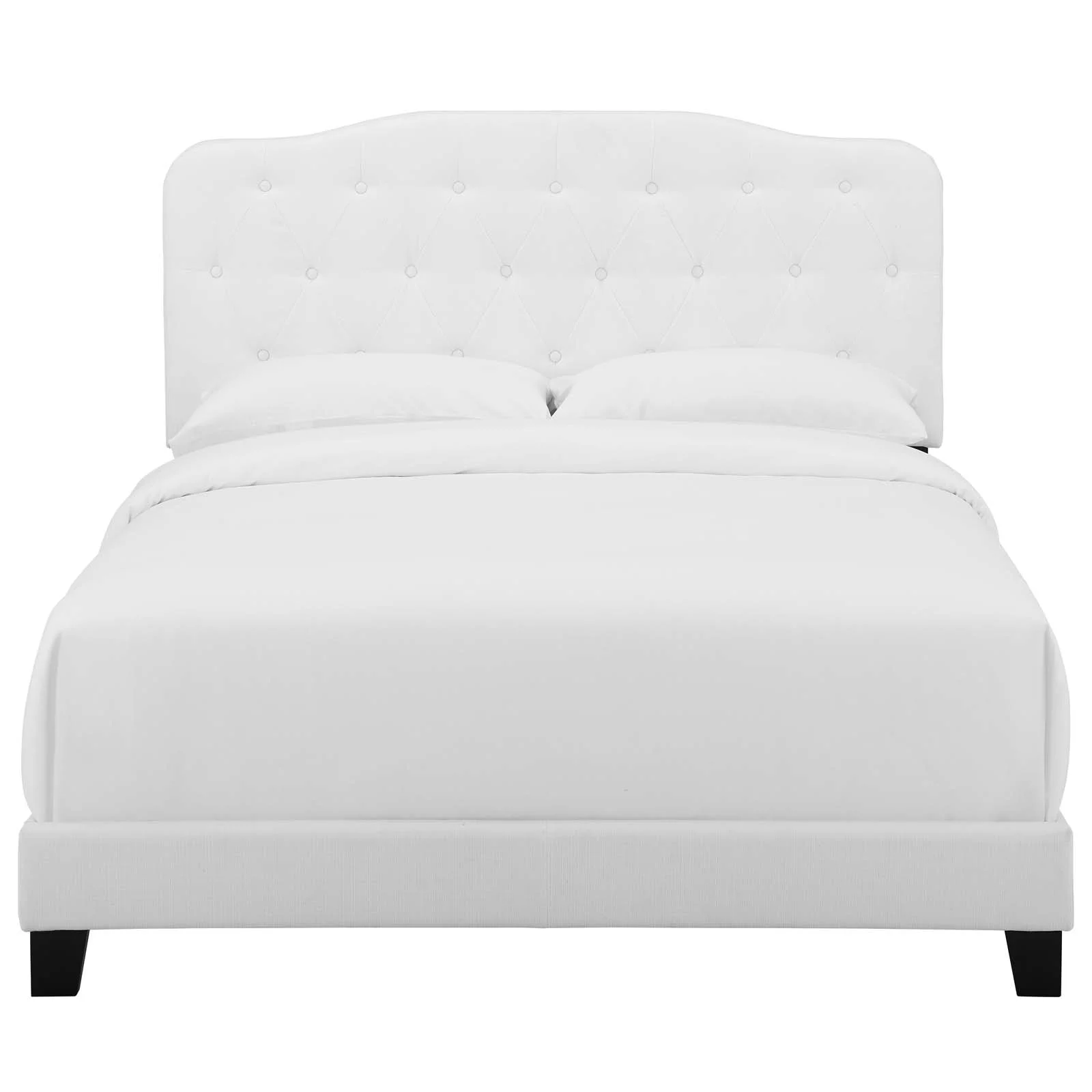 Modern Contemporary Urban Design Bedroom Queen Size Platform Bed Frame, Fabric, White