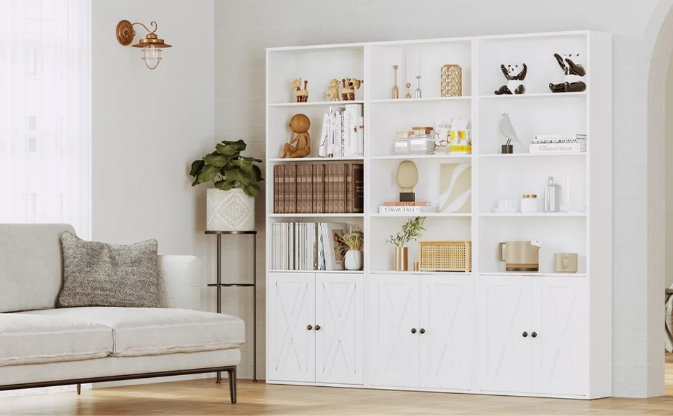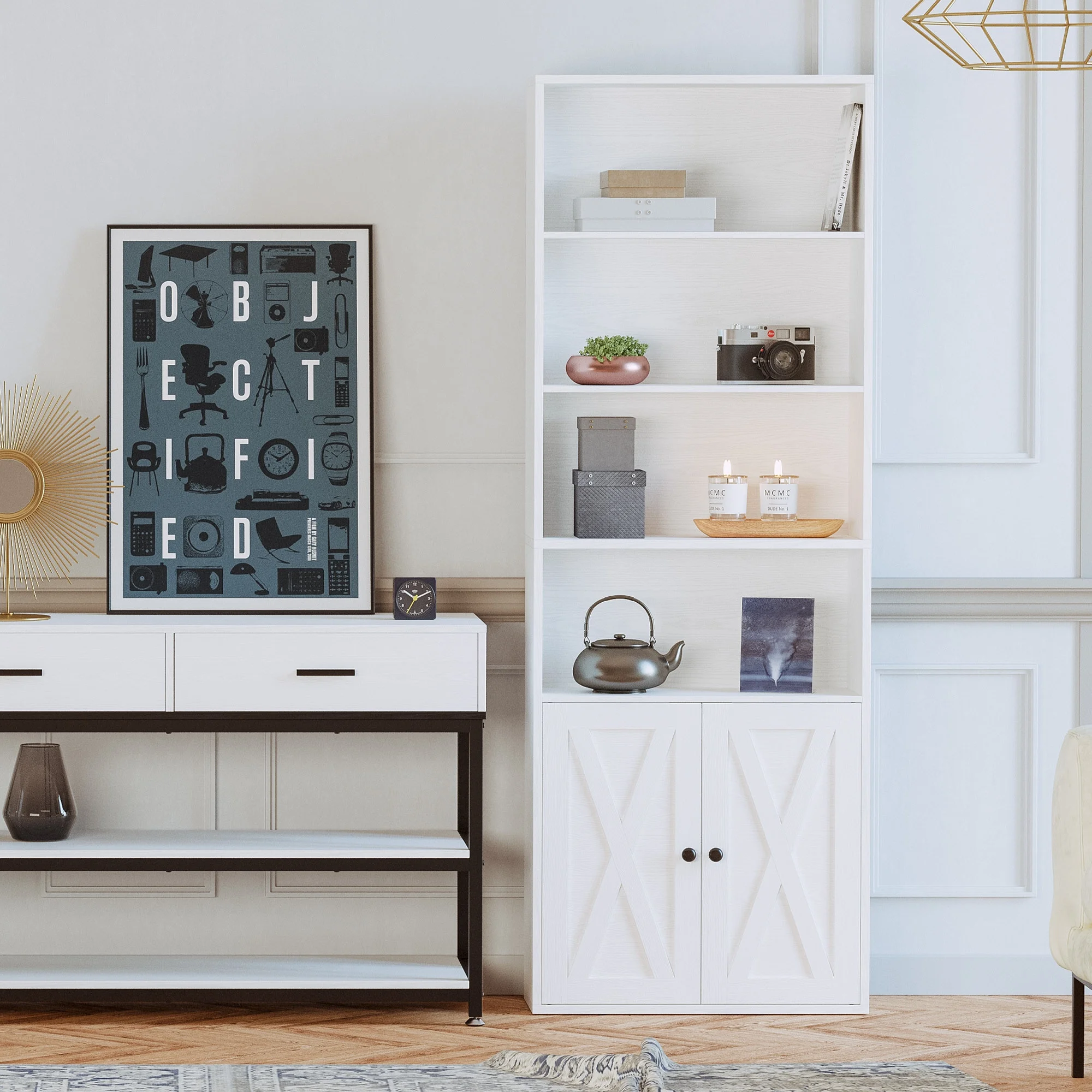 Industrial Bookshelves with Doors: 6 Shelf Display Storage, 70" TallWhite