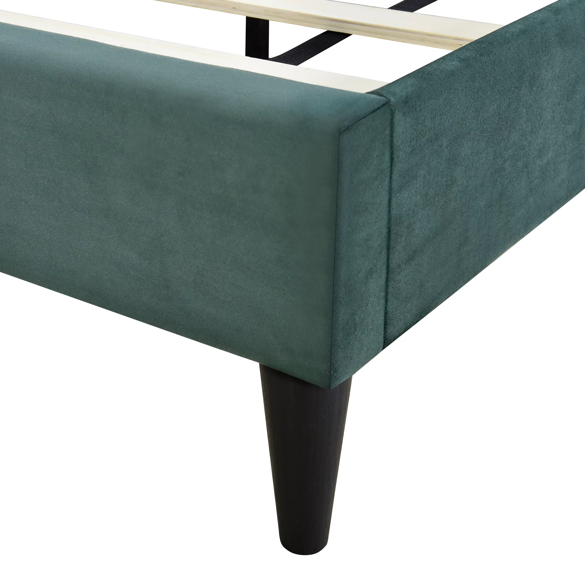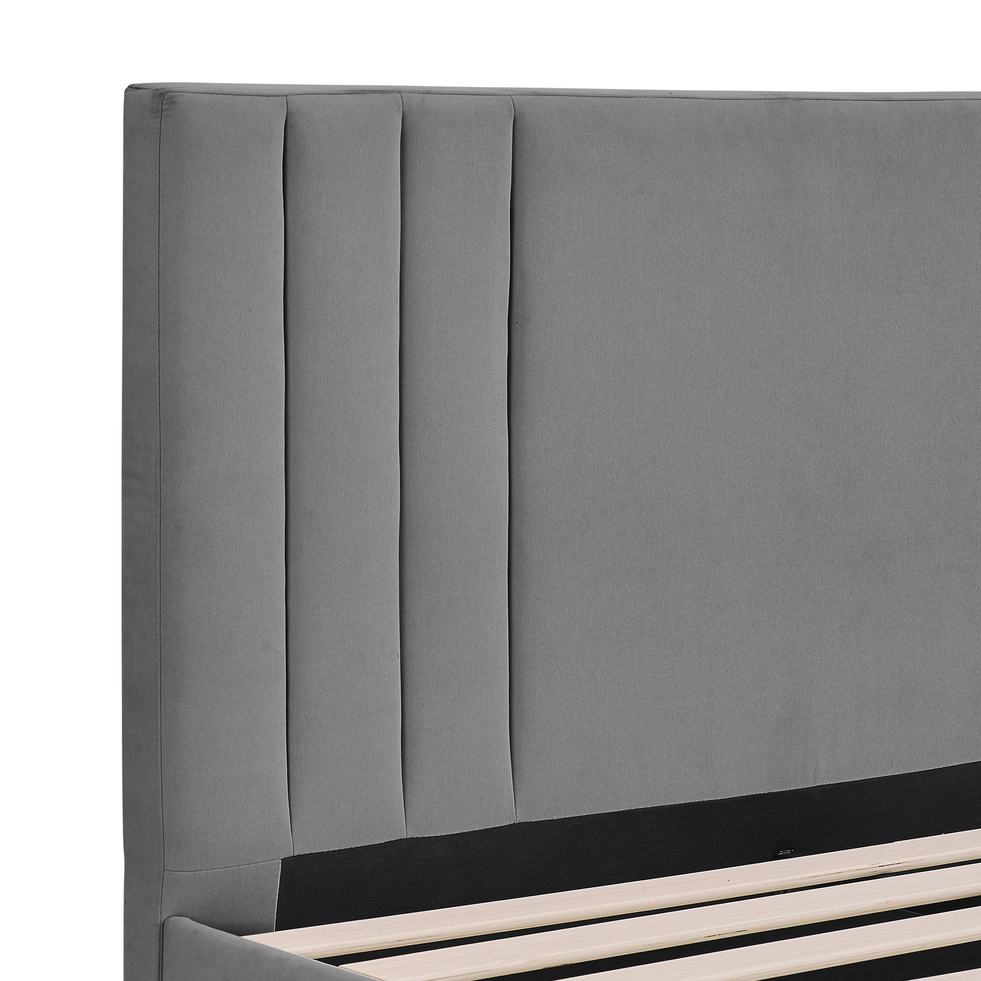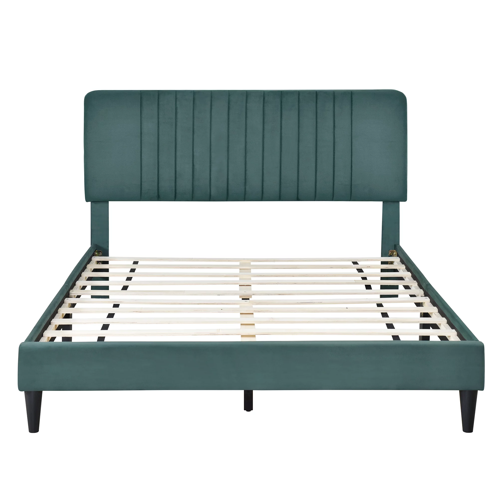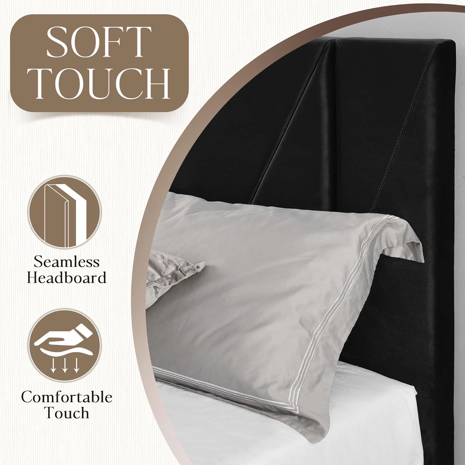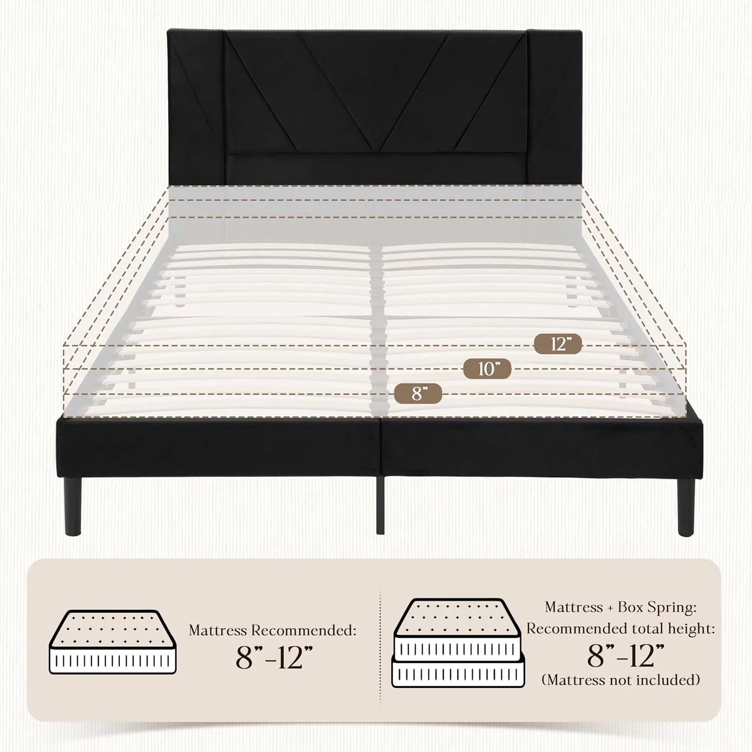 Flolinda Queen Size Velvet Upholstered Platform Bed Frame with Vertical Headboard,Mattress Foundation, Black