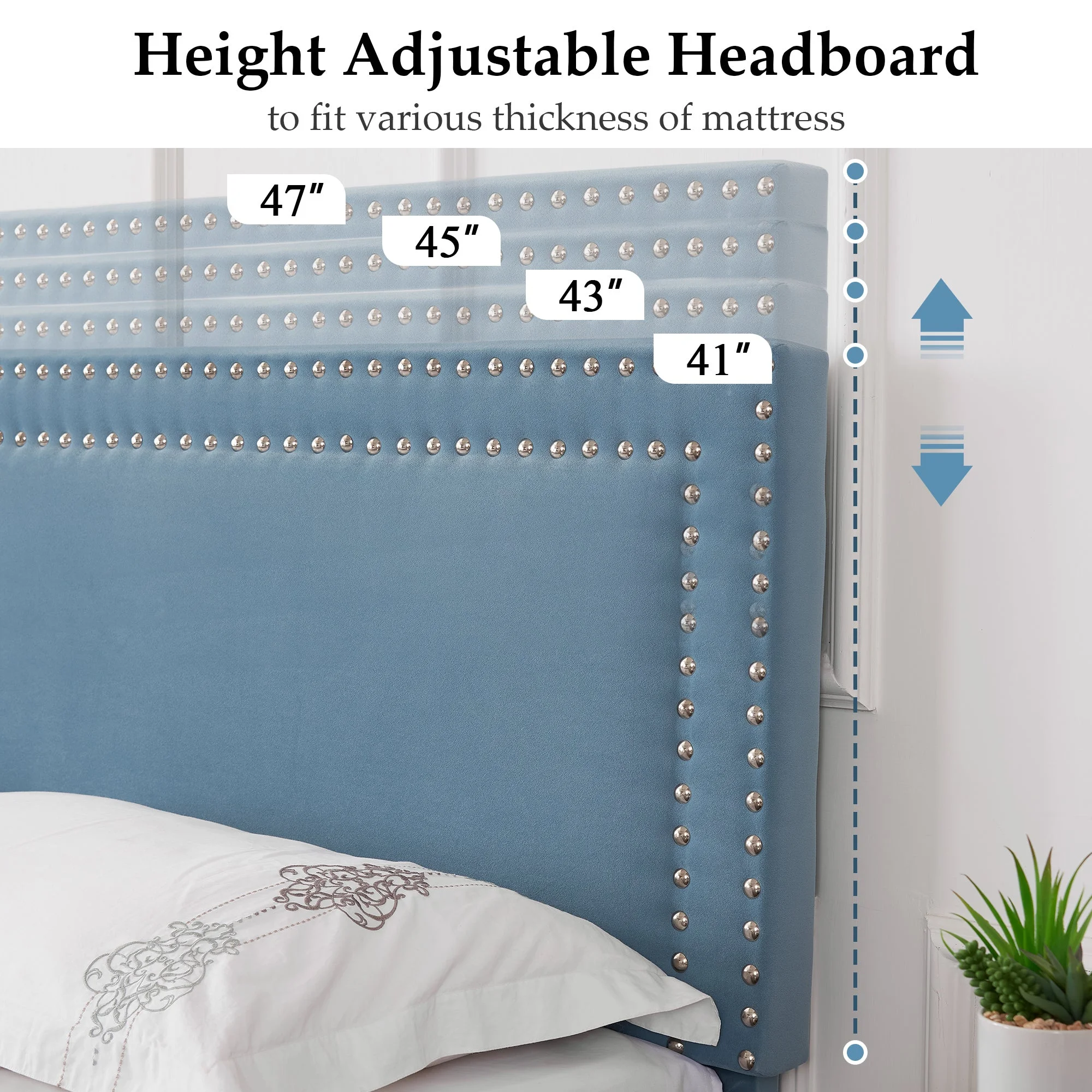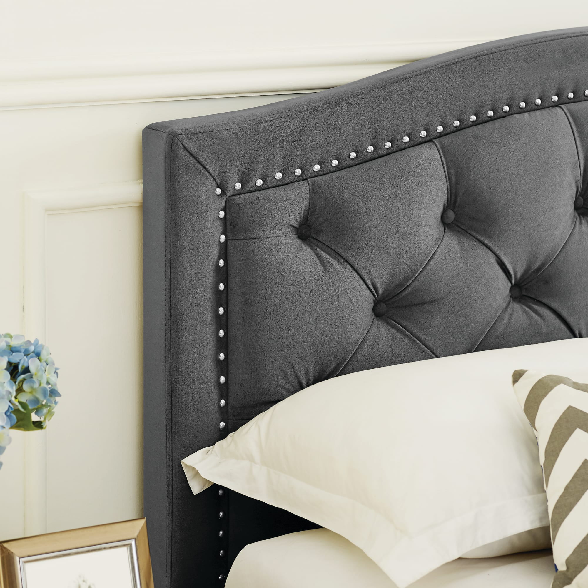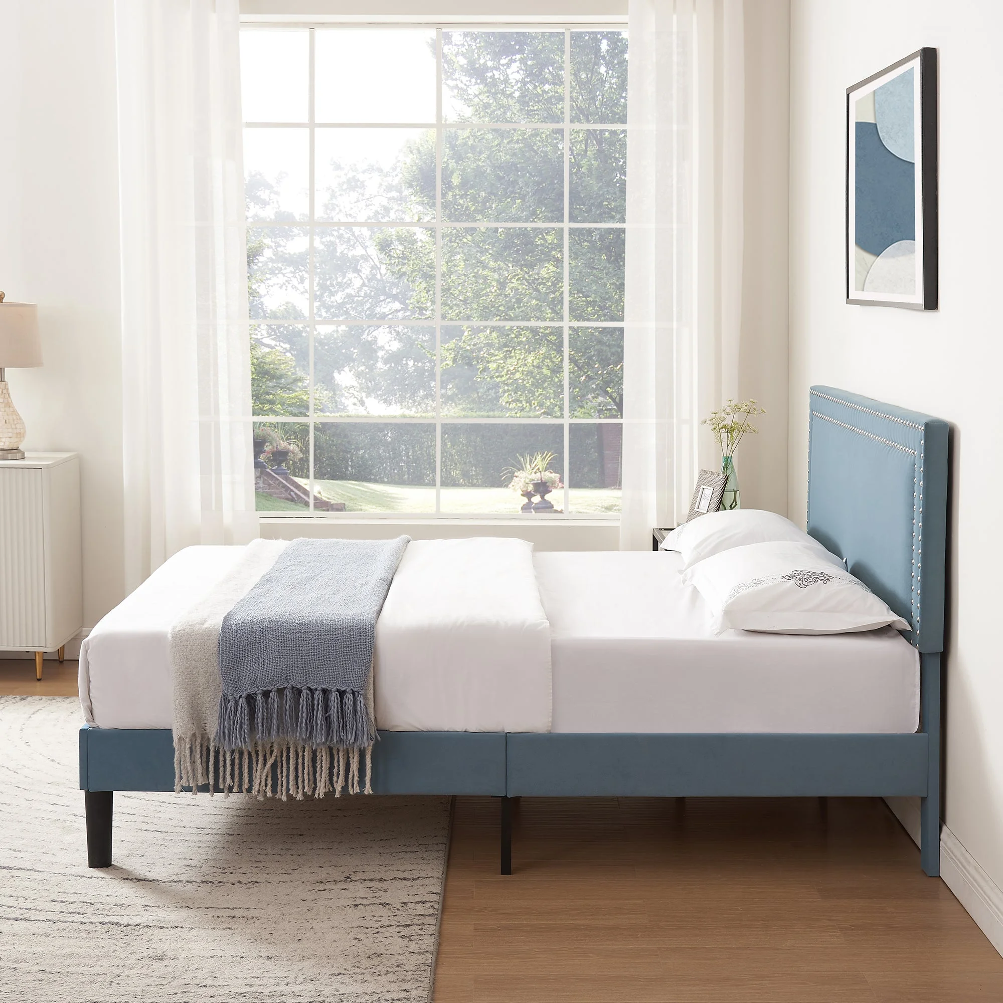 Hombay Full Size Velvet Upholstered Platform Bed with Headboard, Modern Wood Bed Frame Slatted Base No Box Spring Needed
