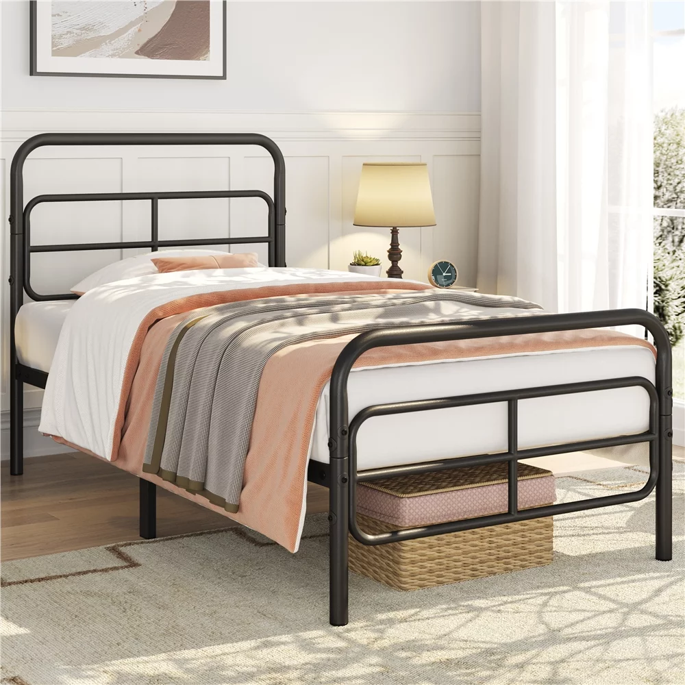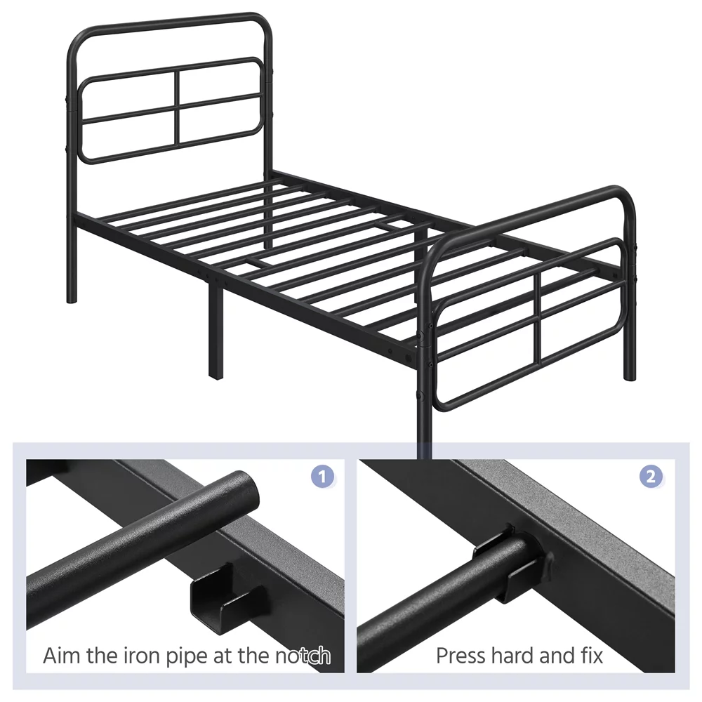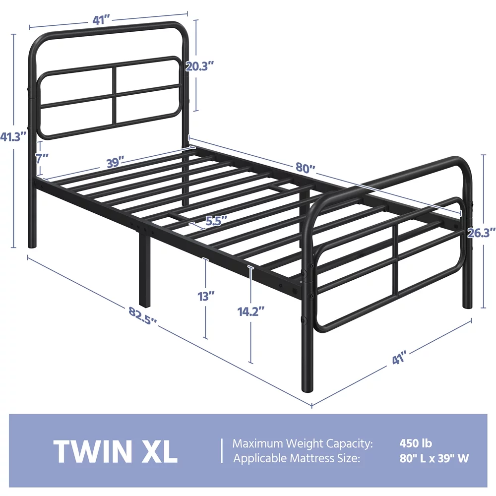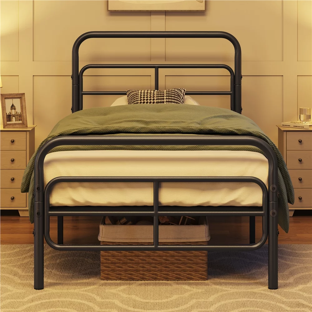 Yaheetech Modern Metal Platform Bed with Geometric Patterned Headboard, Twin XL,Black