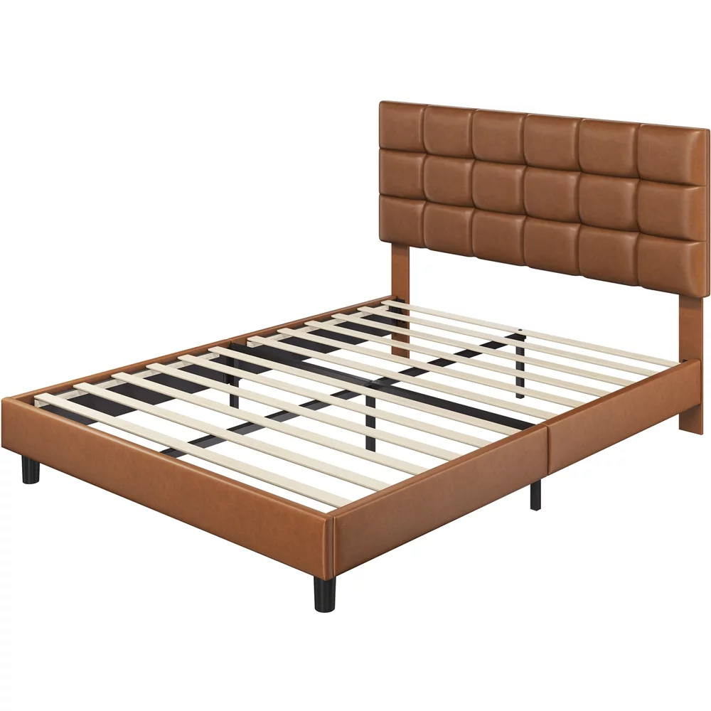 Yaheetech Modern Upholstered Platform Bed with Adjustable Tufted Headboard , Full Size, Amber Brown