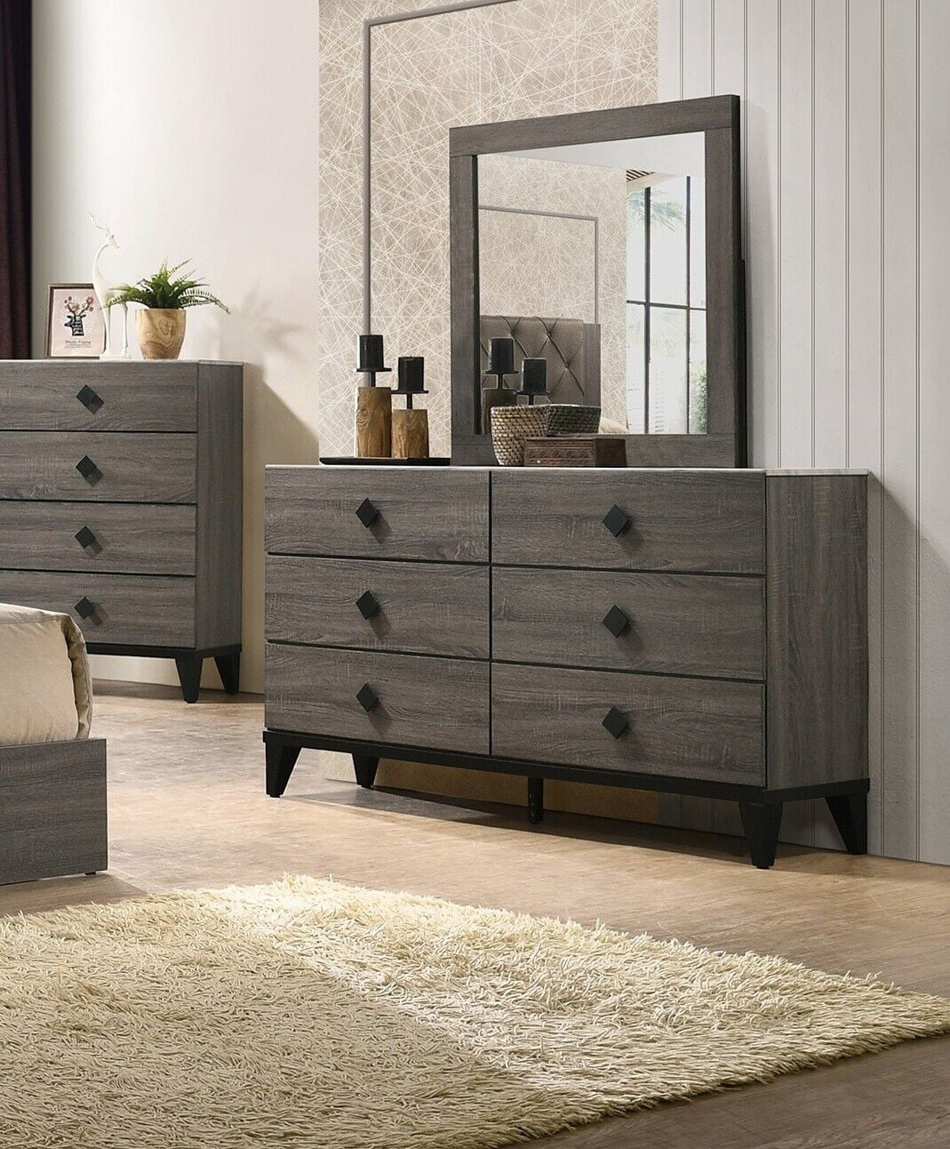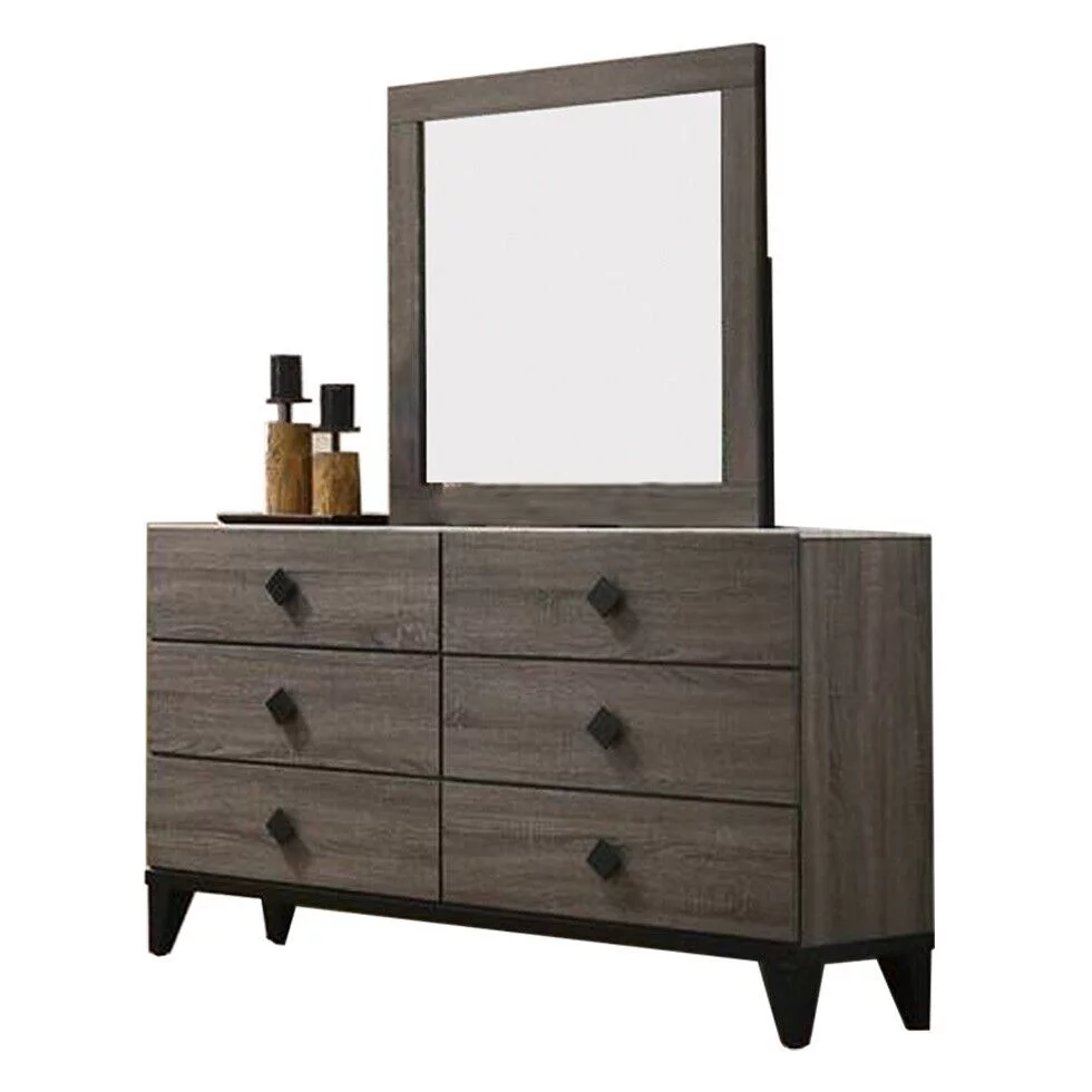 Transitonal Style Gray Solid wood 4pc Bedroom Set California King Size Bed Dresser Mirror Nightstand Master Bedroom Furniture