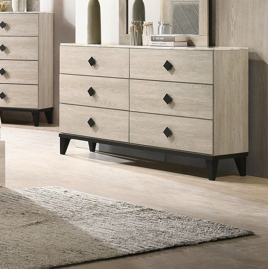 Champagne Finish 6pc Modern Bedroom Set California King Size Bed Two Nightstands Dresser Mirror Chest Traditional Design