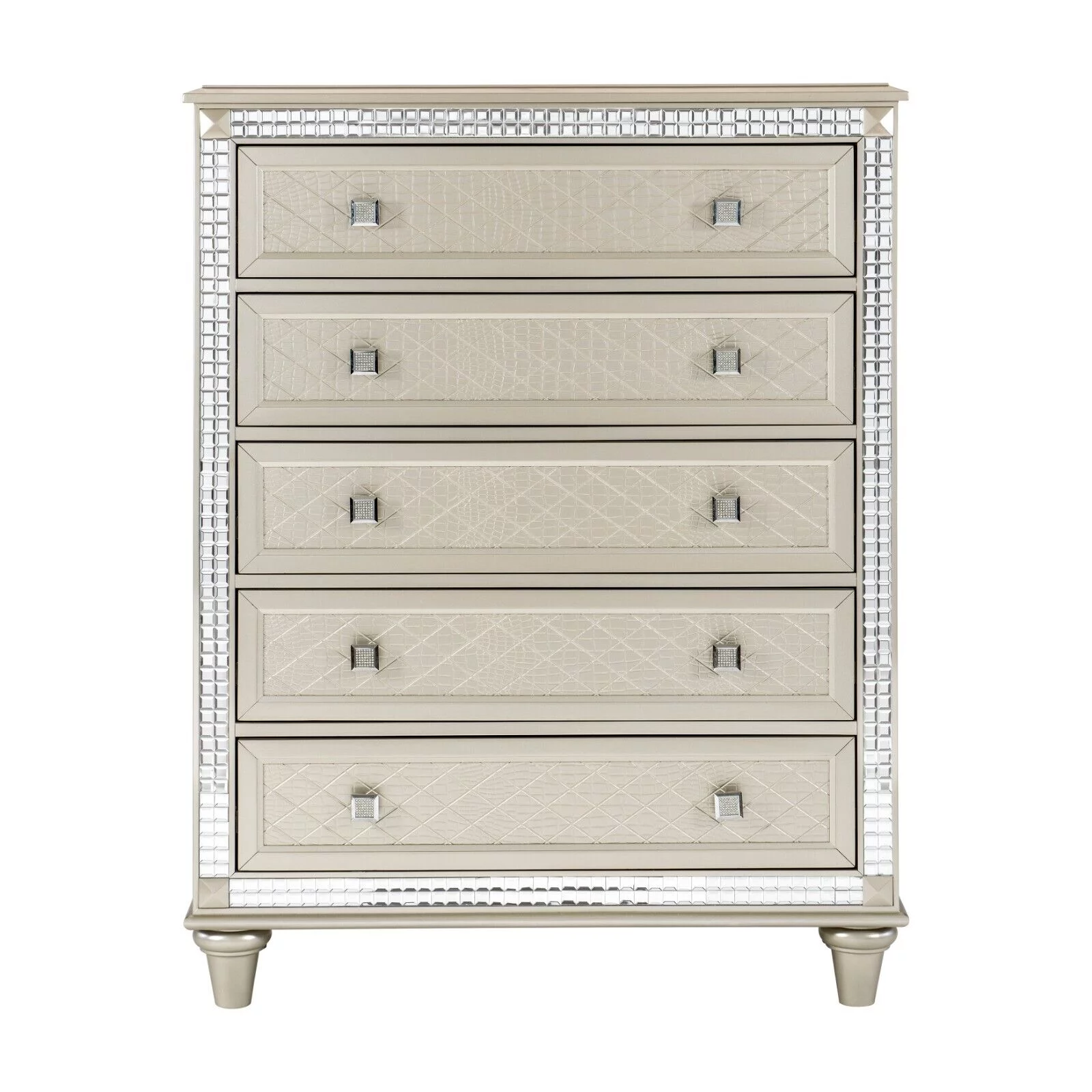 Modern Glam Champagne Finish 5pc Bedroom Set California King Bed Two Nightstands Dresser Mirror Modern Traditional Bedroom