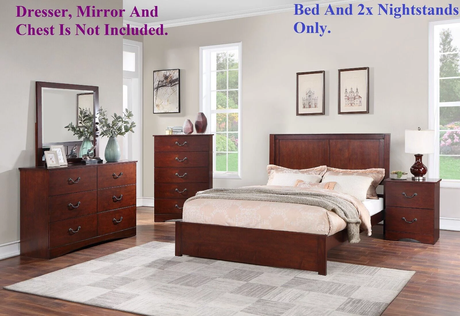 Brown Cherry Finish 5pc Bedroom Set California King Platform Bed Two Nightstands Dresser Mirror Traditional Set Storage Bed