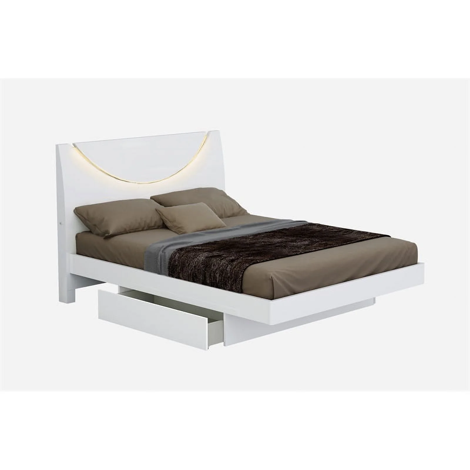 Bedroom 3pc Set Pearl White California King Size Bed w Storage FB 2x Nightstands Furniture LED Mirror Accent Contemporary