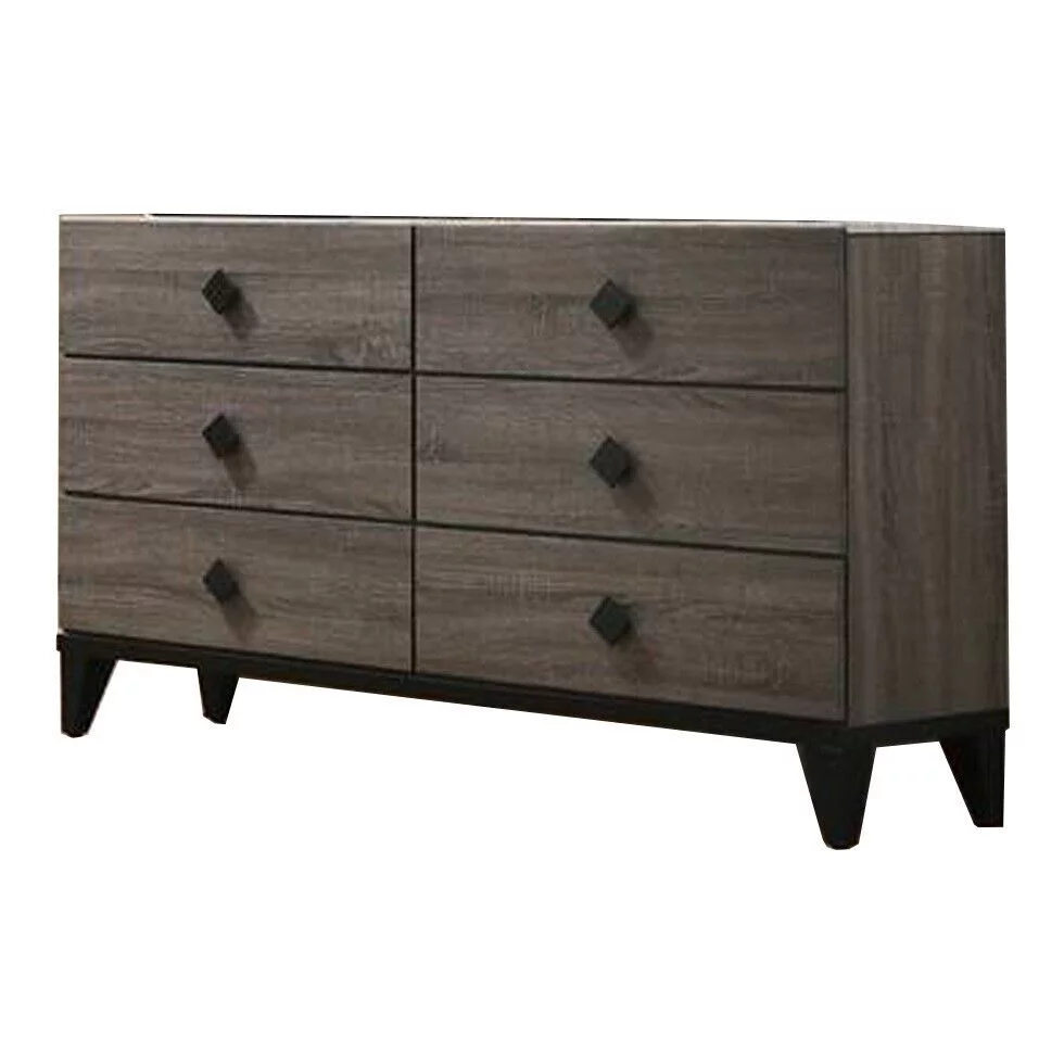 Gray Finish Wooden 6pc Bedroom Set California King Sleigh Bed Nightstands Dresser Mirror Chest Transitional Style Set
