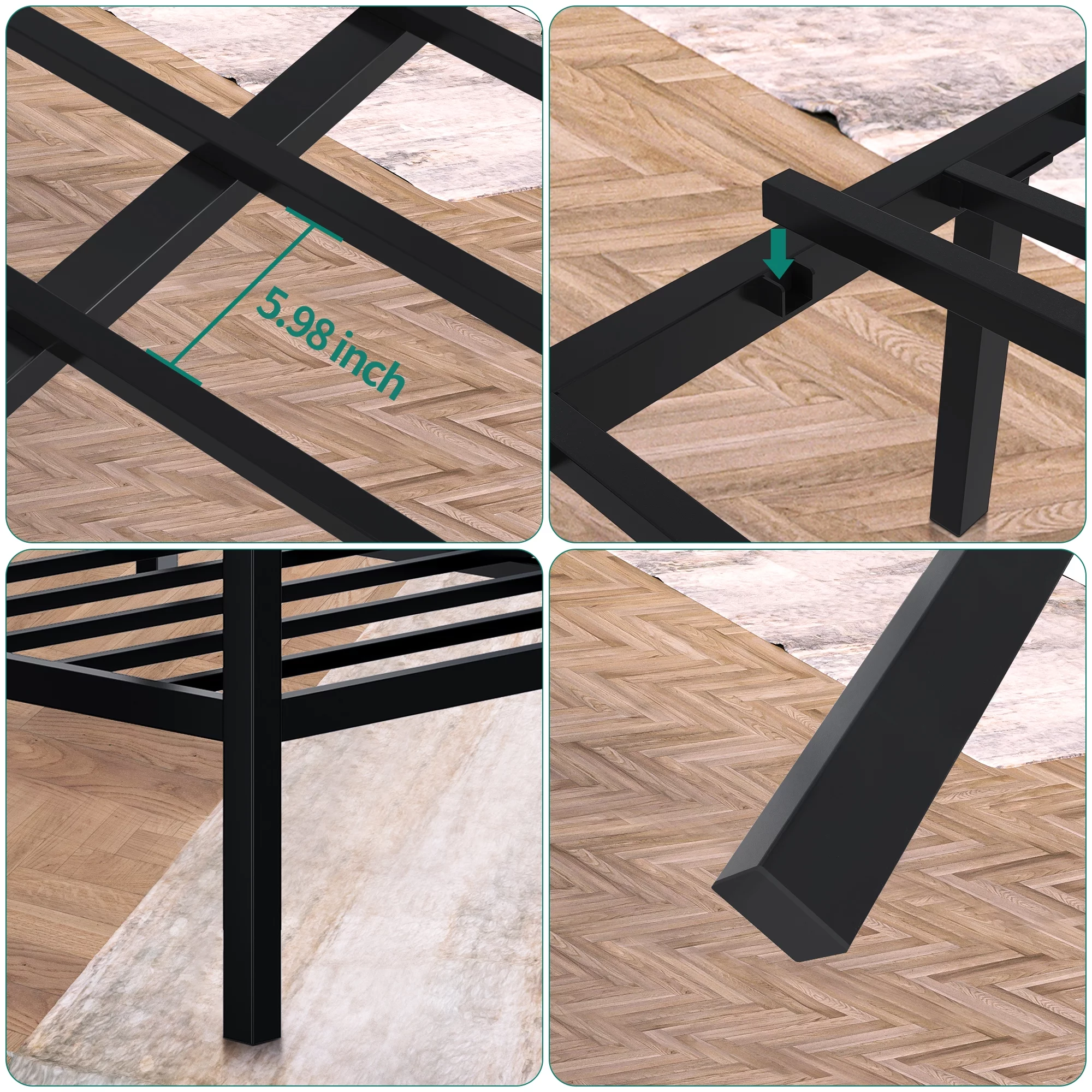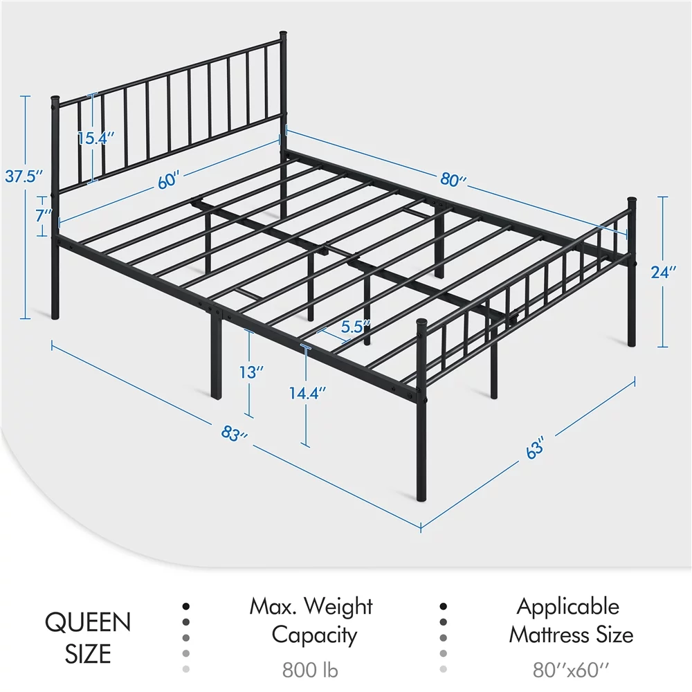 Yaheetech Metal Bed Frame Queen Bed with Spindle Headboard and Footboard,Black