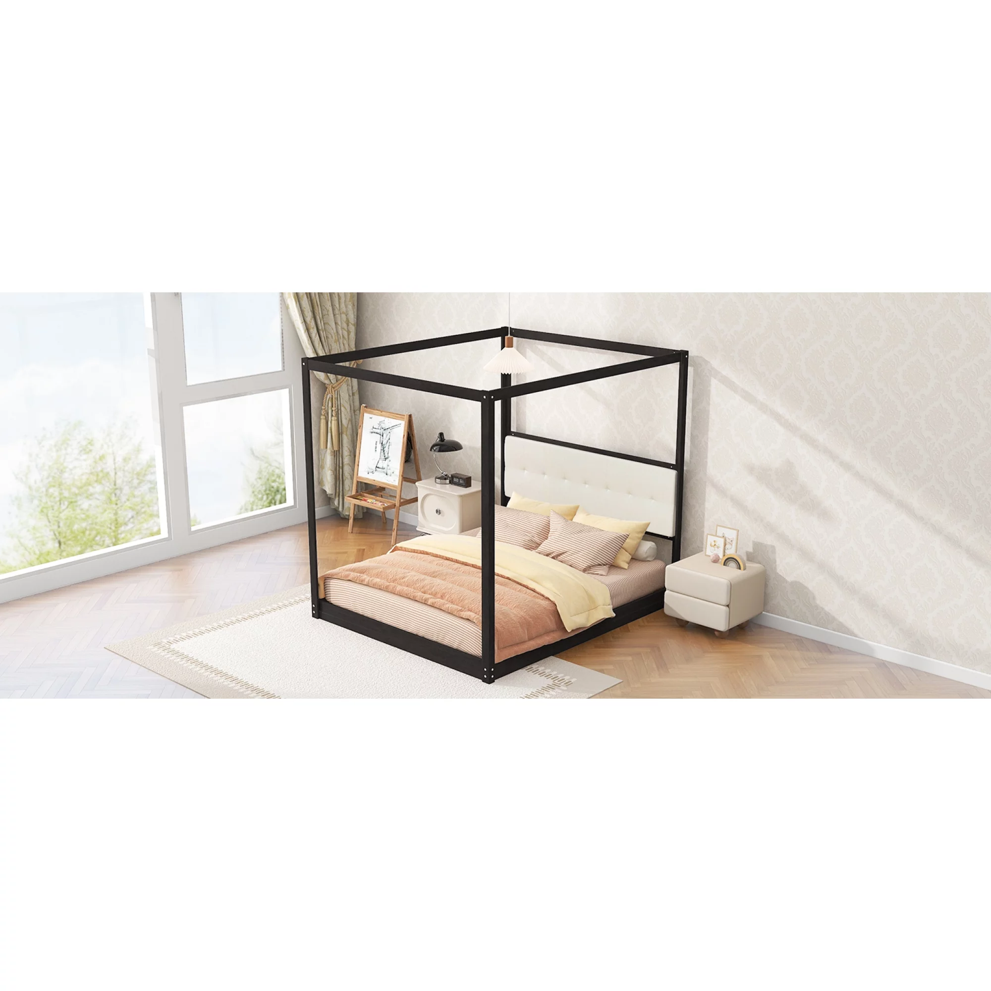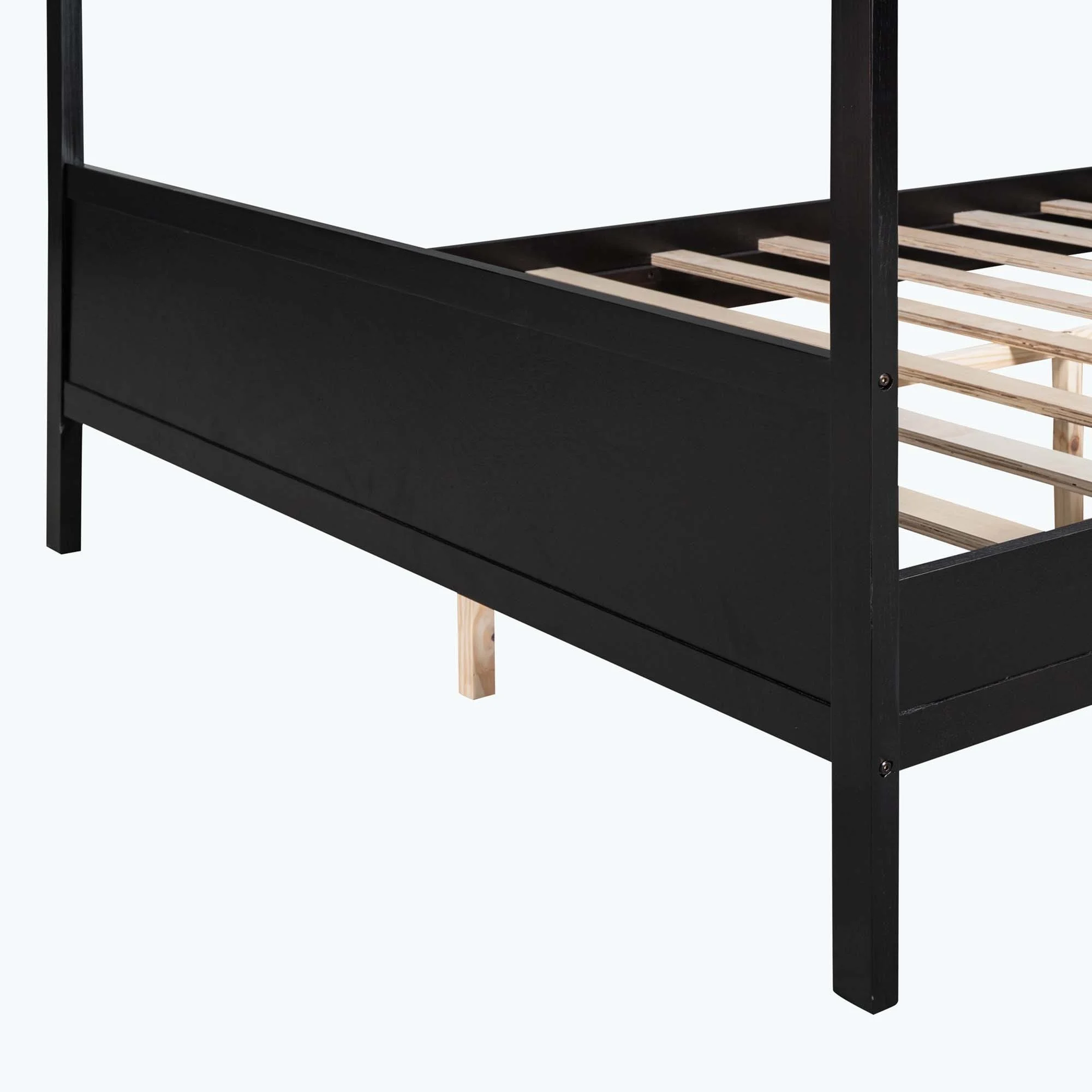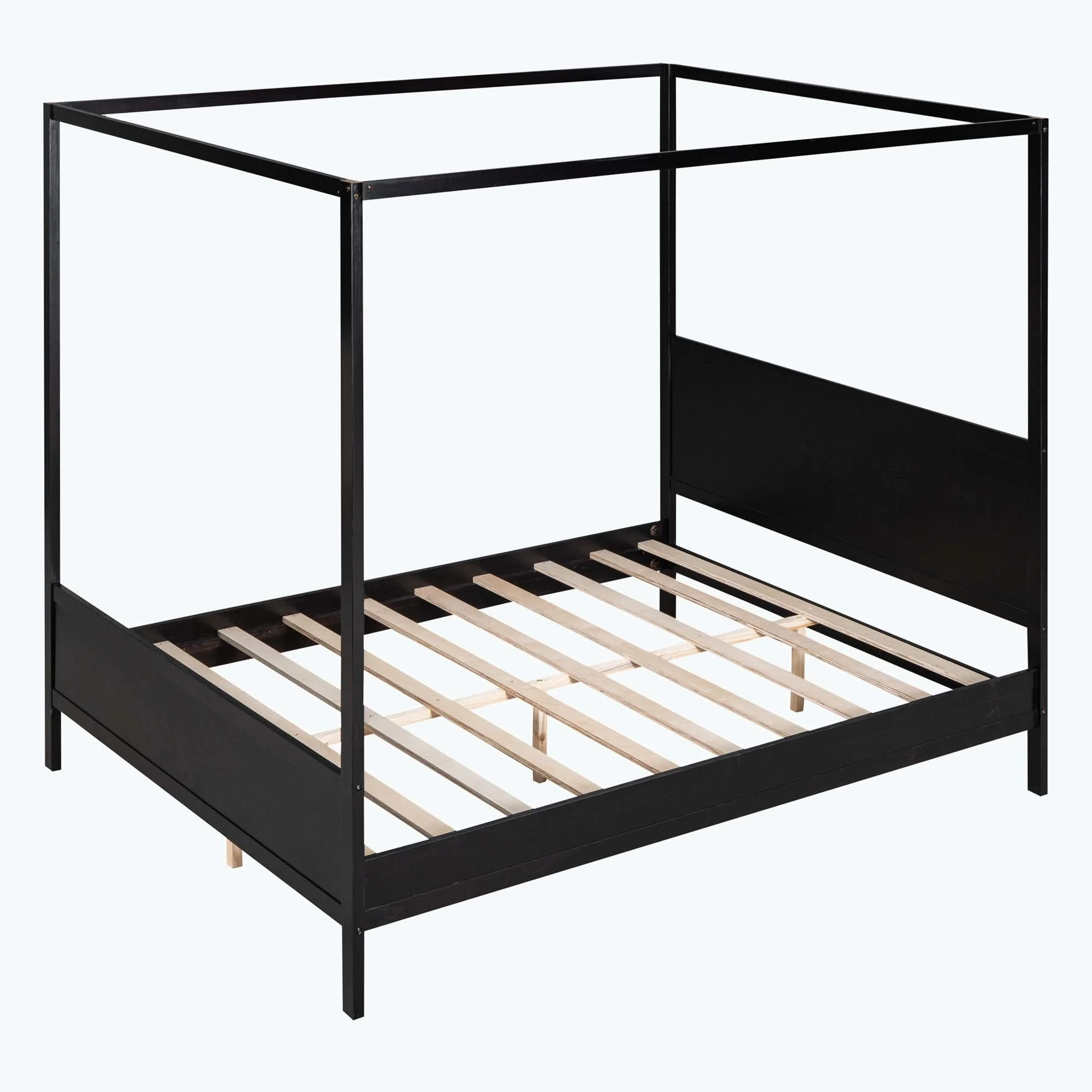 Queen Size Modern Canopy Platform Bed with Headboard and Footboard Black