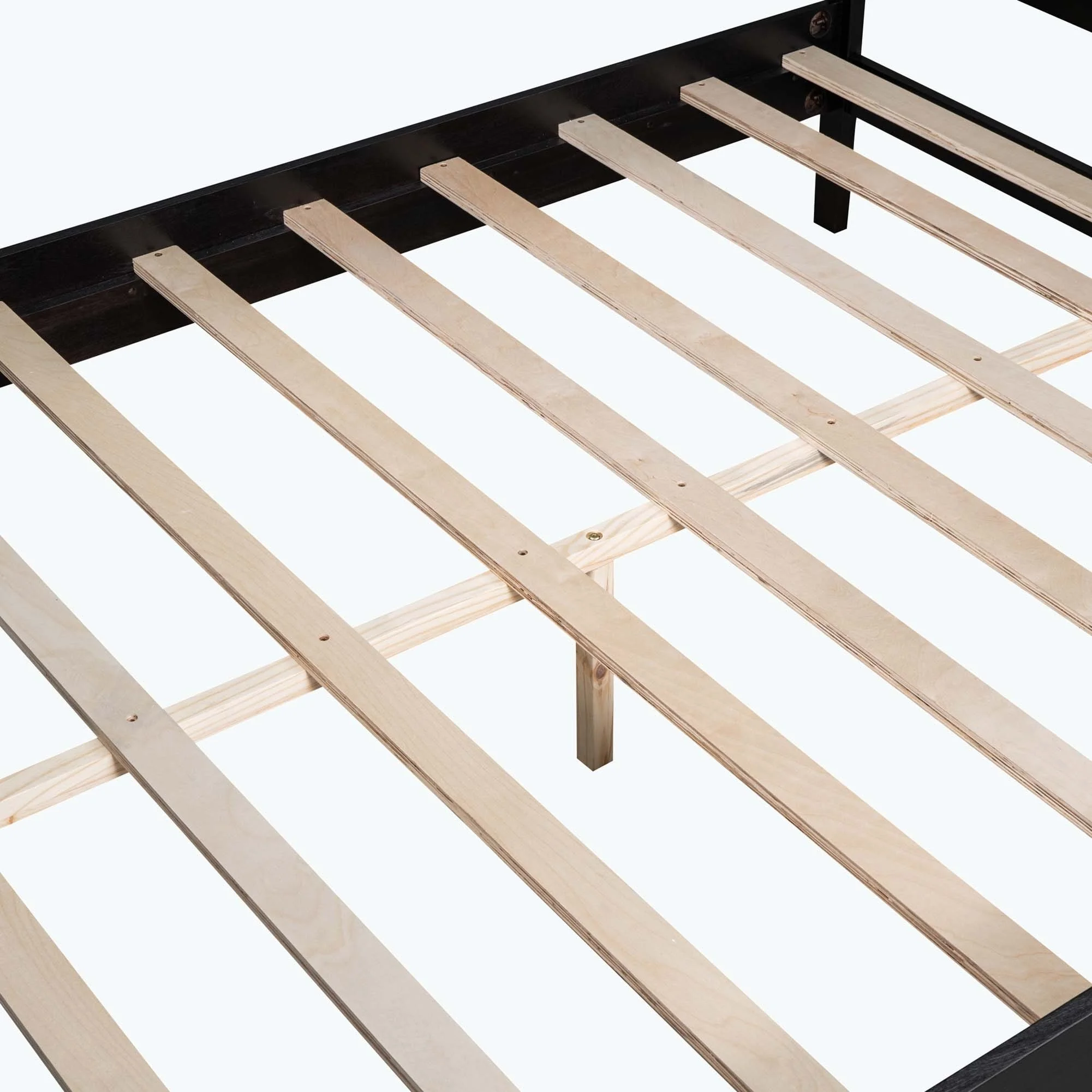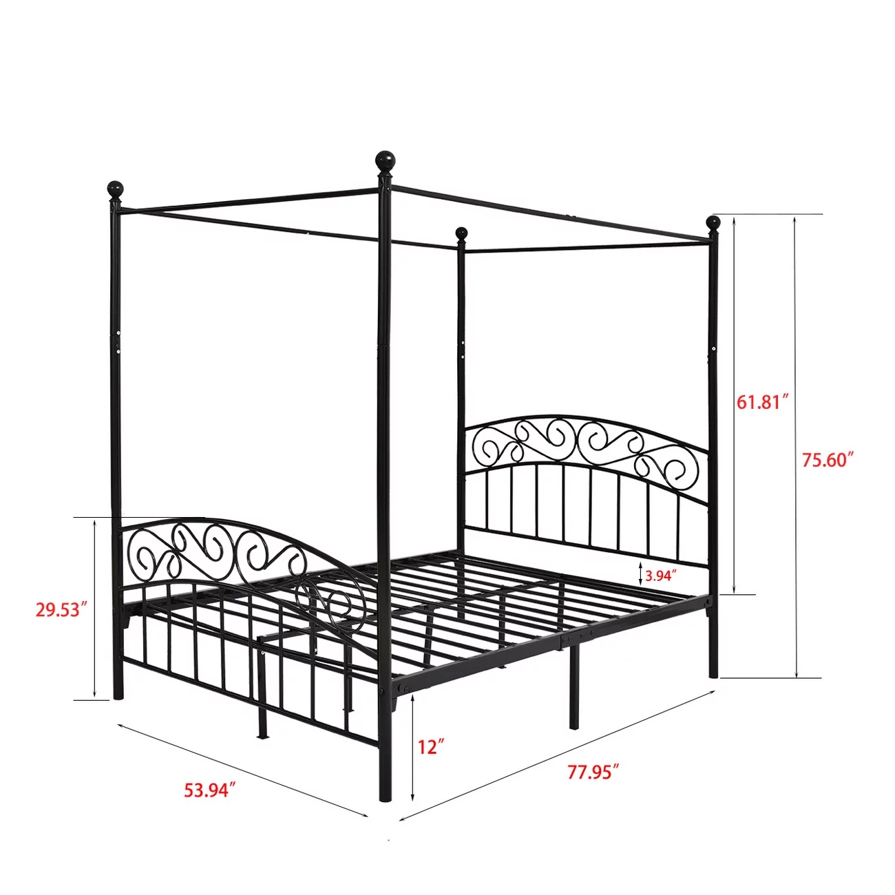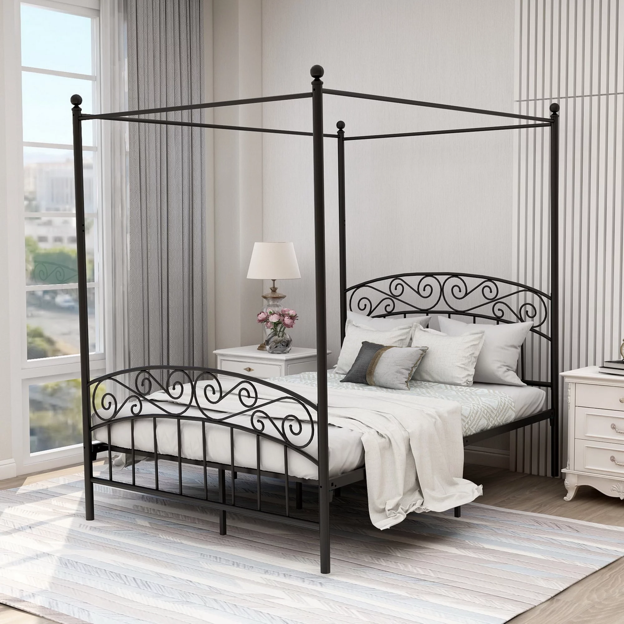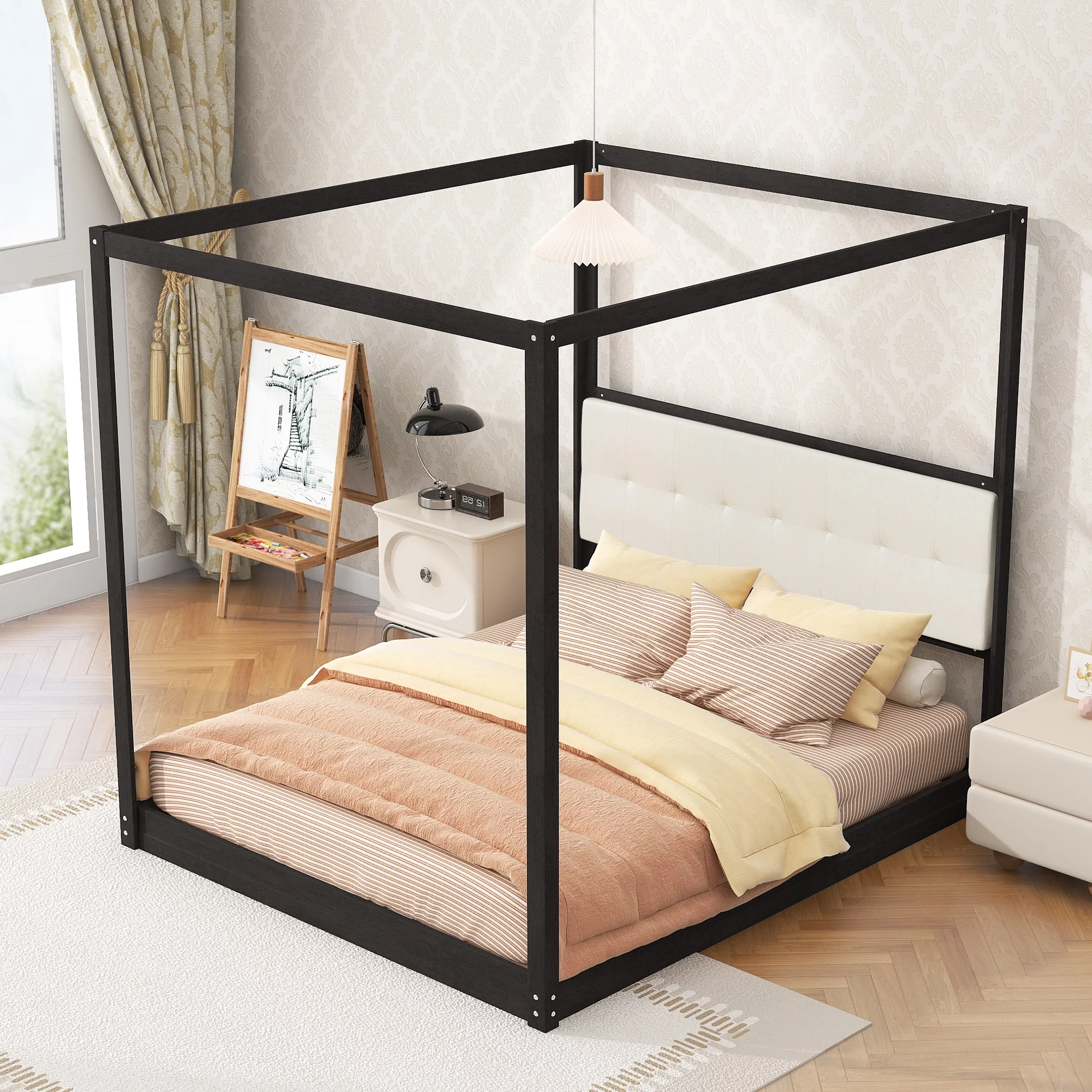 Queen Size Modern Canopy Platform Bed with Headboard and Footboard Black