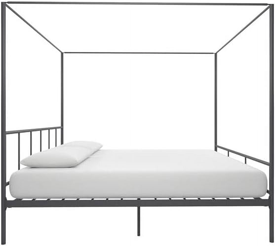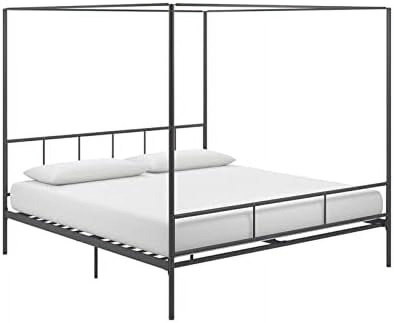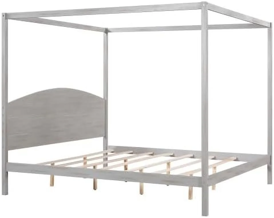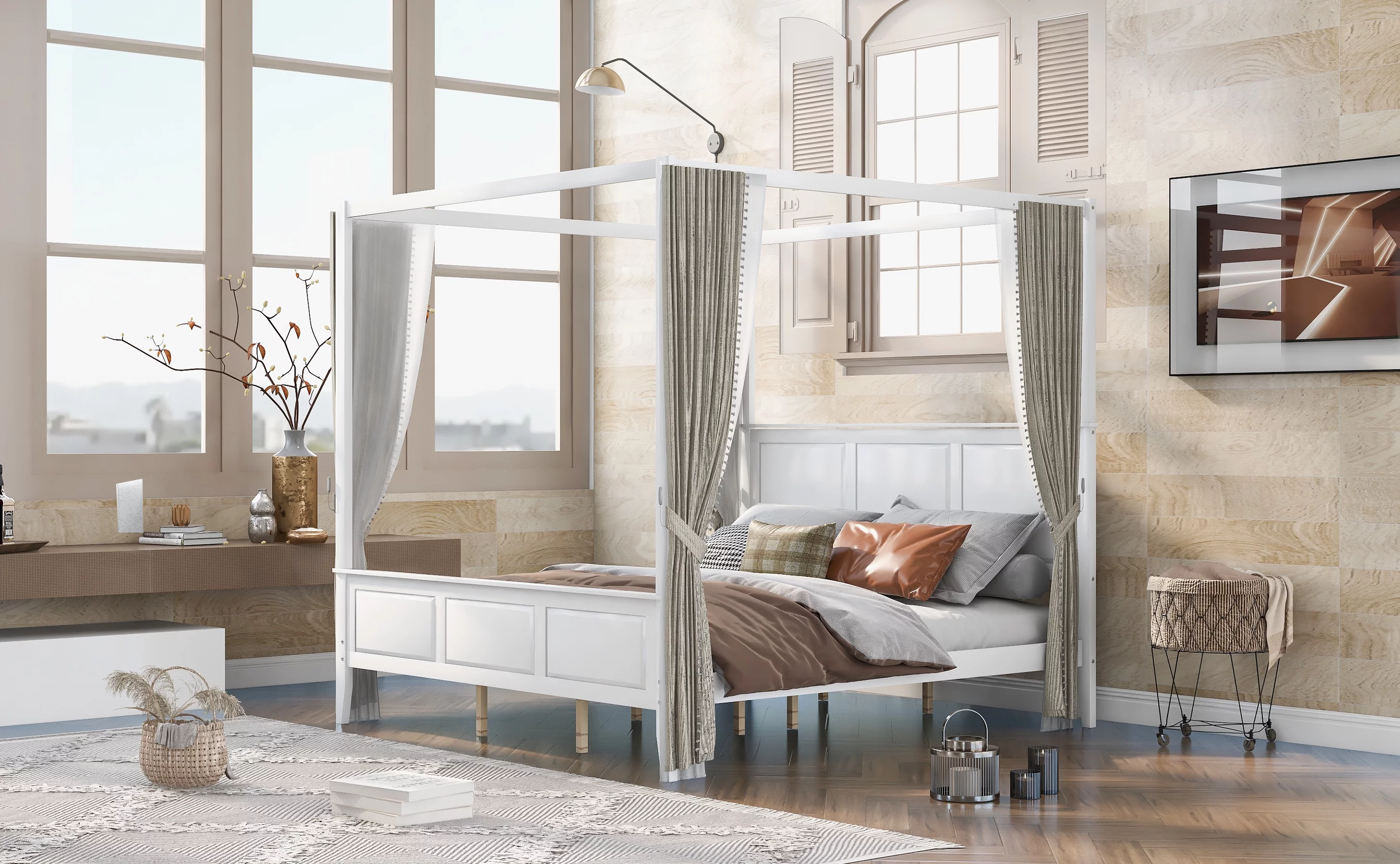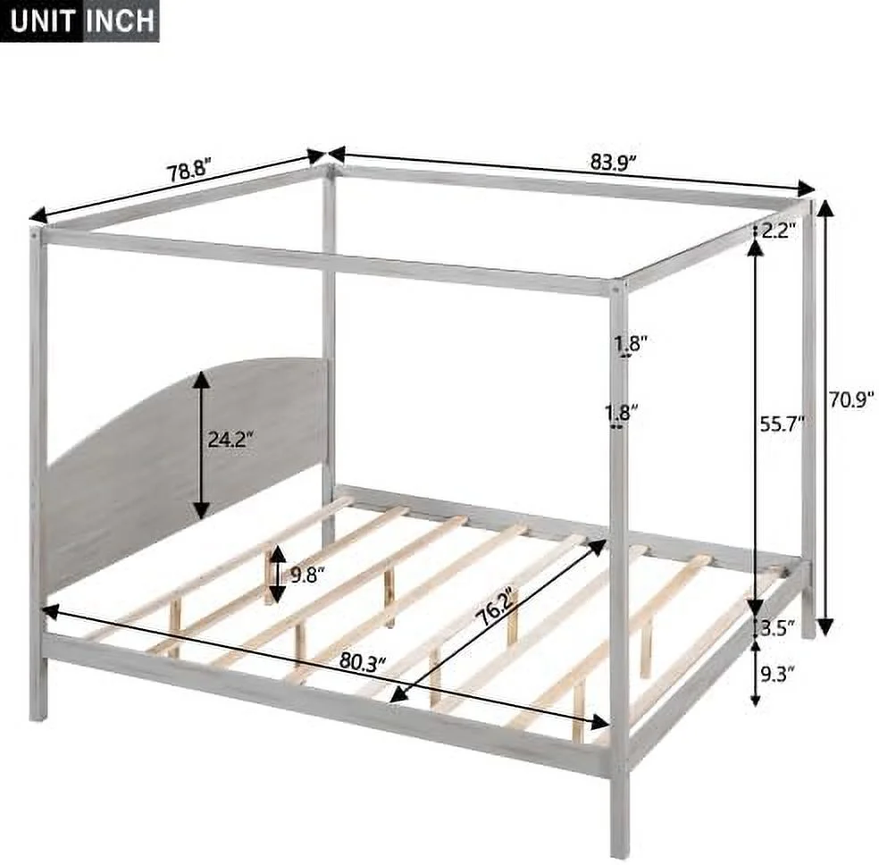 King Size Canopy Platform Bed with Four Slat Support Leg for Adults, White