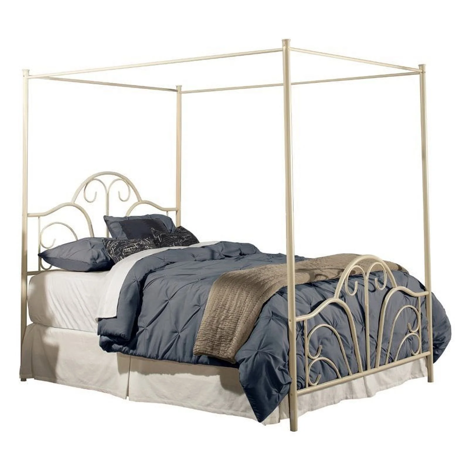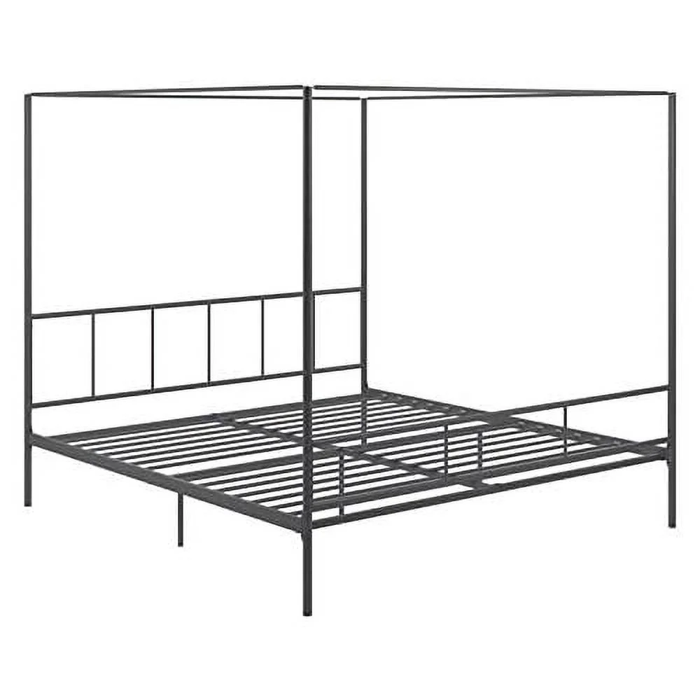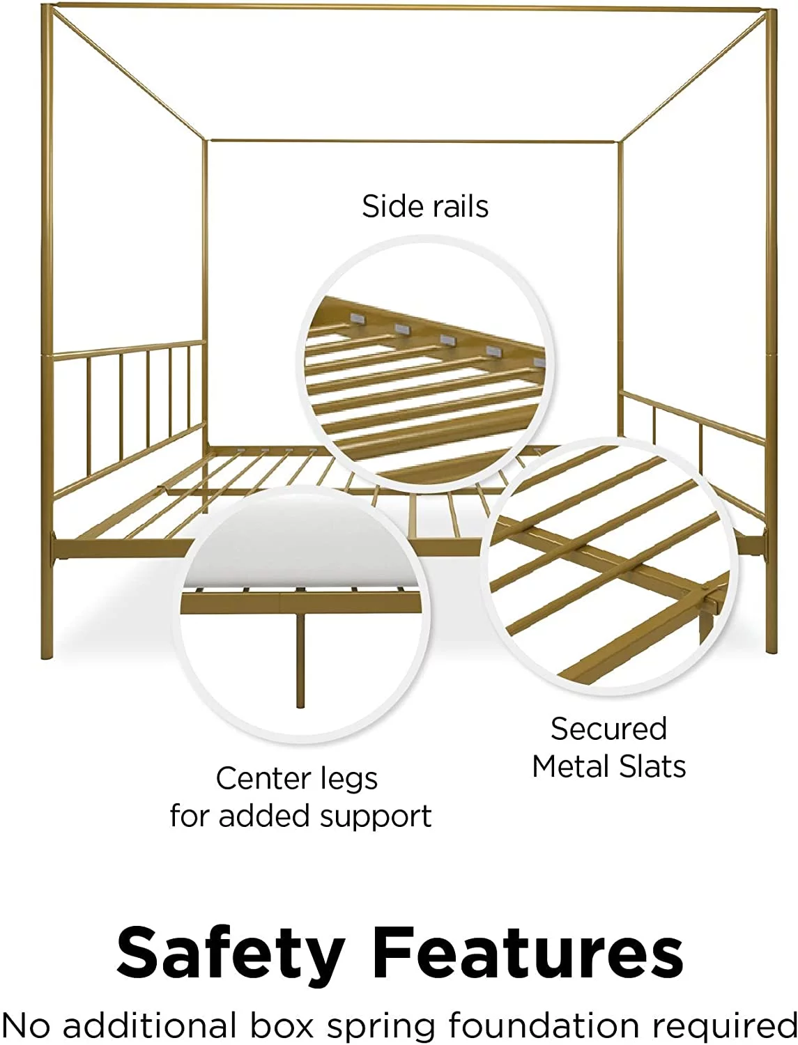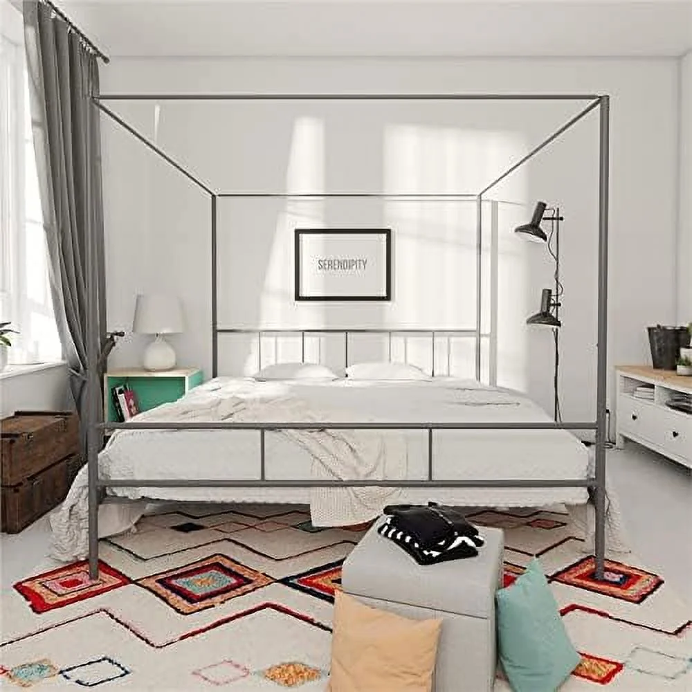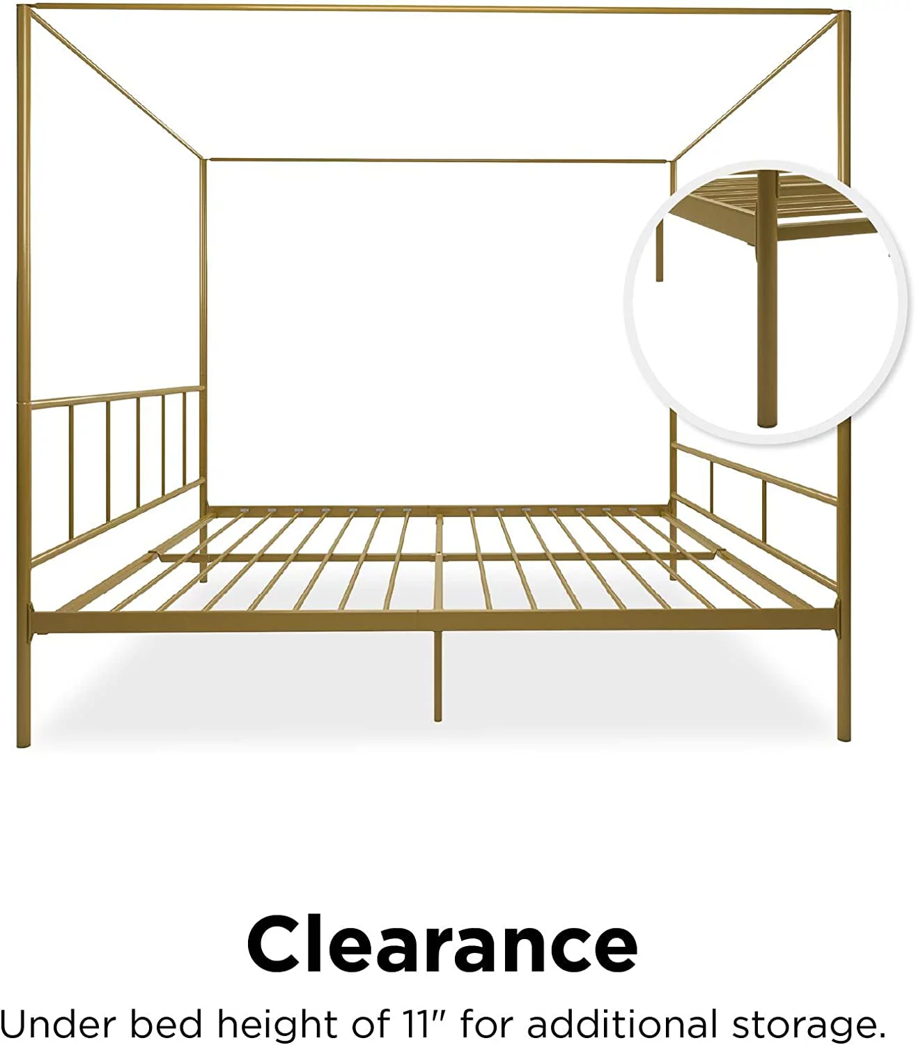 King Size Canopy Platform Bed with Four Slat Support Leg for Adults, White