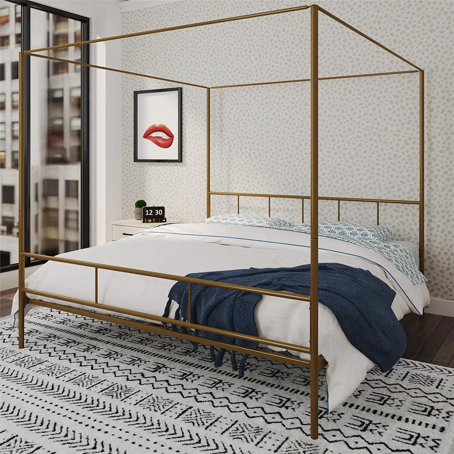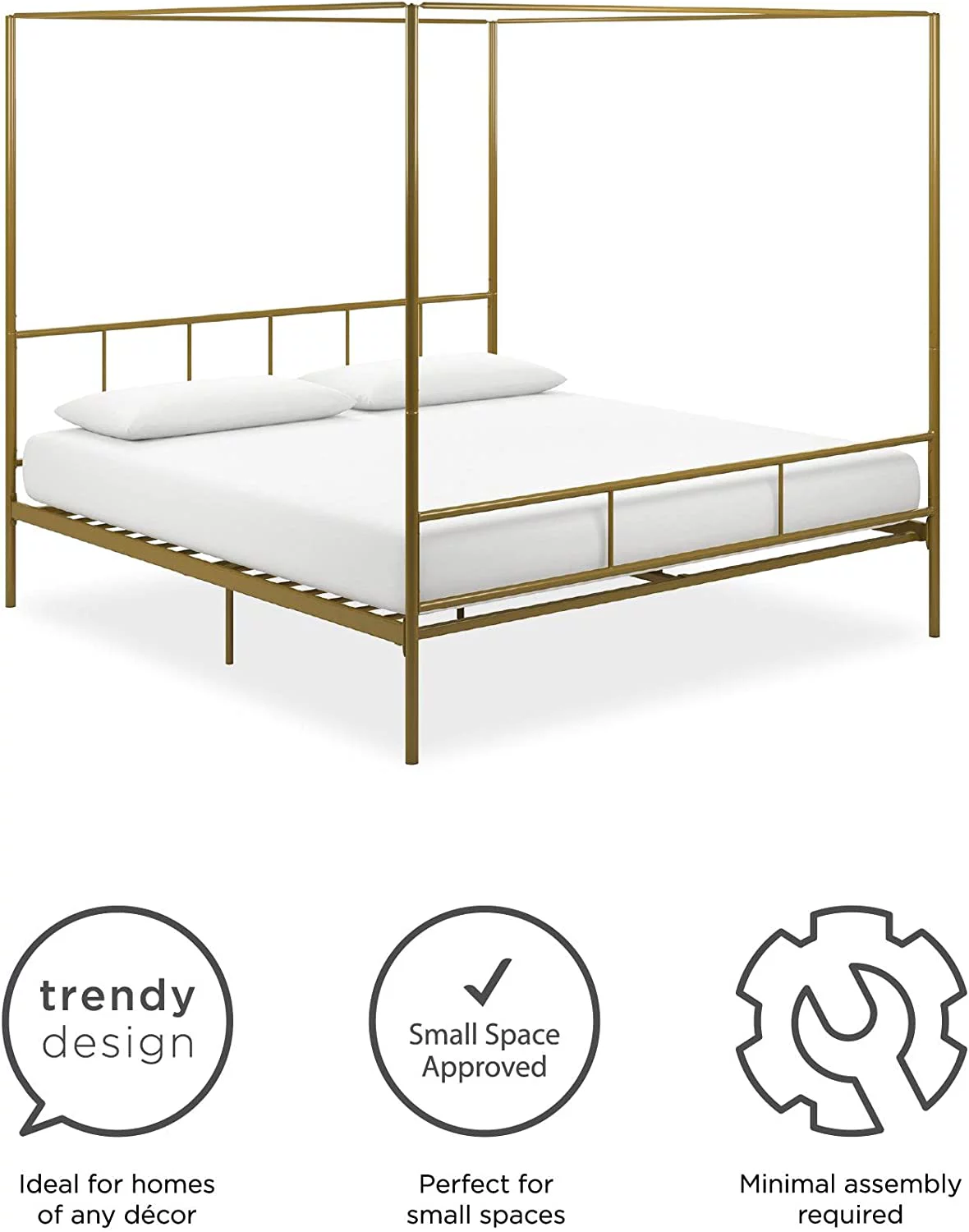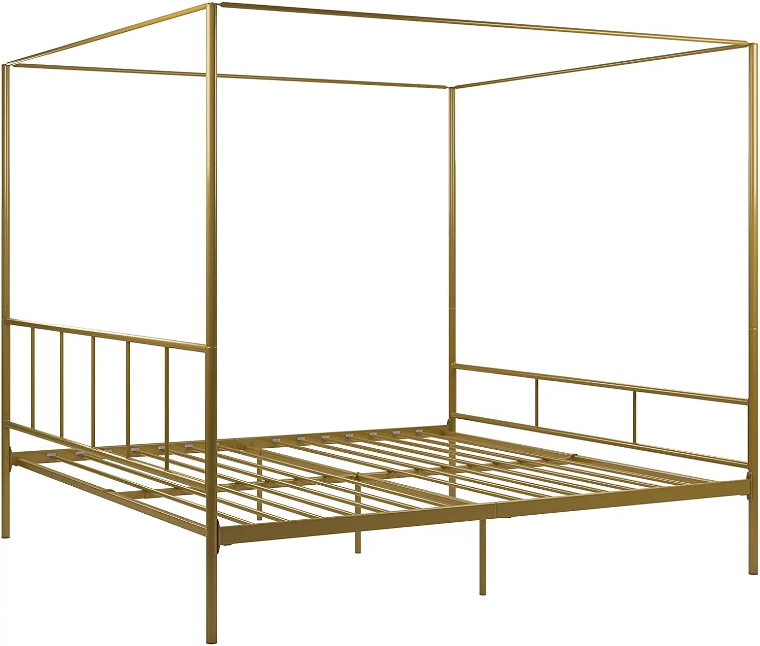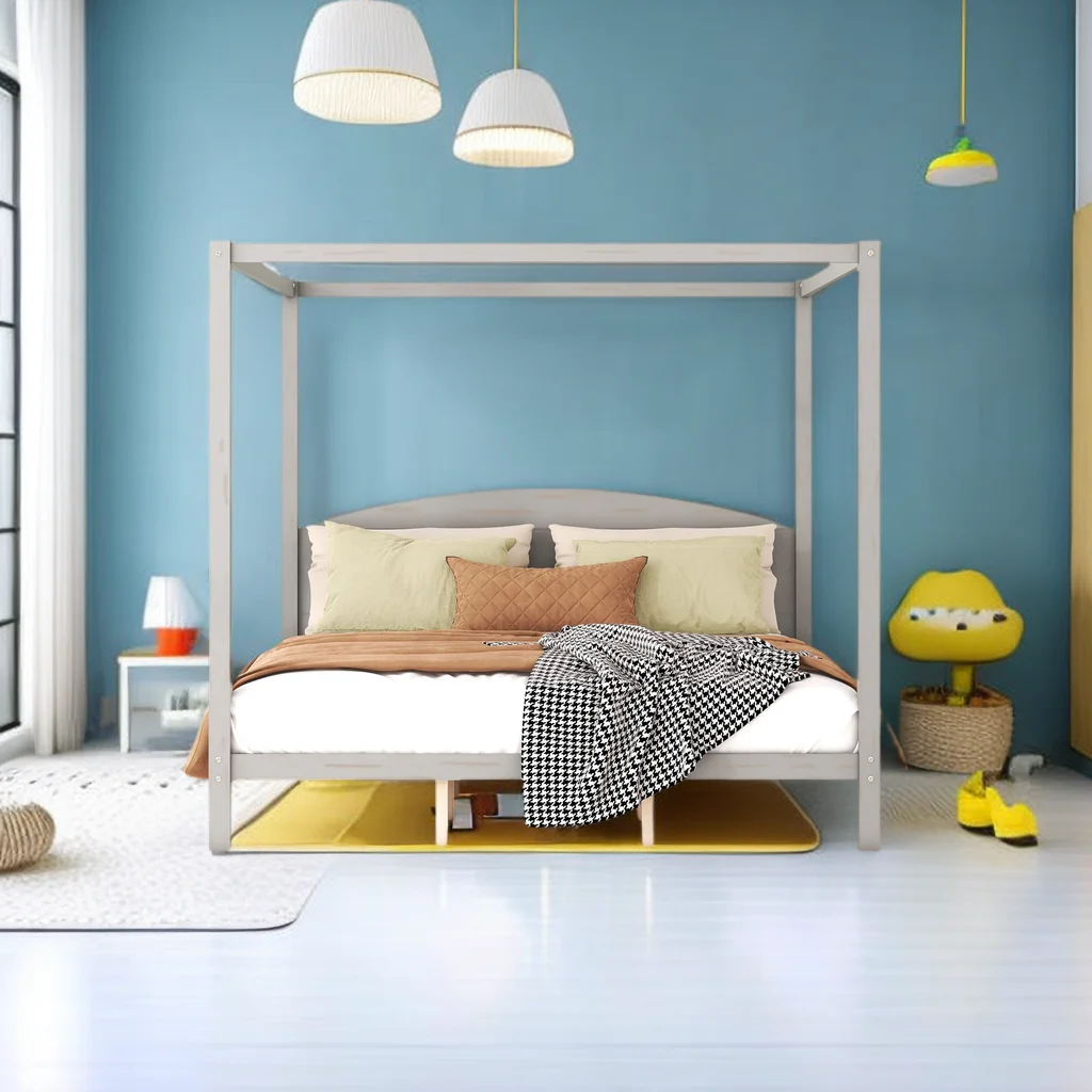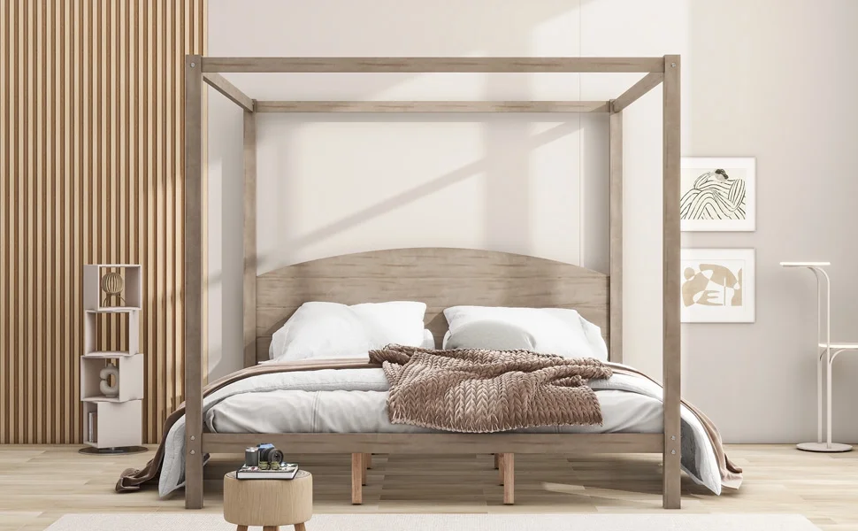 Walker Edison Minimalist Solid Wood King-Size Canopy Bedframe, Natural Pine