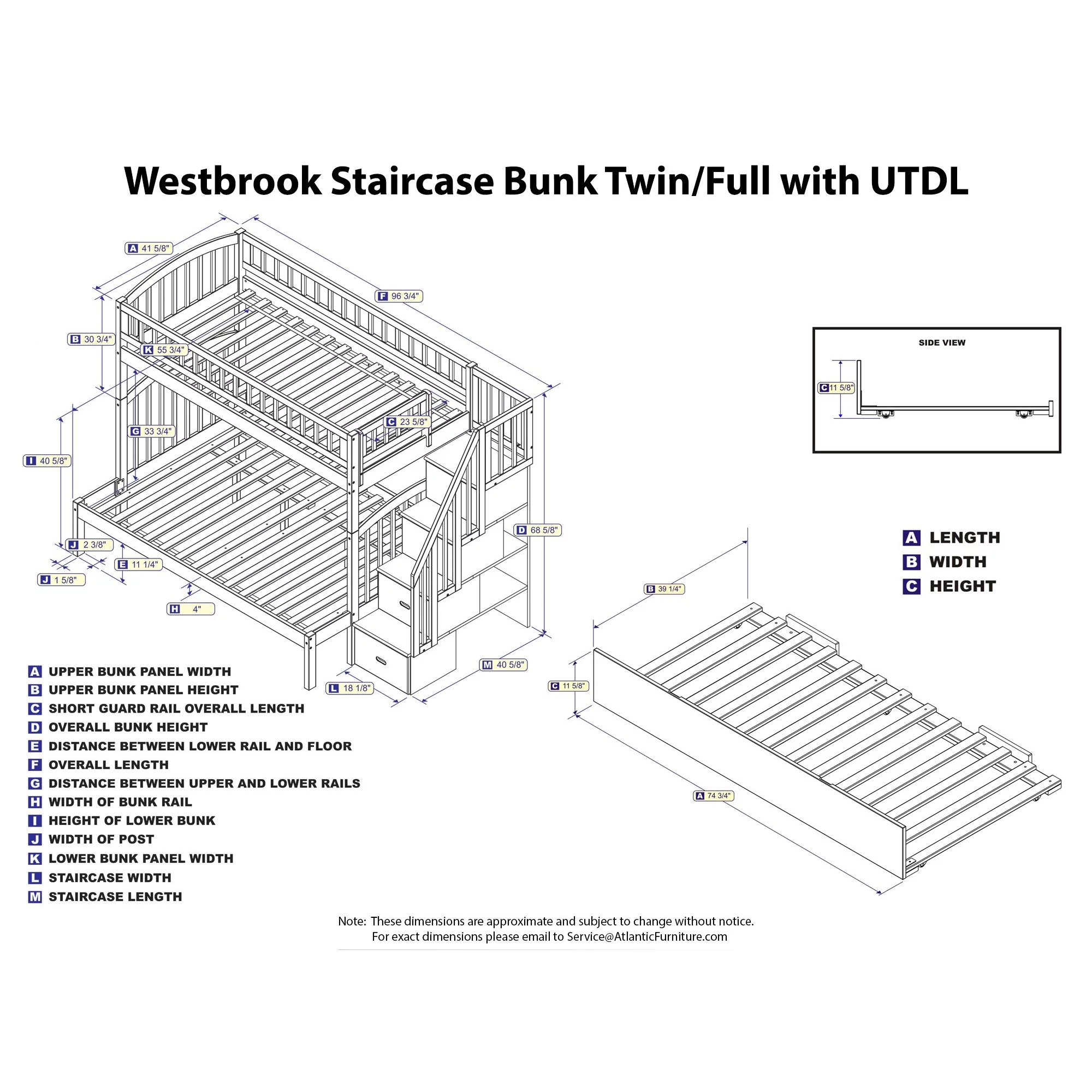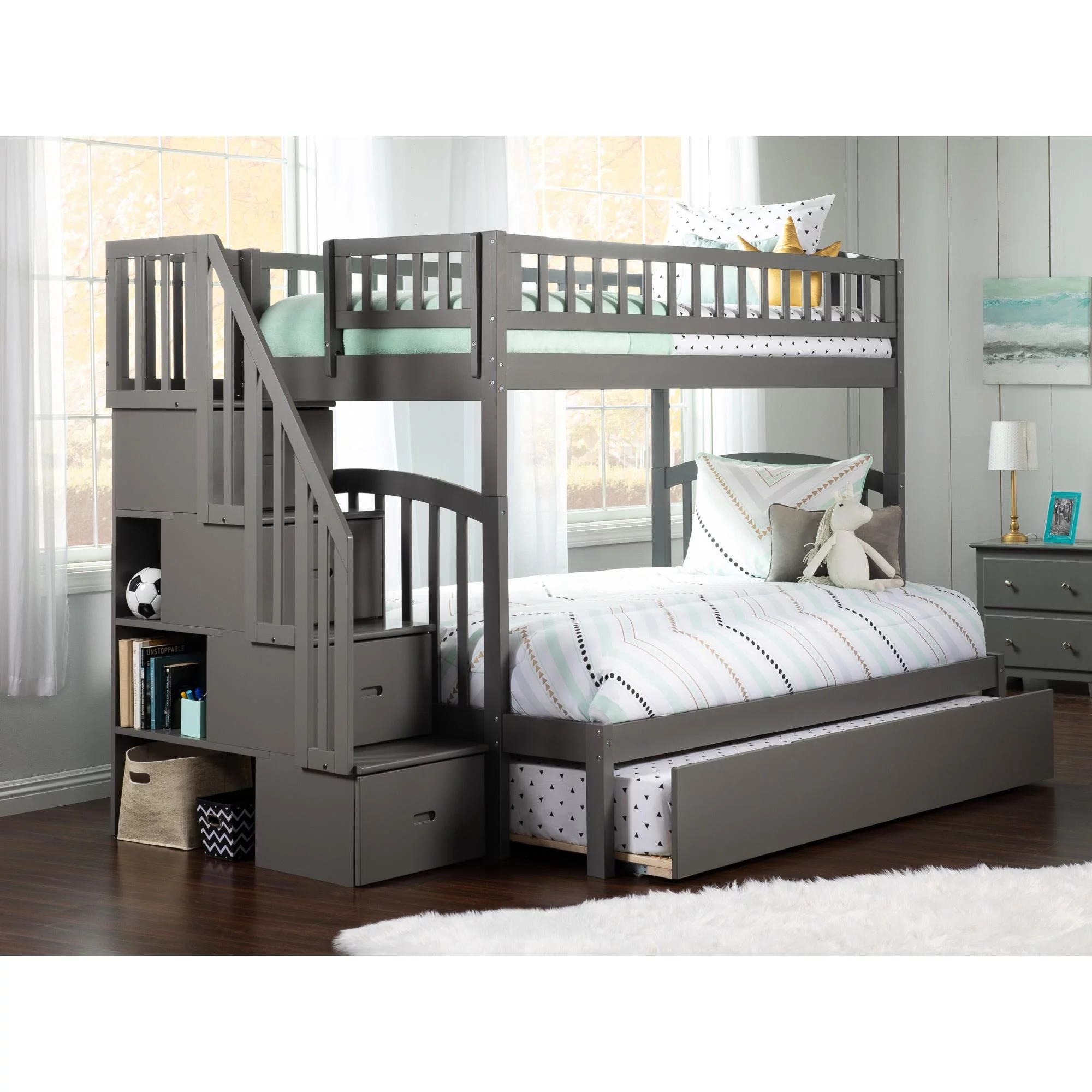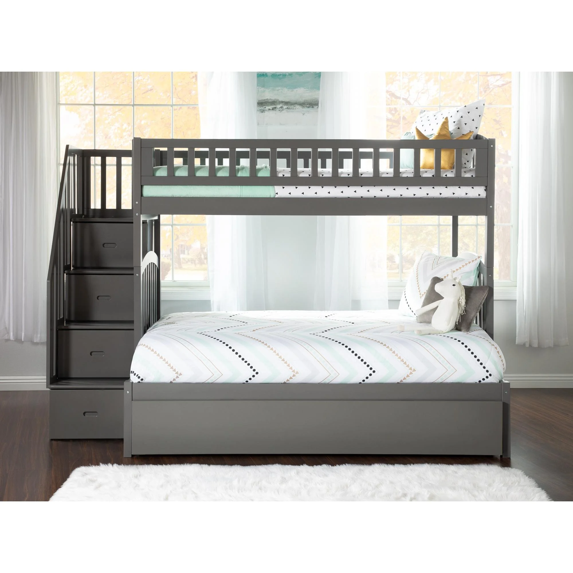 Westbrook Staircase Bunk Twin over Full with Twin Size Urban Trundle Bed in Grey