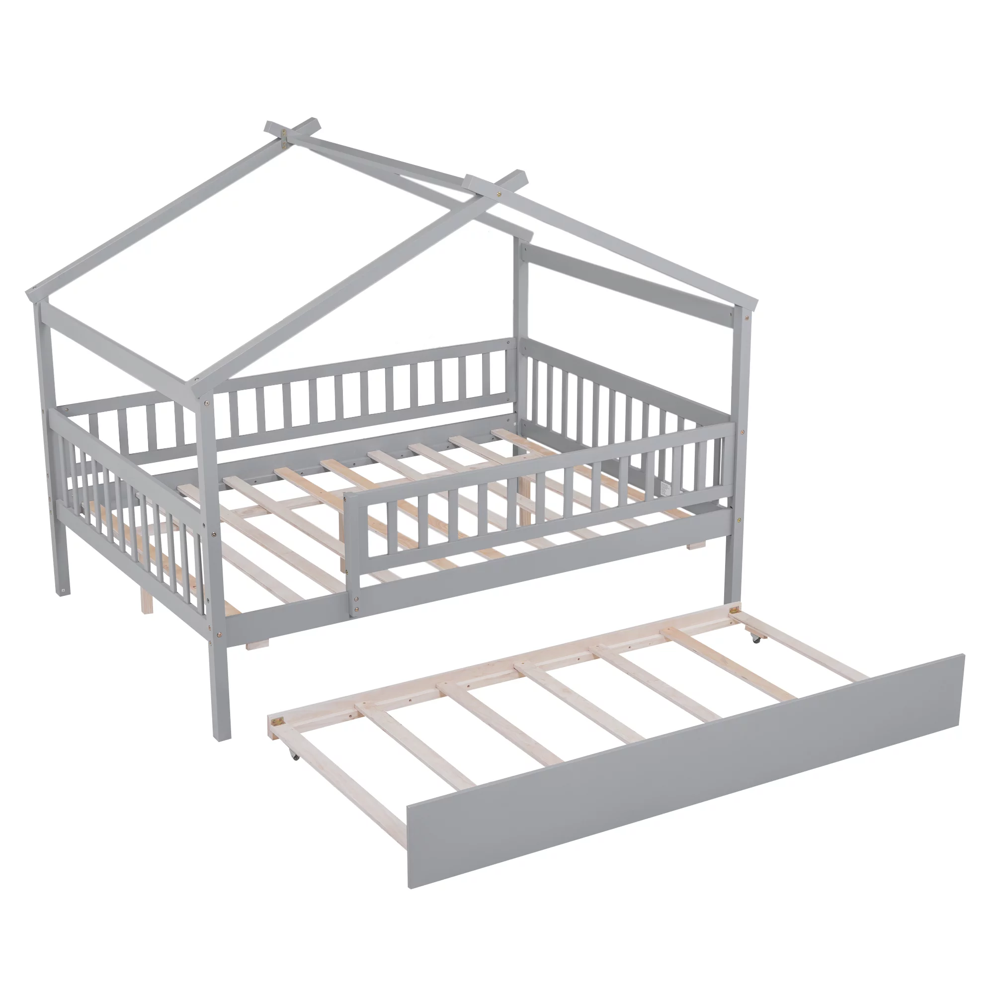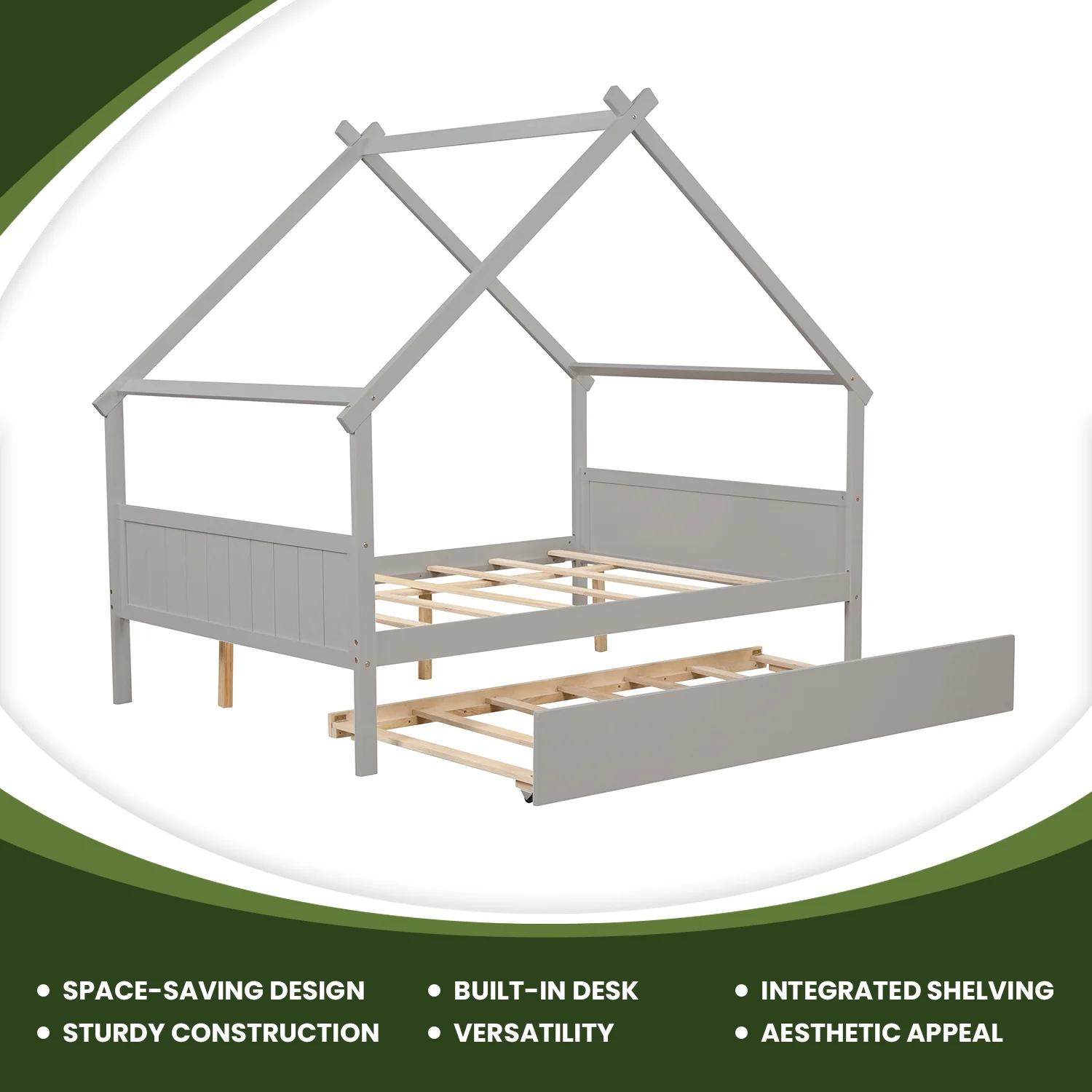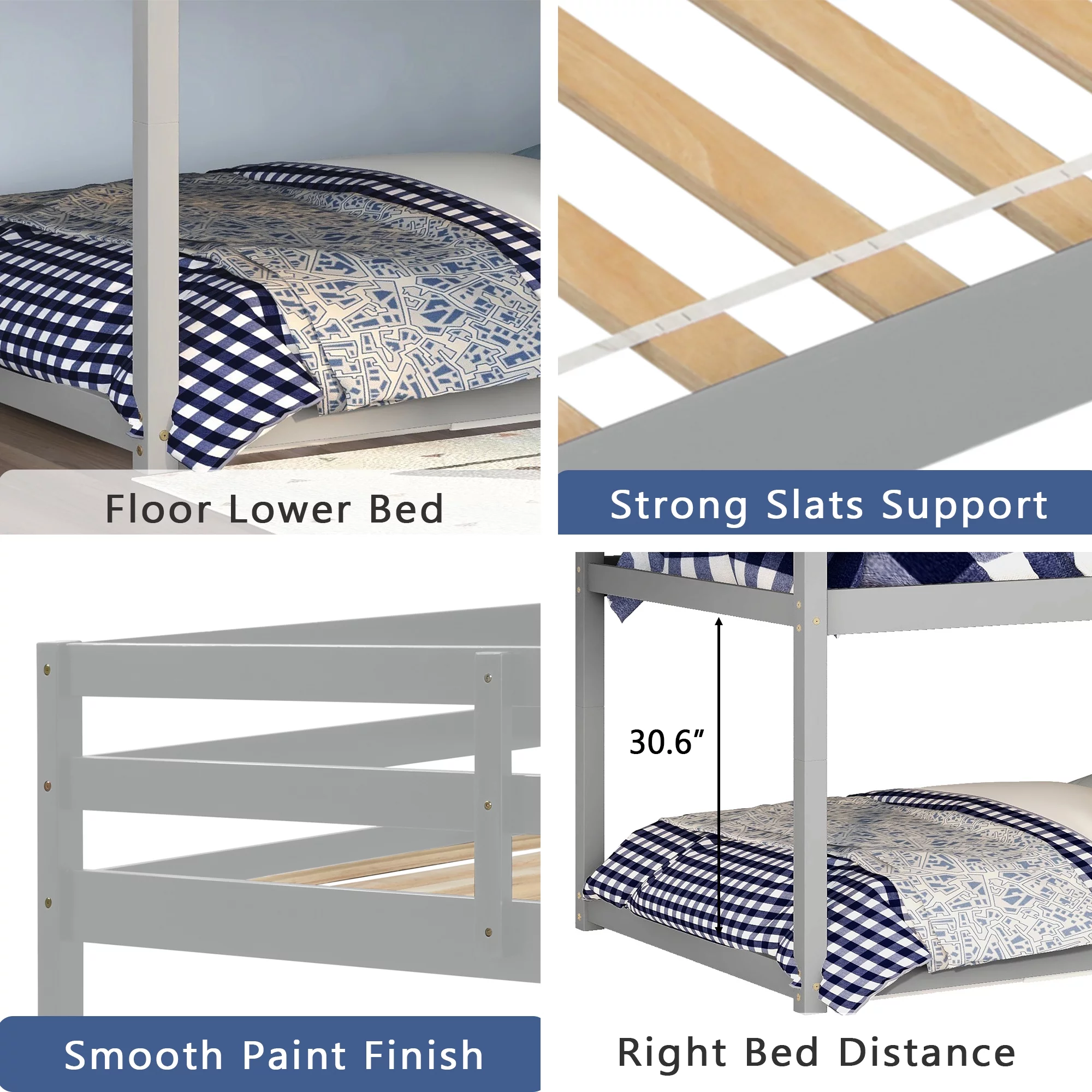 Westbrook Staircase Bunk Twin over Full with Twin Size Urban Trundle Bed in Grey